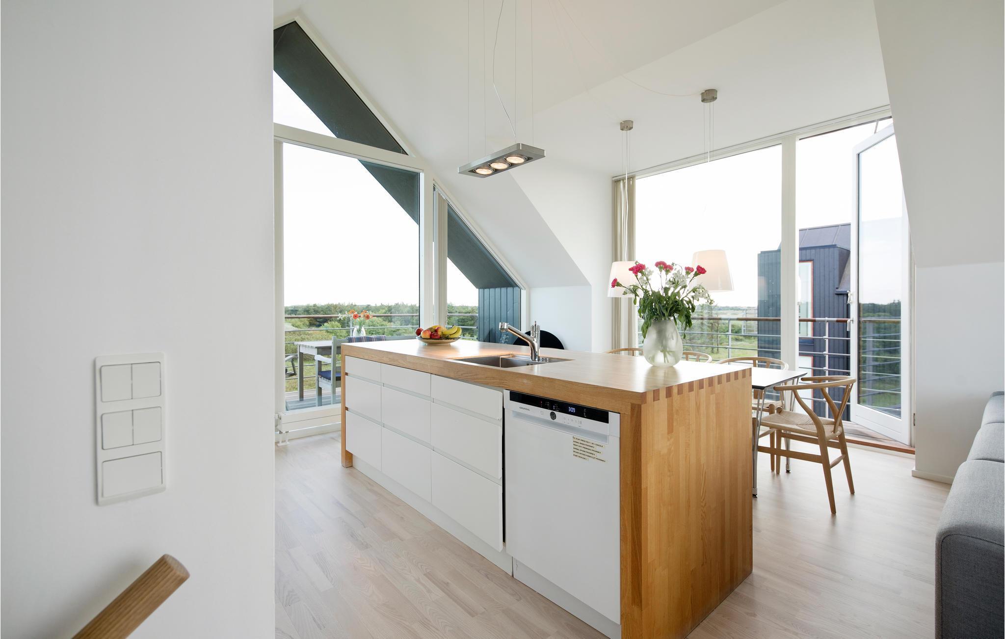 Dette lækre rækkehus ligger ved Skagen Nordstrand midt i den skønne natur. Rækkehuset er opført i tre plan og fra øveste etage, der har ikke mindre end tre balkoner, har I den skønneste udsigt over Vesterhavet og de smukke klitområder. Ferieboligen er opført i gedigne materialer og indrettet med pæne møbler i skandinavisk design og fremstår særdeles indbydende. Til huset hører også en Weber grill samt en Nespressomaskine. Skagen er et besøg værd på alle årstider og byder på et aktivt havnemiljø, spændende museer og ikke mindst de smukke gamle bydele og Grenen, hvor de to have Skagerrak og Kattegat mødes. Gå en tur op i Skagen Fyr, hvor I har en smuk udsigt over hele området. Husets internet består af 200MB og Unifi WIFI System.