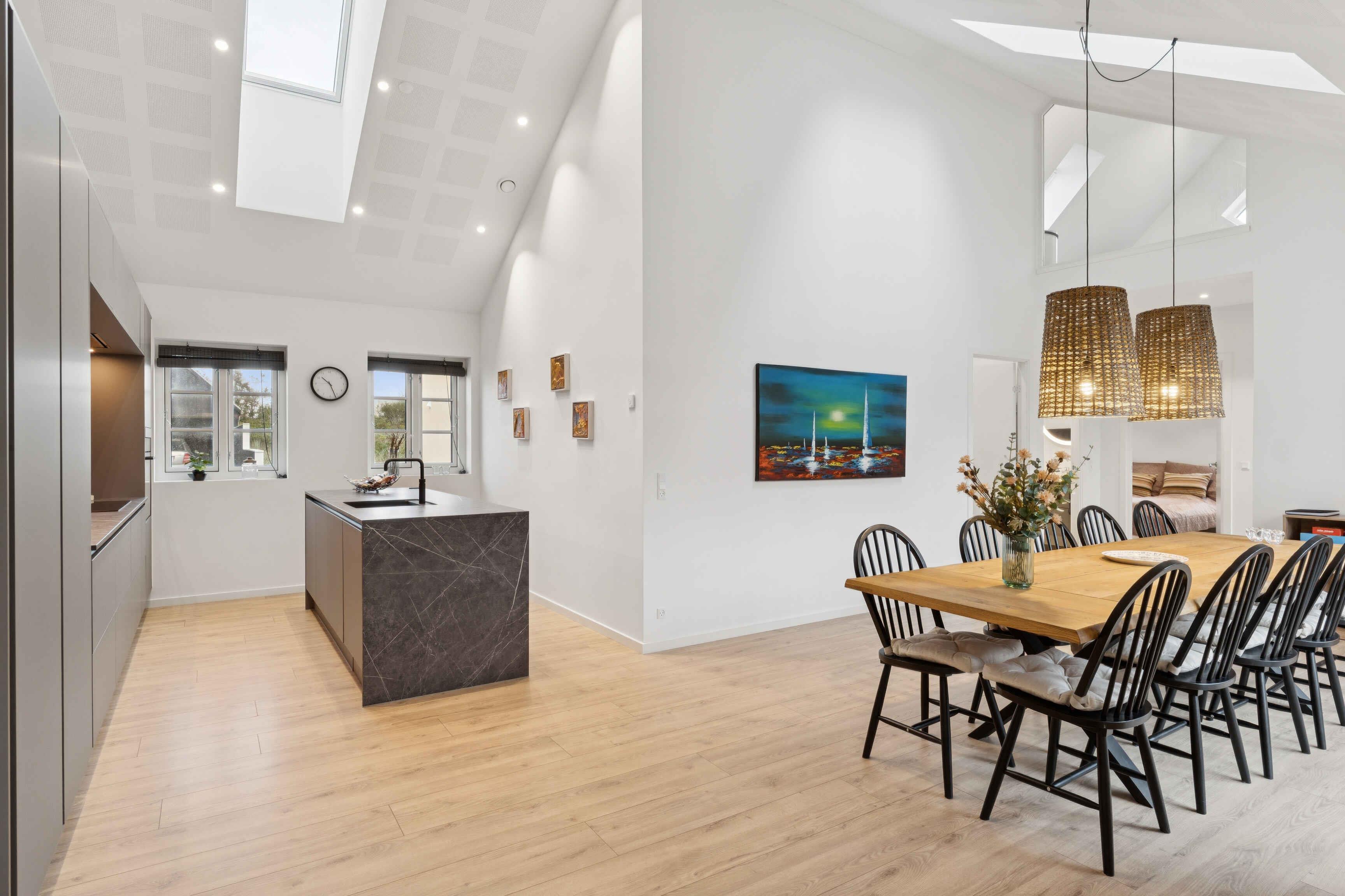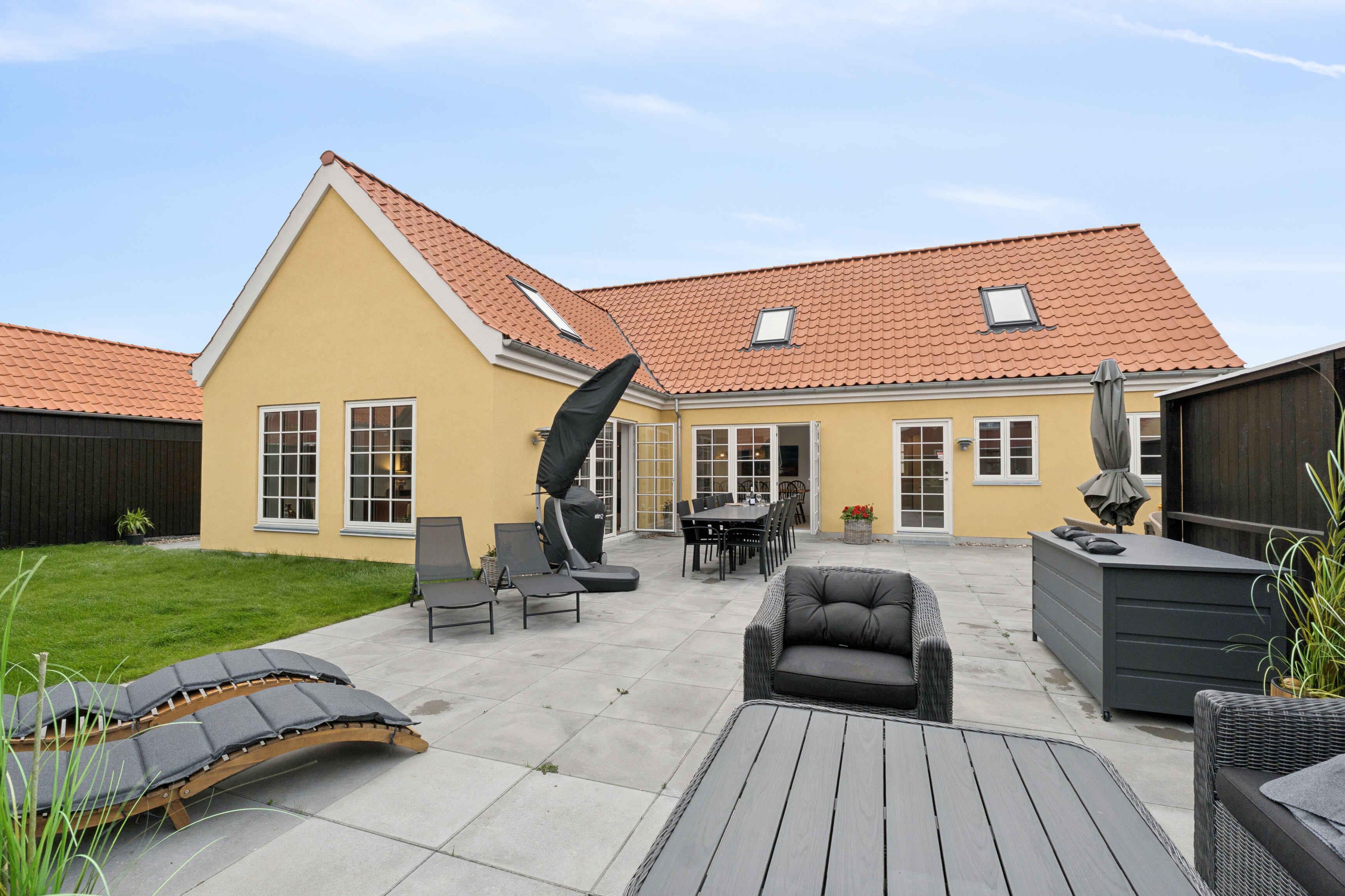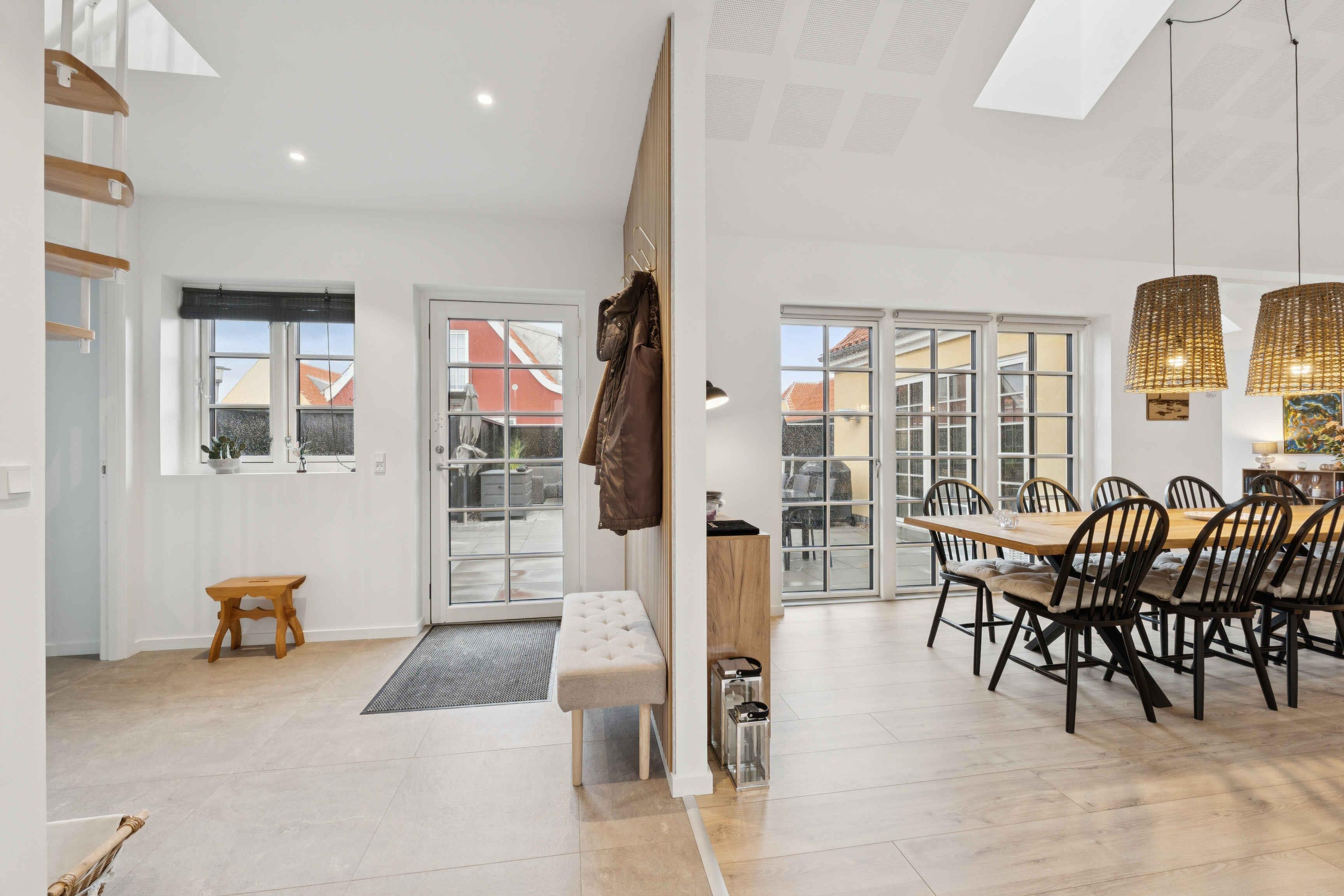 Stilfuldt og lyst sommerhus i centrum af Skagen med moderne køkken, stor terrasse, højt til loftet og kort afstand til strand, museum og Grenen. Perfekt til familieferie.