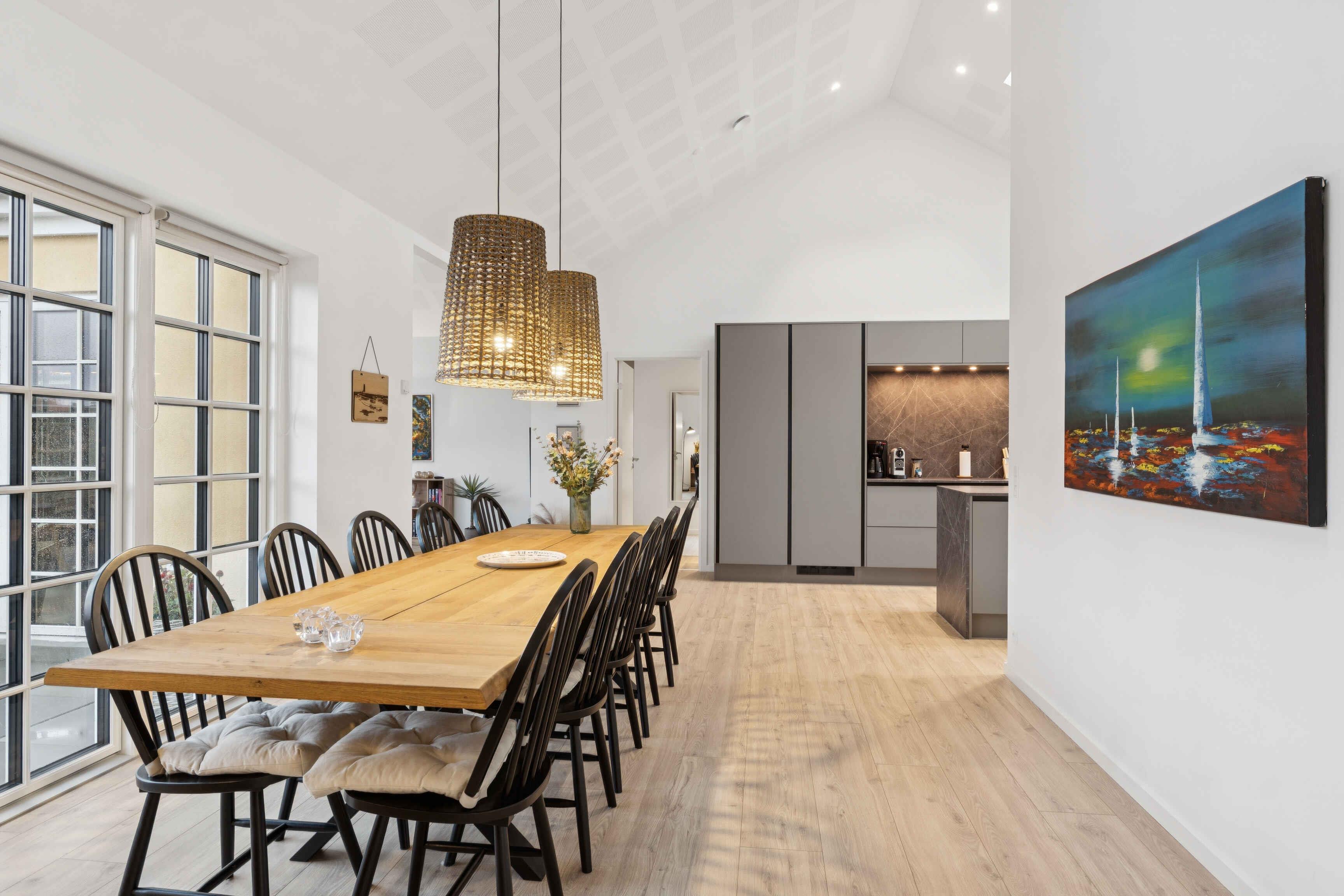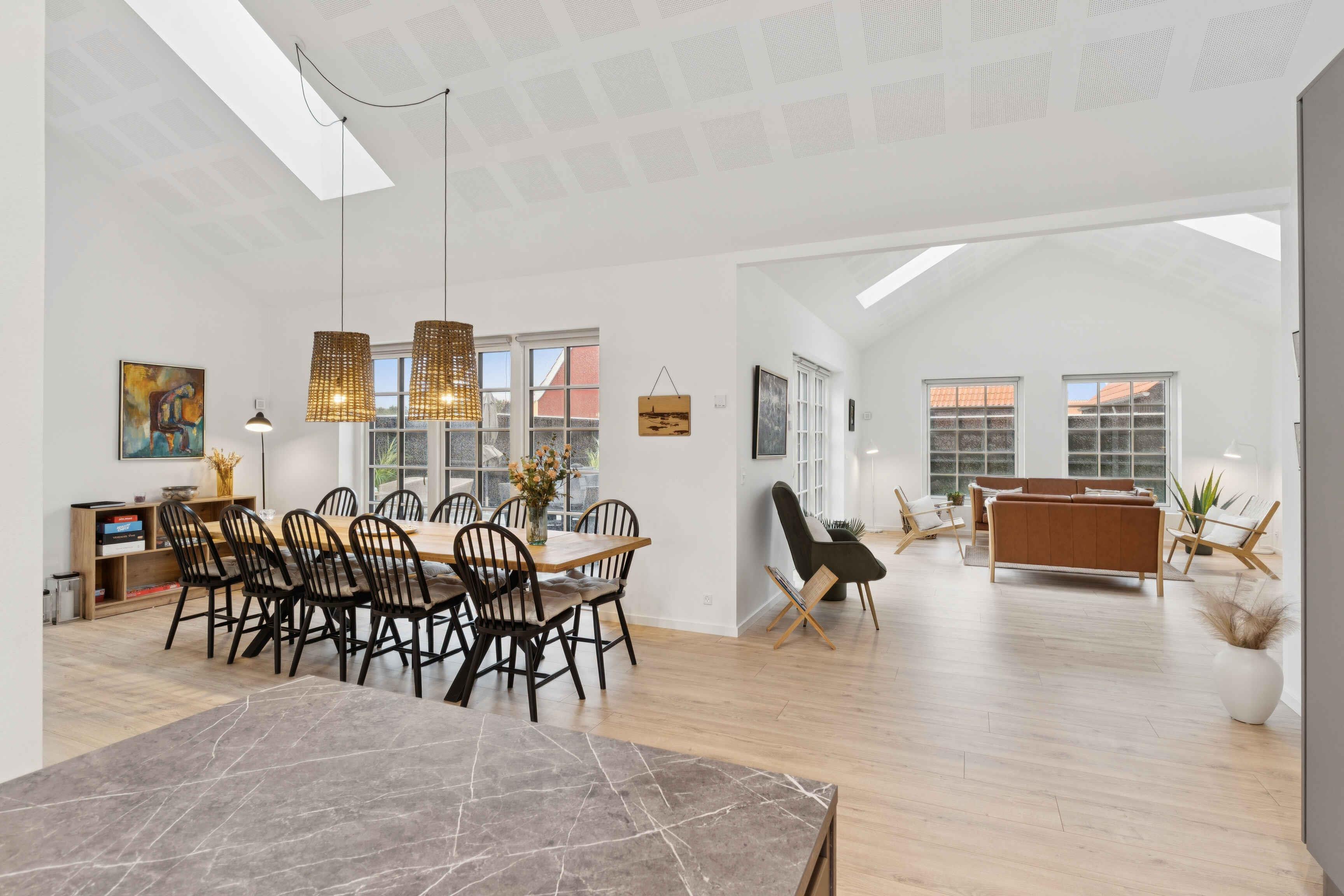 Hold en skøn ferie i dette lyse og rummelige sommerhus lige i centrum af Skagen. Sommerhuset har en stilfuld stue og spiseområde med flot og kvalitetsbevidst indretning. Med højt til loftet kan I melde klar til årets familieferie i ro og mag og gøre klar til spændende oplevelser. I kan tilberede lækre retter i det moderne, åbne køkken og efterfølgende nyde aftenen i de bløde sofaer. Måske I har lyst til en omgang brætspil ved det lange spisebord med fyldte snackskåle. På den store terrasse kan I bruge sommeraftenerne på at grille lækre grillretter til det gode selskab og mikse gode drinks. Husets centrale beliggenhed gør det nemt for jer at udforske de mange oplevelser, som Skagen har at byde på. I kan besøge Skagens Museum og fordybe jer i de berømte skagenmaleres verden. Tag en tur til Grenen og oplev det unikke fænomen, hvor Nordsøen og Østersøen mødes. Pak de gode sko og tag på en gåtur gennem de imponerende klitlandskaber på langs den smukke sandstrand.