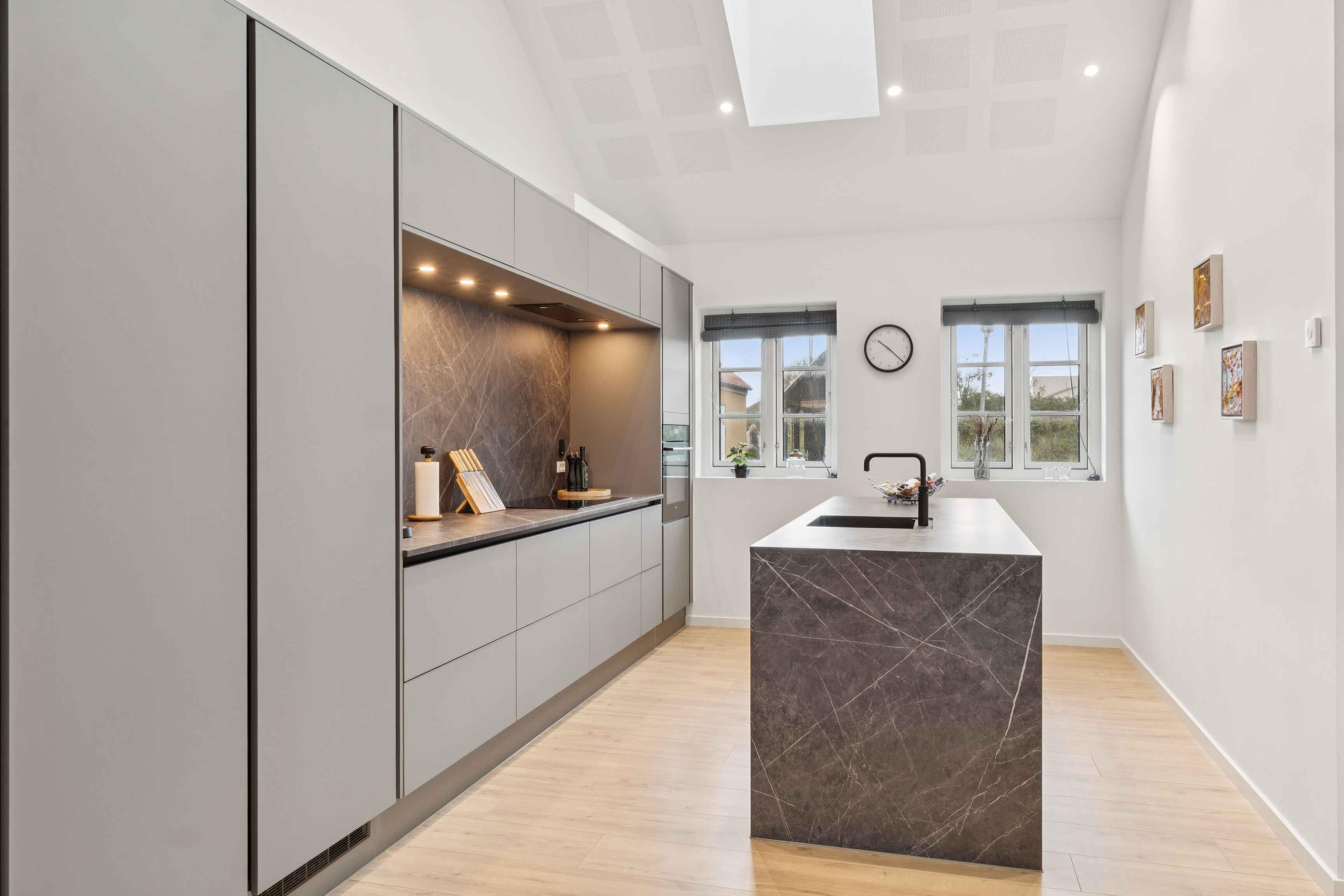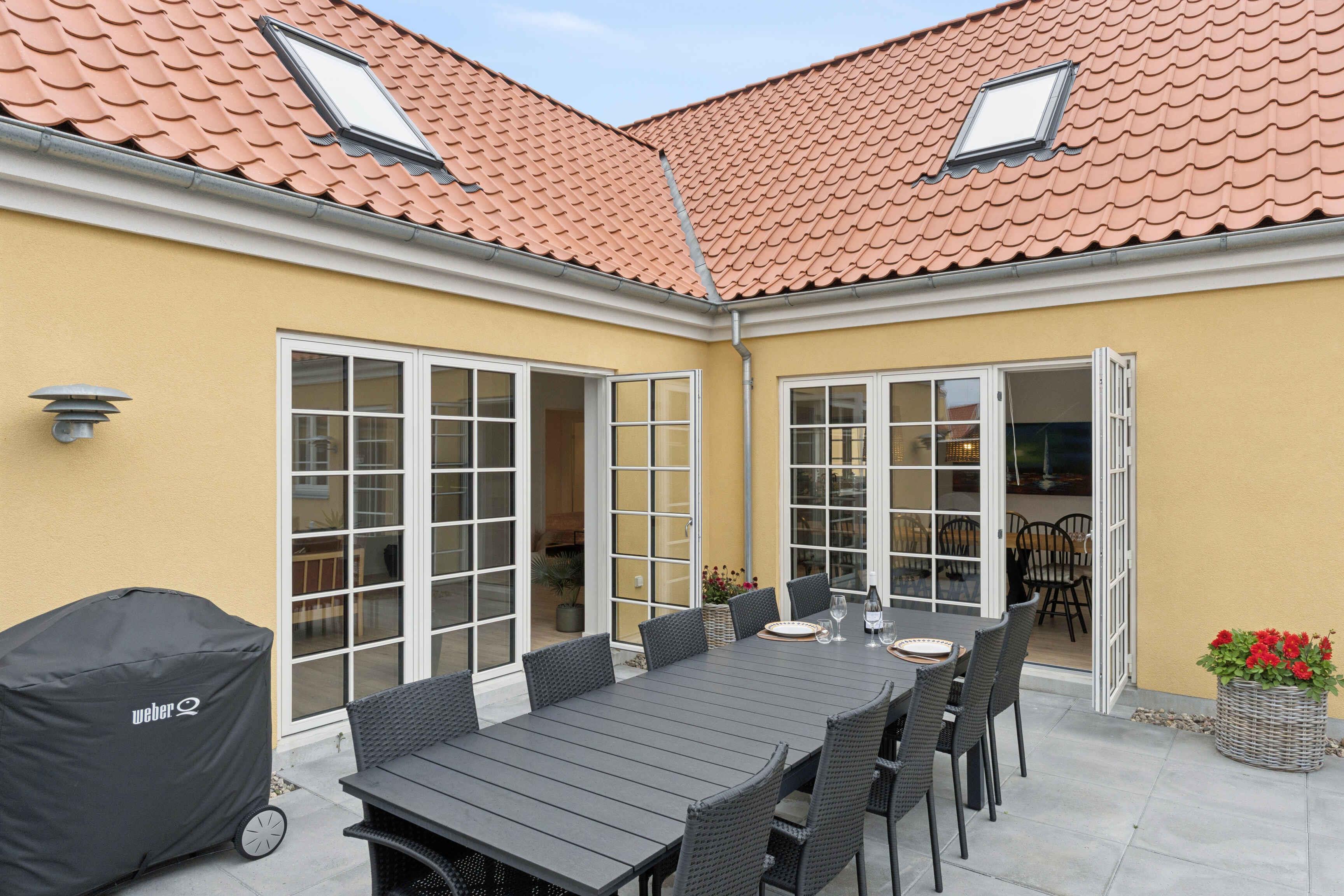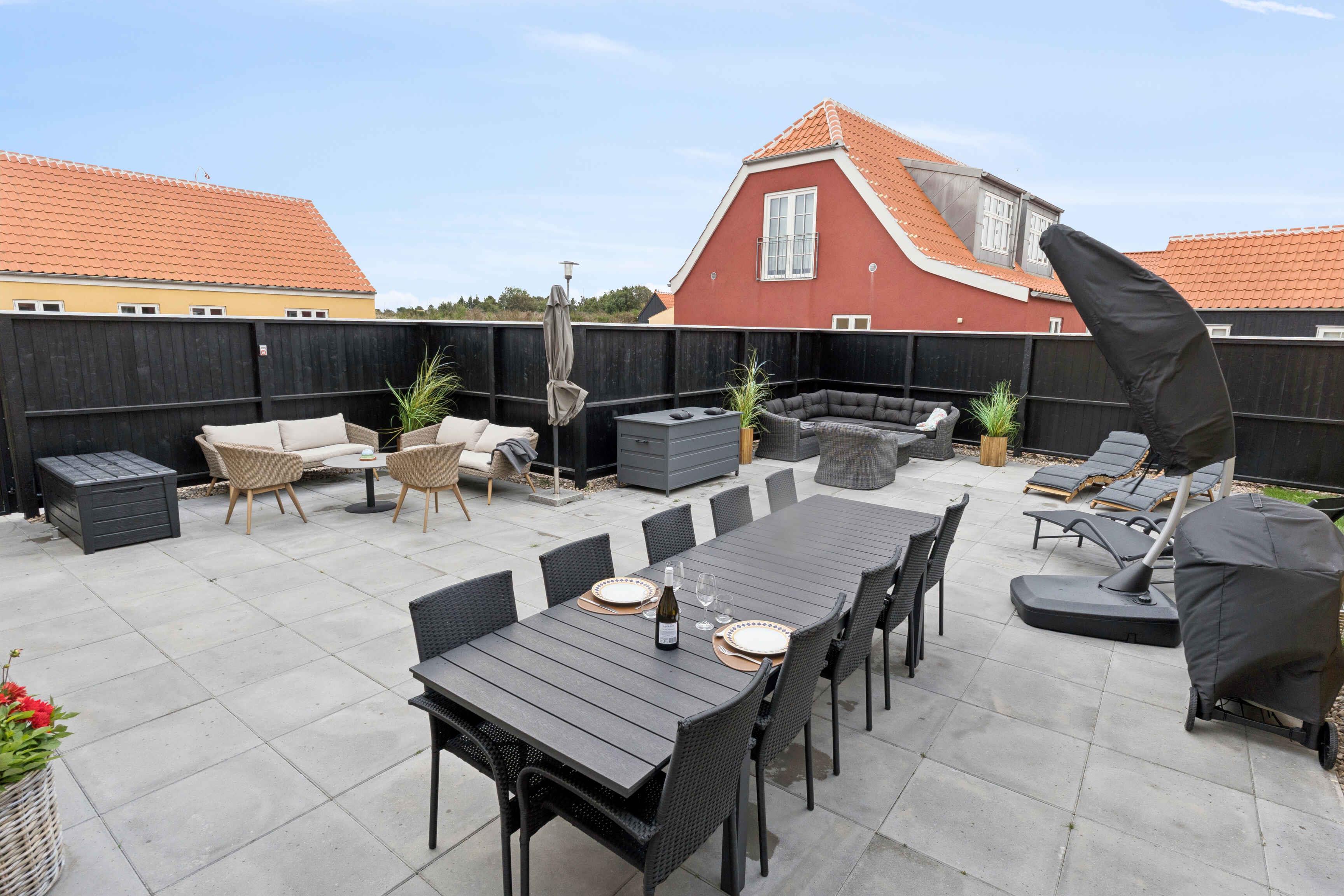 Lyst og stilfuldt sommerhus i Skagens centrum med stor terrasse og moderne køkken, perfekt til familieferien.