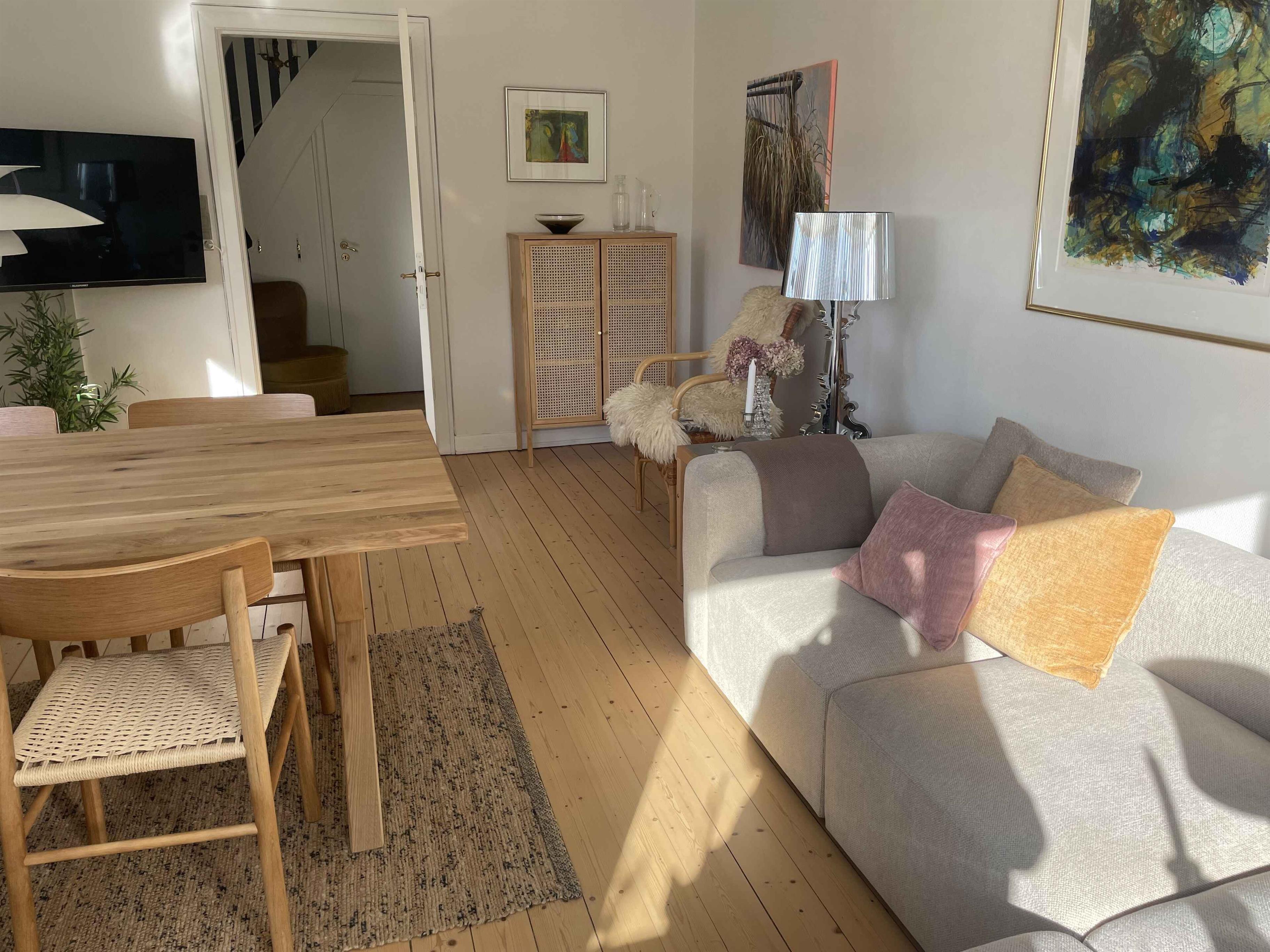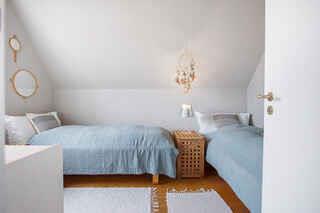 Denne charmerende ferielejlighed, beliggende i skønne Skagen, er ideelt til en familie eller vennepar, der ønsker at tilbringe tid sammen i perfekte ferieomgivelser. Lejligheden er designet med komfort og hygge i tankerne og byder på en række attraktive faciliteter. Når man træder ind i lejligheden, bliver man mødt af en dejlig lys stue, som er perfekt til afslapning efter en dag med udendørs aktiviteter. Stuen er indrettet med komfortable møbler og store vinduer, der slipper masser af naturligt lys ind, hvilket skaber en behagelig og indbydende atmosfære. Køkkenet i lejlighed er hyggeligt og ældre, men fuldt udstyret med alt hvad man behøver for at tilberede måltider. Den lille spisekrog i køkkenet giver en intim ramme for familiens måltider og hyggelige samtaler. Indgangen til huset er gennem en skøn entre, der har en trappe, der fører op til første sal. Her finder man et moderne badeværelse og to soveværelser. Det første soveværelse er udstyret med to kvalitetssenge, der sikrer en god nats søvn. Det store soveværelse har en komfortabel dobbeltseng, og der er mulighed for at tilføje en ekstra seng, hvis det er nødvendigt. Fra dette soveværelse er der udgang til en lille, privat altan, hvor man kan sidde og nyde den smukke solnedgang over landskabet. Sengene i begge soveværelser er af høj kvalitet, hvilket sikrer en god nattesøvn, så man er frisk og veludhvilet til næste dags eventyr. En anden stor fordel ved dette sommerhus er, at forbrug er inkluderet i prisen, hvilket gør det nemt at planlægge og budgettere ferien uden at bekymre sig om ekstra udgifter. Samlet set tilbyder denne bolig en unik kombination af charme, komfort og funktionalitet. Med sin lyse stue, hyggelige køkken og skønne soveværelser med kvalitetssenge, er det det perfekte valg for en afslappende og mindeværdig ferie. FORBRUG ER INCLUSIV I PRISEN Obs, udlejes ikke til erhversmæssigt brug.