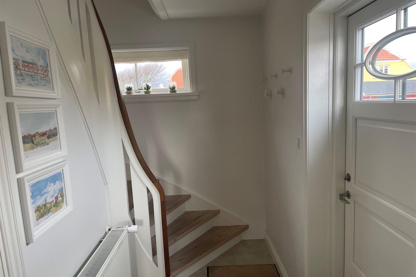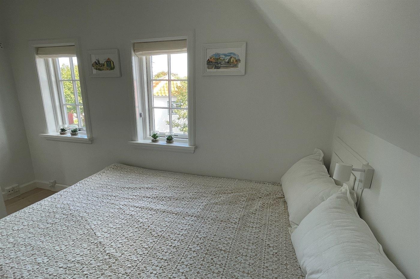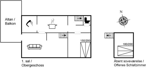 Den egner sig til 4 personer, der er 2 sovepladser i et soveværelse og 2 sovepladser i et åbent soveværelse. Adgangen til det åbne soveværelse sker via en trappe i stuen, og deroppefra er der udsigt ud over havet, havnen og det meste af Østerby.