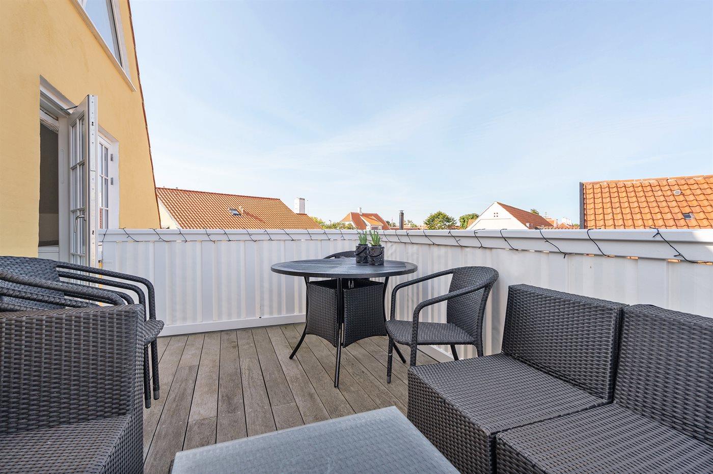 Charmerende ferielejlighed i Skagen med havudsigt og stor tagterrasse nær Sønderstrand.