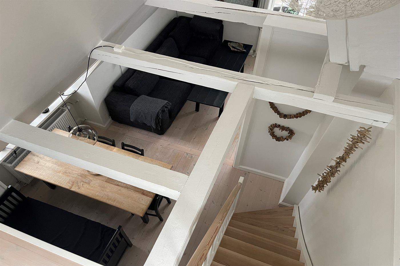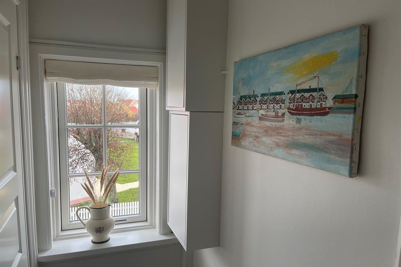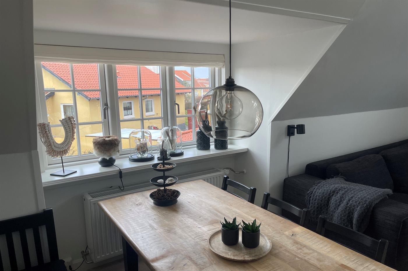 Lejligheden ligger på 1. sal med vinduer ud mod Østerbyvej, én af de mest eftertragtede gader i Skagen. Fra stuen er der udsigt til skibene på havnen samt udsigt til Østerbys karakteristiske gule huse.