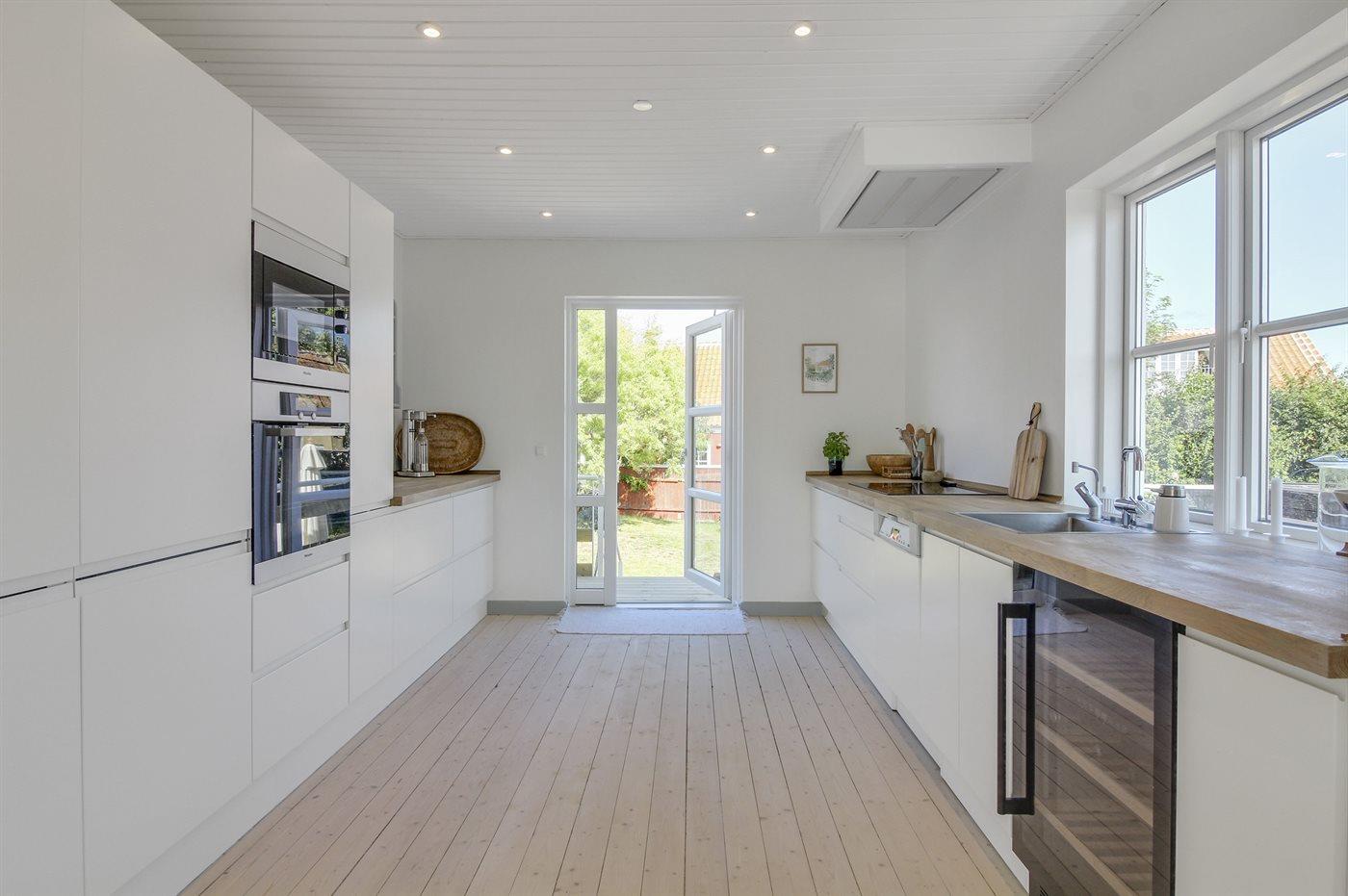Køkkenet er udstyret med 1 køleskab. Der er 4 induktionskogeplader, varmluftovn, mikrobølgeovn samt opvaskemaskine.