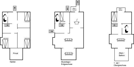 Der er i alt 5 soveværelser. Sovepladserne fordeler sig på: 8 sovepladser i dobbeltsenge. 1 soveplads i enkeltseng.