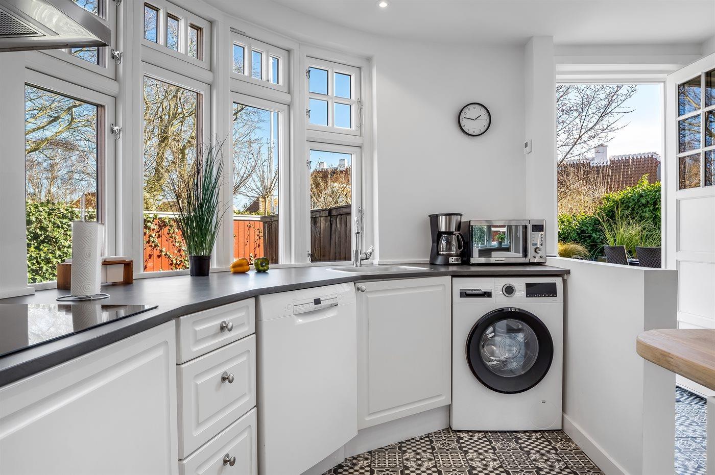 Køkkenet er udstyret med 1 køleskab. Der er 4 induktionskogeplader, varmluftovn, mikrobølgeovn samt opvaskemaskine.