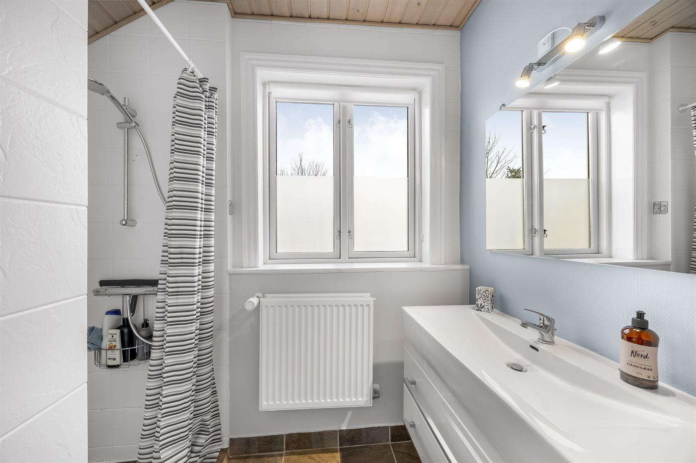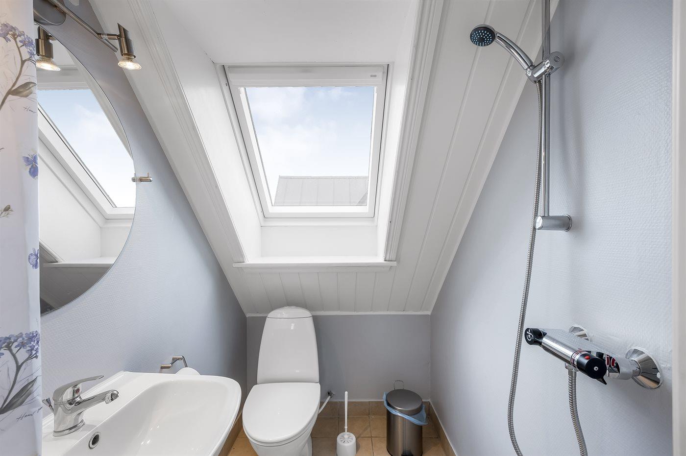 Der er 2 badeværelser med bruseniche og 2 toiletter. Der er gulvvarme på 2 badeværelser.