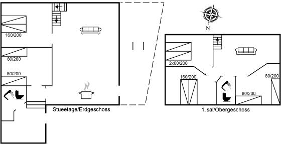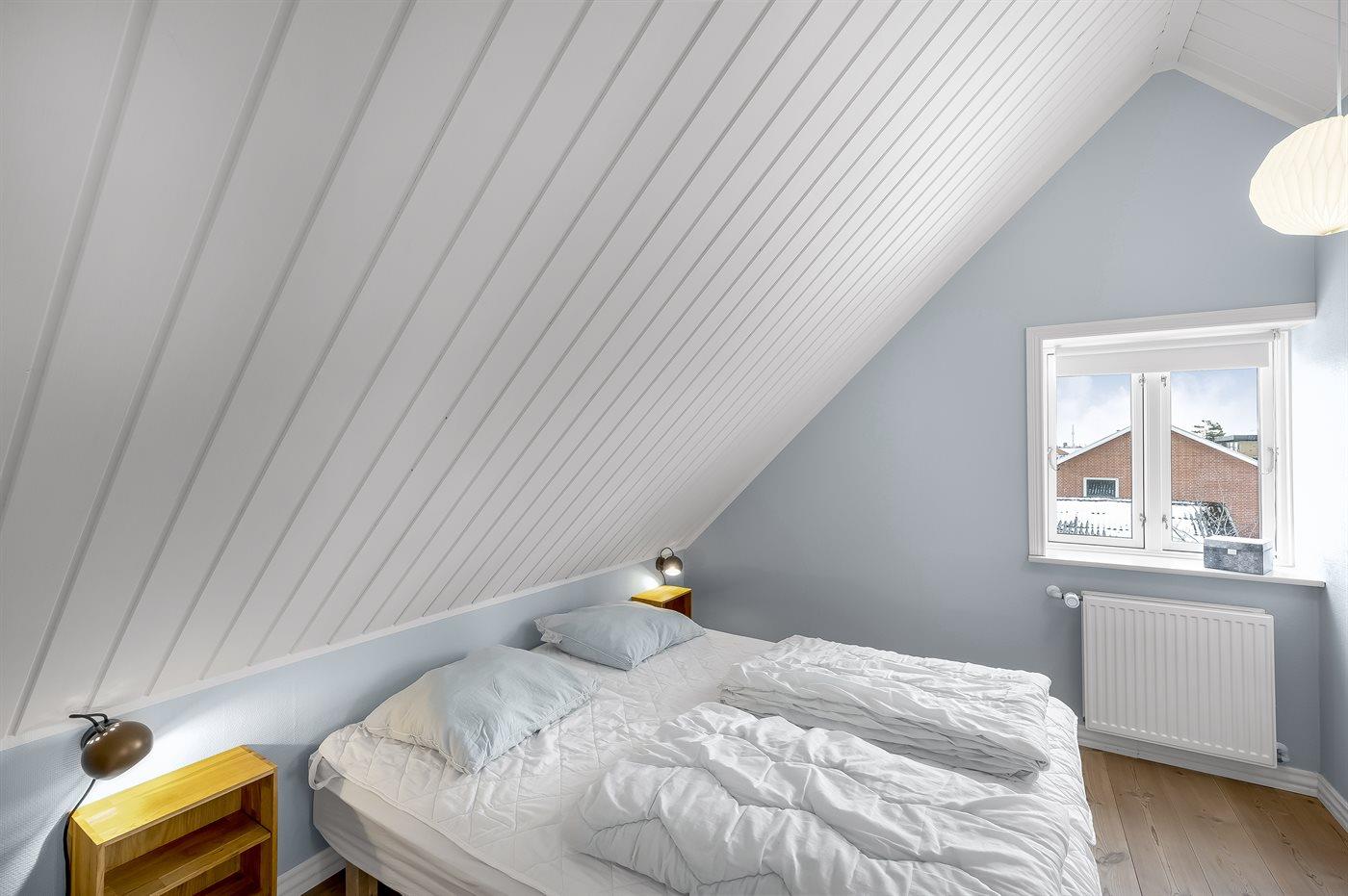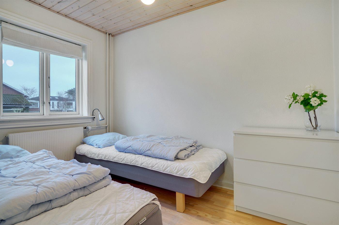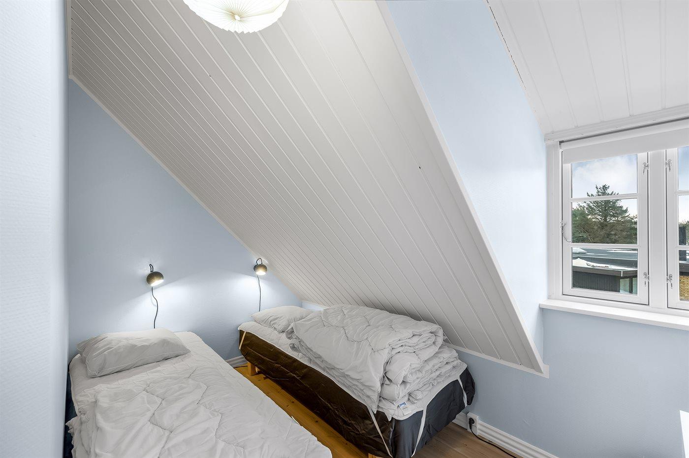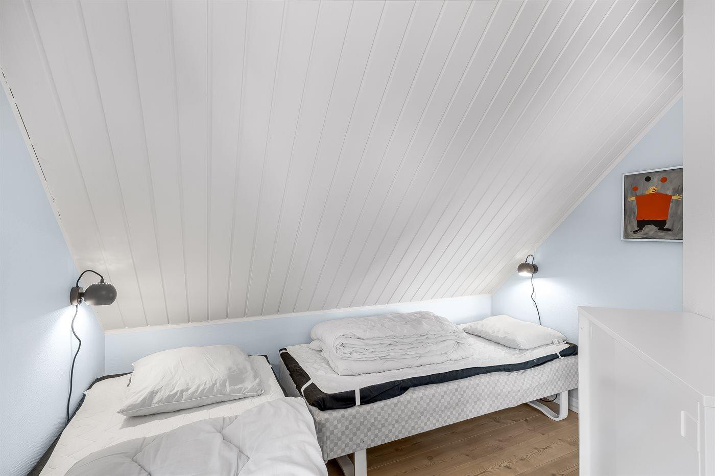 Der er i alt 5 soveværelser. Sovepladserne fordeler sig på: 4 sovepladser i dobbeltsenge. 6 sovepladser i enkeltsenge.