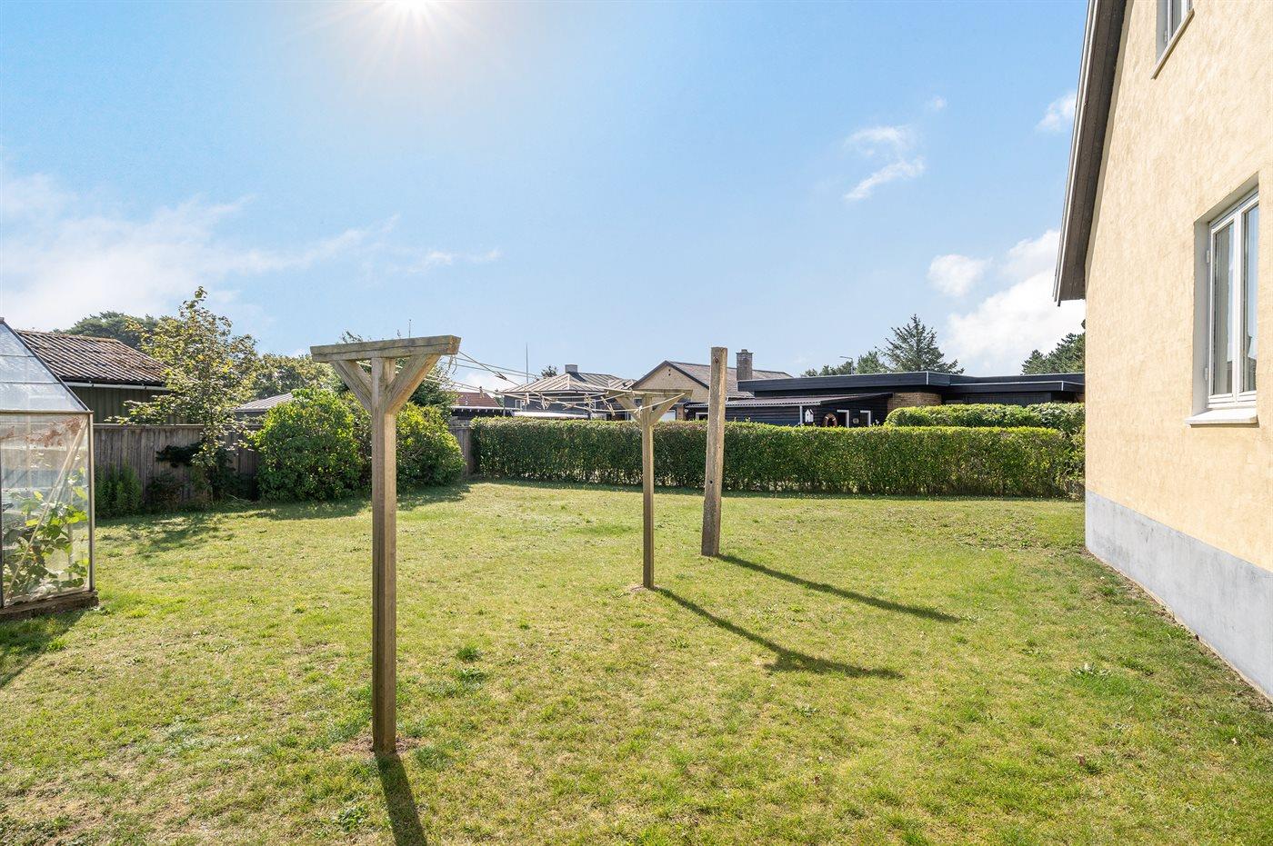 Ferieboligen er beliggende på en 537 m² stor naturgrund. Der er 850 m til havet. Nærmeste forretning er beliggende i en afstand af 500 m. Til ferieboligen hører 30 m² terrasseareal. Der er installeret stik til opladning af elbil. Med 11 kW ladeeffekt. Parkering ved ferieboligen.