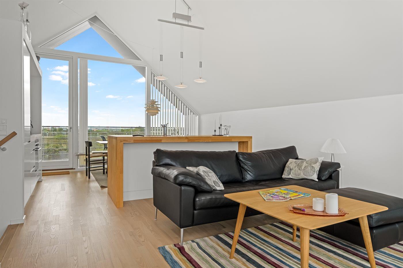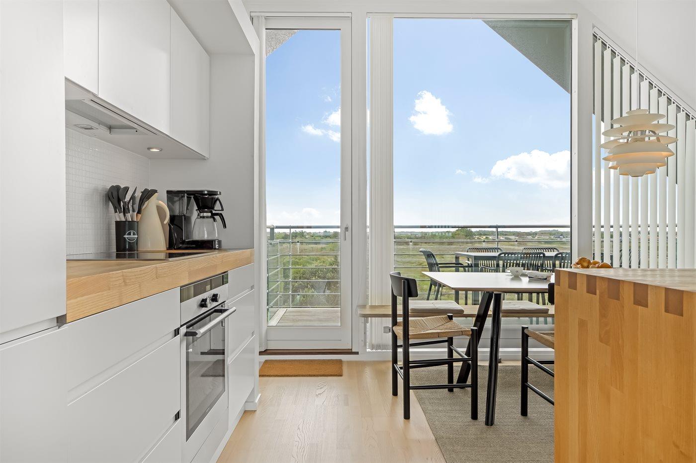 Køkkenet er udstyret med 1 køleskab. Der er 4 induktionskogeplader, varmluftovn samt opvaskemaskine.