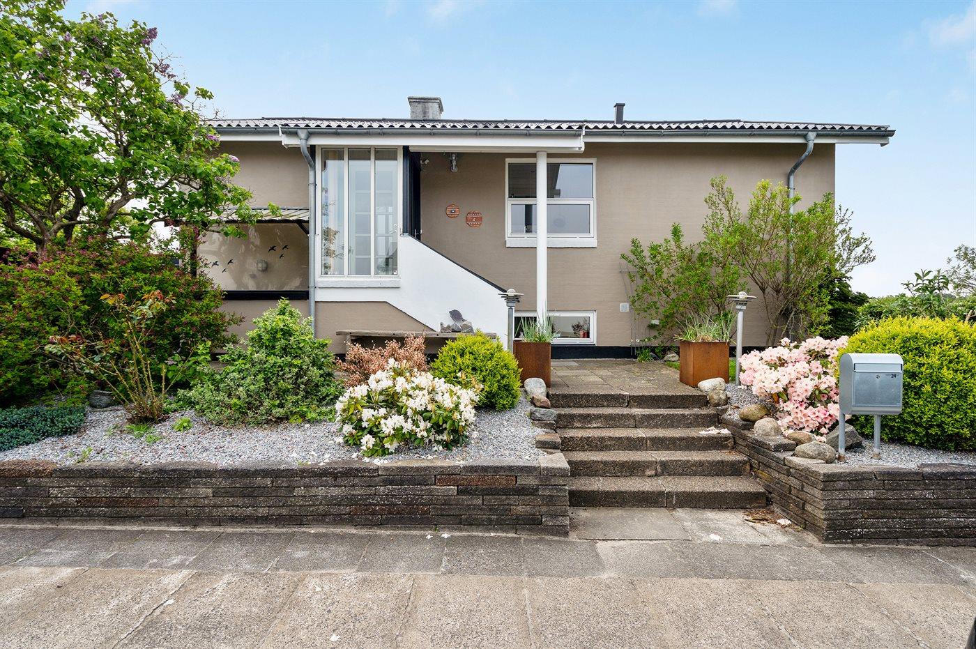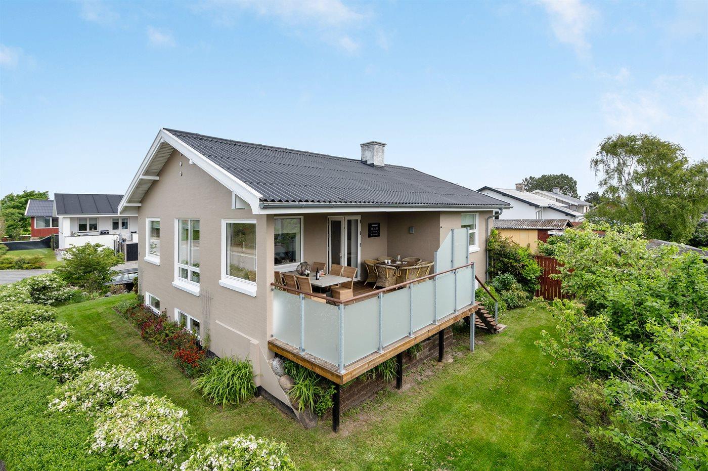 Huset, som ligger i et roligt kvarter har et boligareal på 168 kvm som er fordelt på 2 plan og har et tilhørende anneks. Der findes en skøn, overdækket træterrasse, hvorfra der er view udover byens grønne stadion. Haven rundt om huset er hyggelig med blomster og træer og er delvist indhegnet. Der er gode parkeringsmuligheder i husets egen indkørsel.