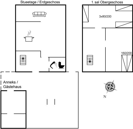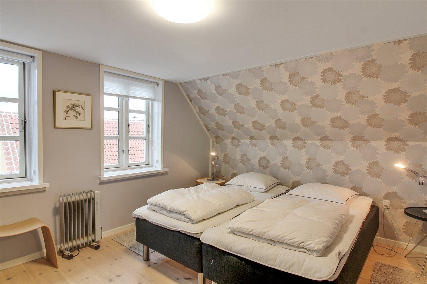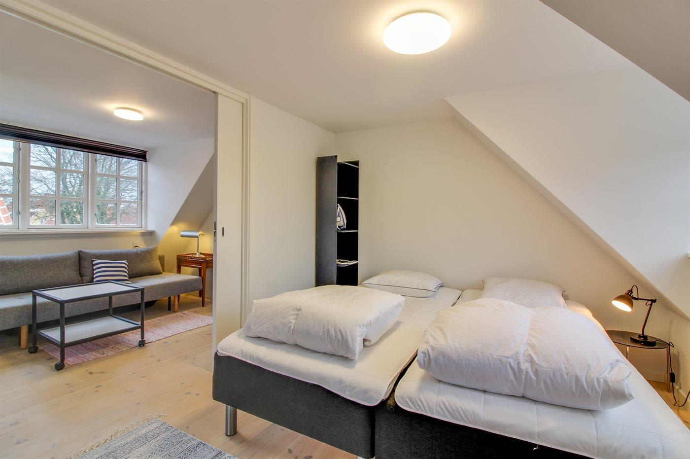 Der er i alt 2 soveværelser. Sovepladserne fordeler sig på: 2 sovepladser i dobbeltseng. 3 sovepladser i enkeltsenge.