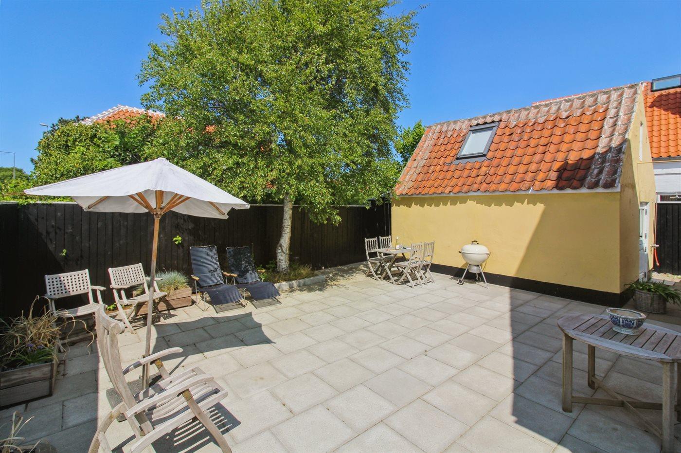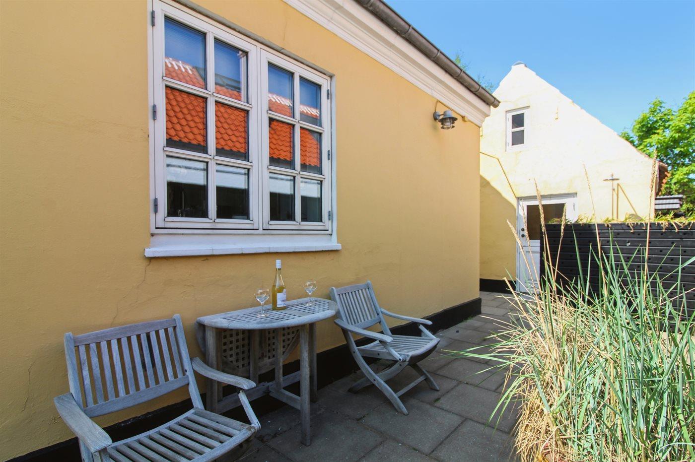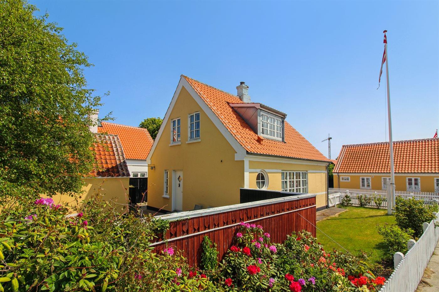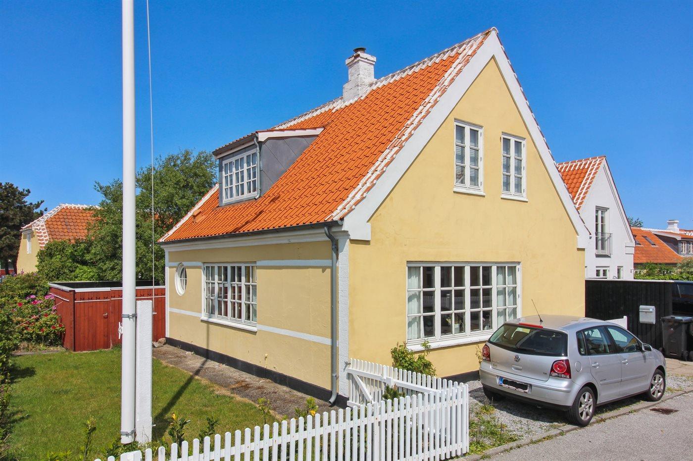 Klassisk skagenshus med lukket terrasse nær centrum, strand og havn i Skagen.