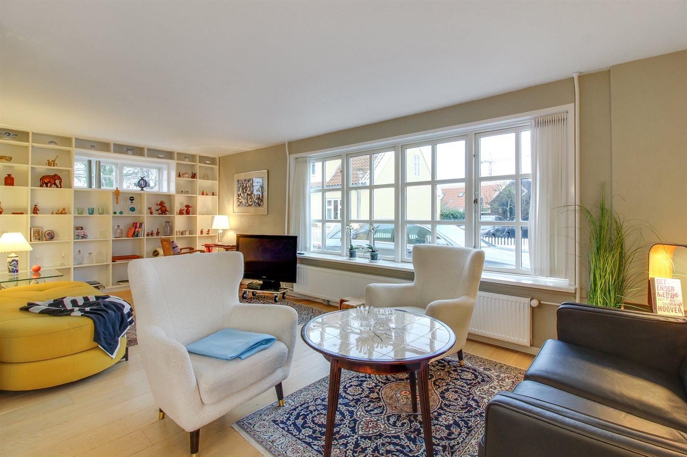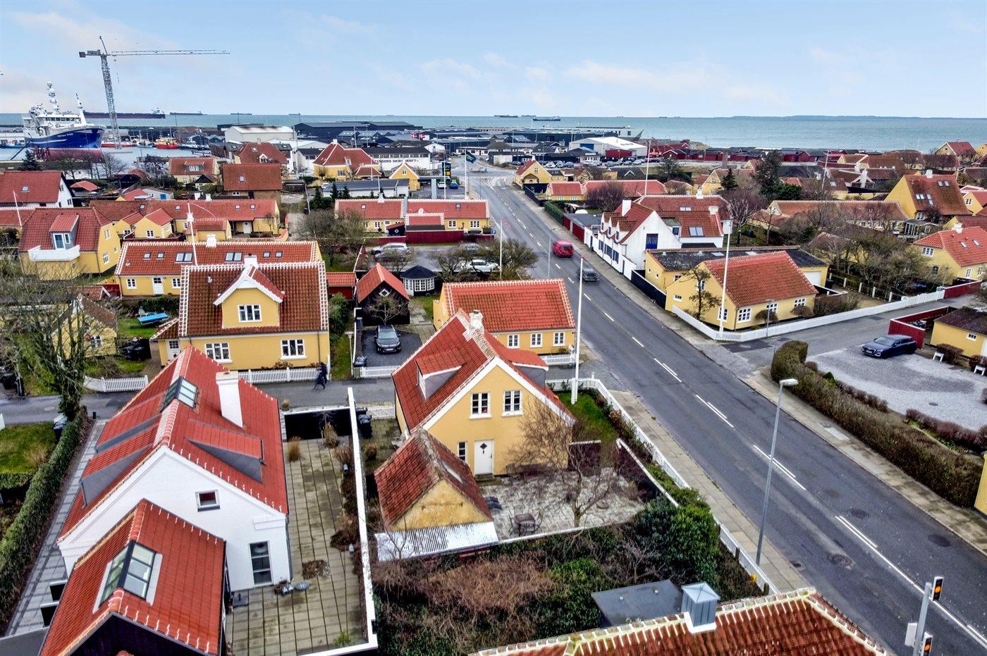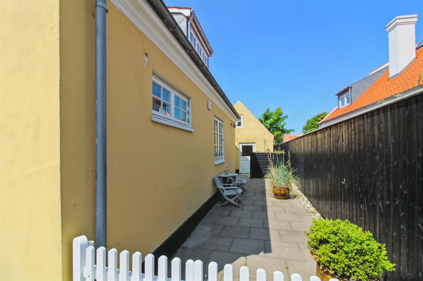 Klassisk skagenshus med lukket terrasse nær centrum, strand og havn i Skagen.