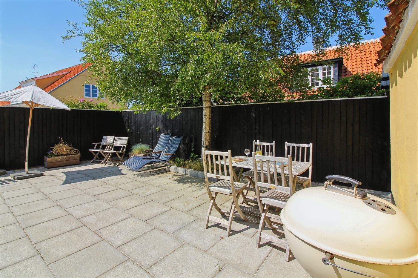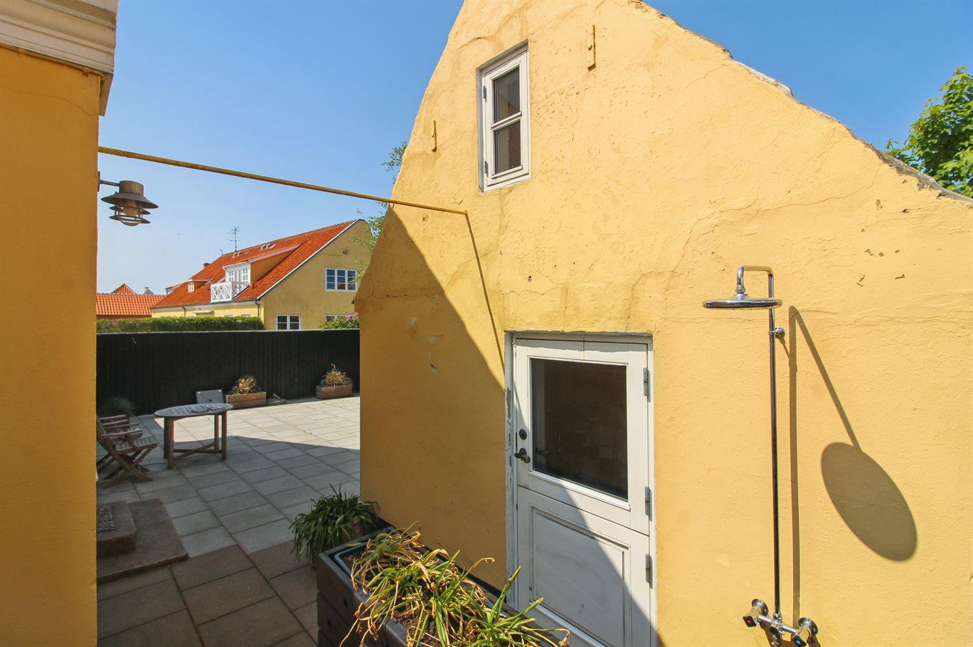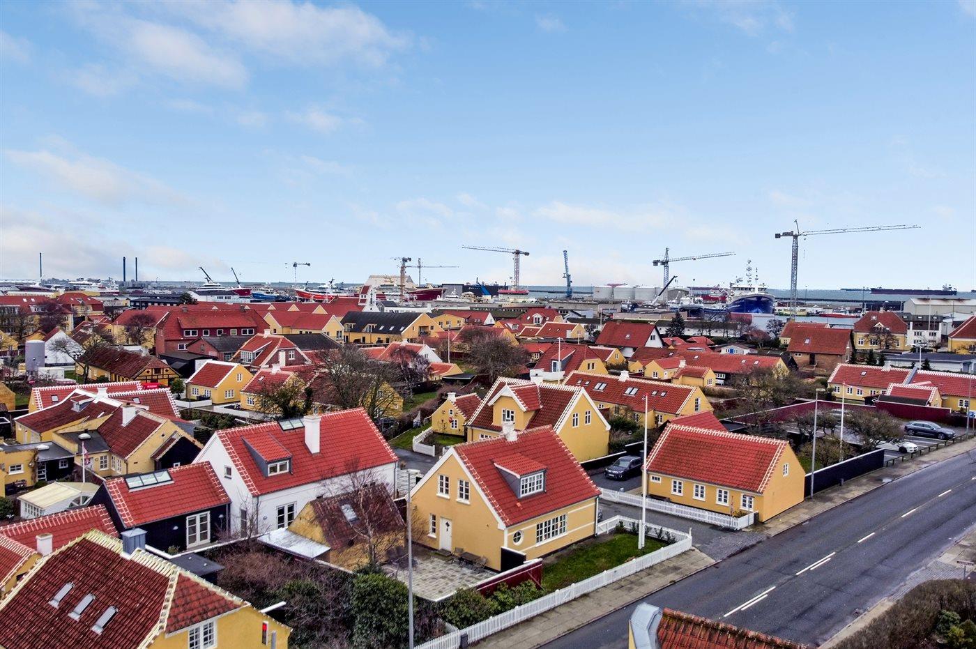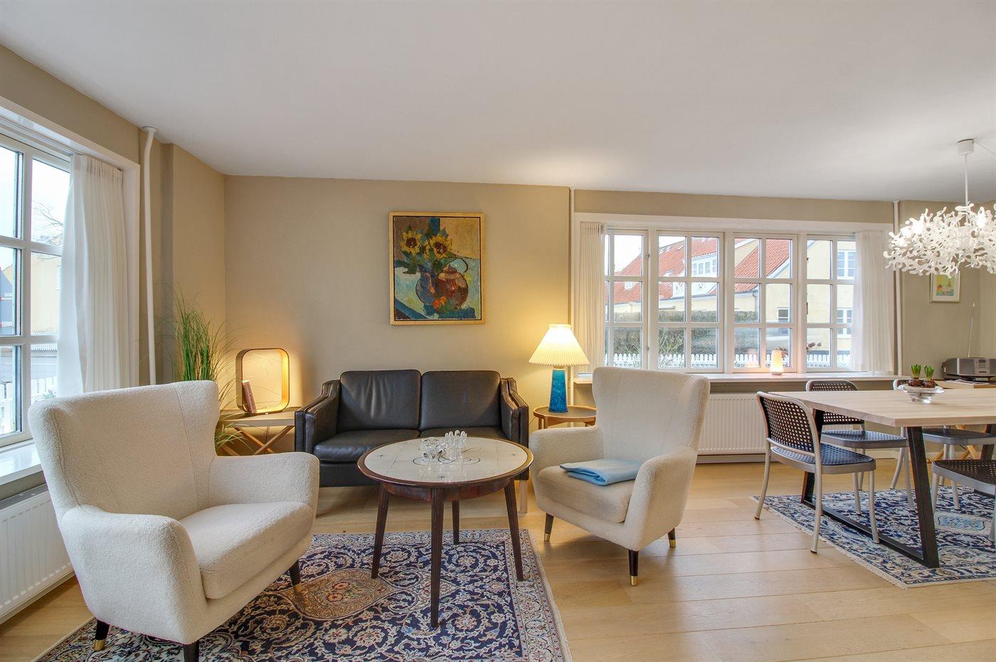 Klassisk skagenshus med lukket terrasse nær centrum, strand og havn i Skagen.