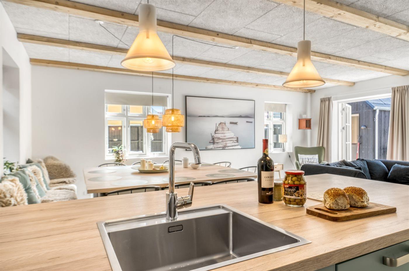 Køkkenerne er veludstyrede med i alt 2 køleskabe, 5 induktionskogeplader, varmluftovn, 2 mikrobølgeovne samt opvaskemaskine. Frysekapacitet på 60 liter, og der er opsat bæredygtig affaldssortering.