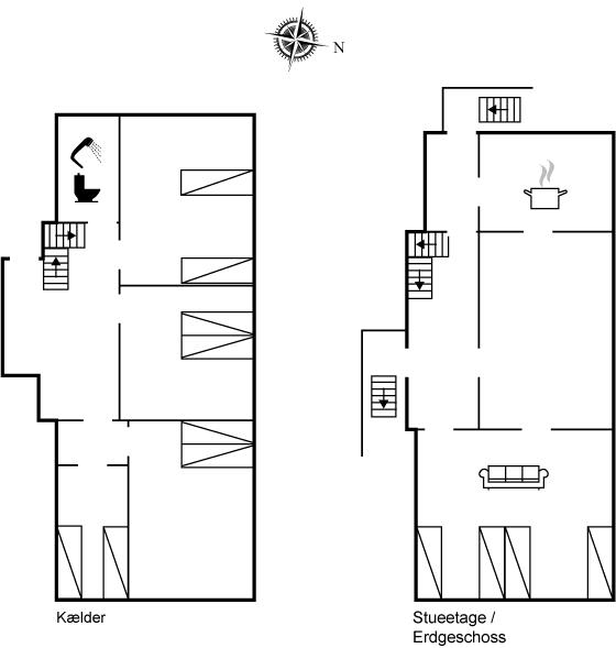 Husets størrelse og indretning gør det velegnet til såvel 1 som 2 familier, idet lejemålet er både lejlighed B og C (kælder og stueplan), men også til flere par, som ønsker at tilbringe en fælles ferie i dejlige omgivelser.