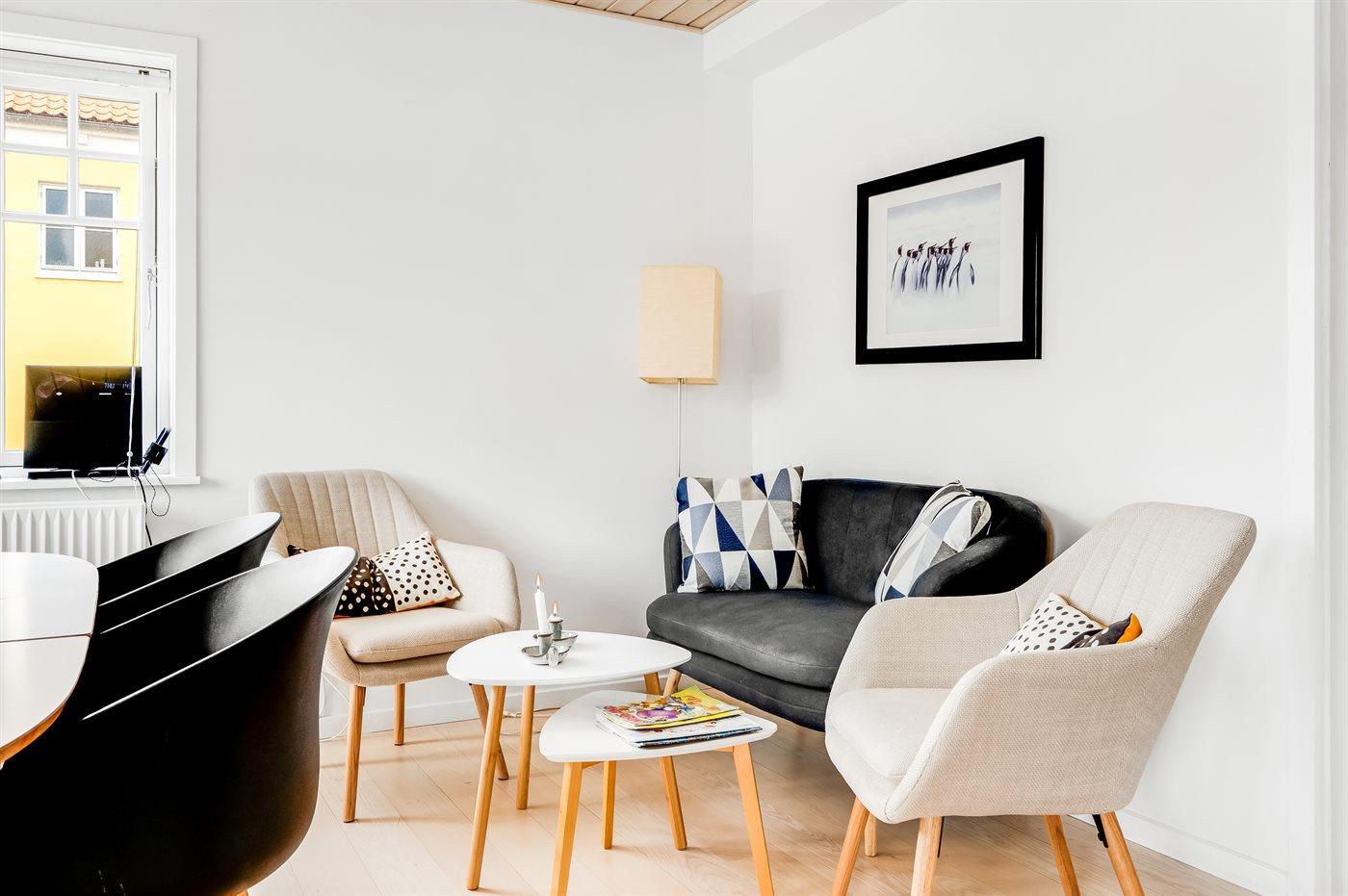 Ingen udlejning til ungdomsgrupper, hvor alle er 15-25 år. Rygning ikke tilladt. Ved overtrædelse af forbuddet opkræves et gebyr på minimum DKK 3.000,-. Selvom der er tale om ét samlet lejemål bestående af to lejligheder, er de ikke indbyrdes forbundet, og det er derfor nødvendigt at gå udenfor for at komme fra den ene til den anden.