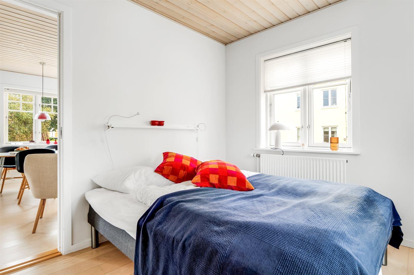 Der er i alt 6 soveværelser. Sovepladserne fordeler sig på: 4 sovepladser i dobbeltsenge. 8 sovepladser i enkeltsenge.