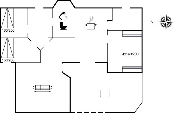 Der er i alt 3 soveværelser. Sovepladserne fordeler sig på: 4 sovepladser i dobbeltsenge. 4 sovepladser i køjesenge. Derudover er der 1 stk. barneseng.