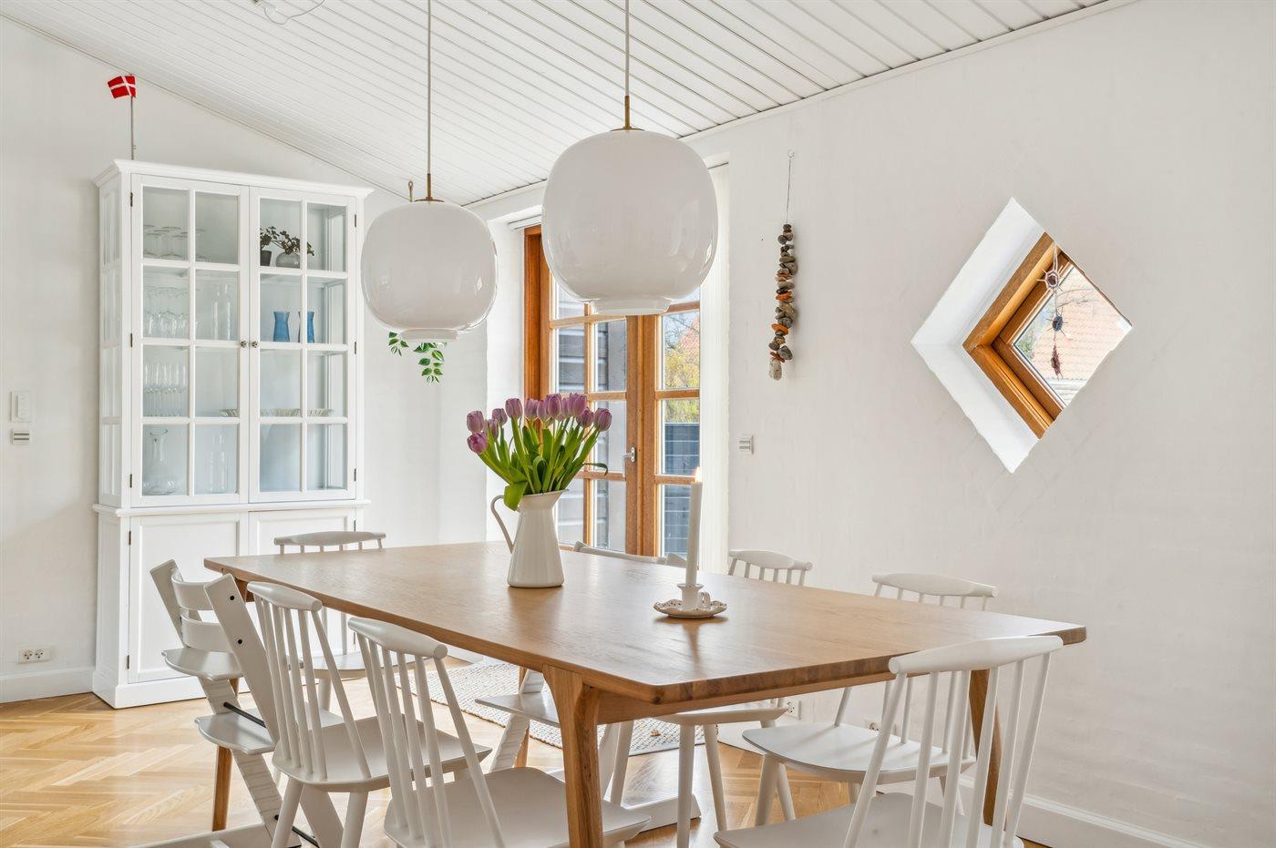Køkkenet er udstyret med 1 køleskab. Der er 4 induktionskogeplader, varmluftovn, mikrobølgeovn samt opvaskemaskine.