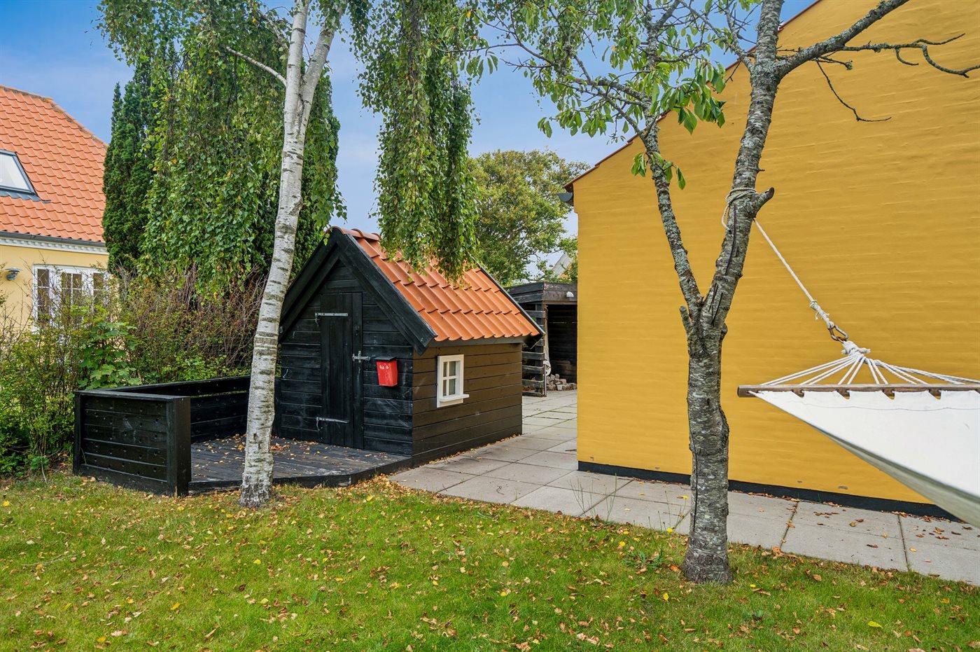 Ferieboligen er beliggende på en 453 m² stor naturgrund. Grunden er indhegnet. Der er 650 m til havet. Nærmeste forretning er beliggende i en afstand af 350 m. Til ferieboligen hører åbent terrasseareal. Legehus. Grill til rådighed. Parkering ved ferieboligen.