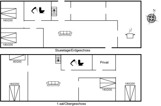 Der er i alt 5 soveværelser. Sovepladserne fordeler sig på: 10 sovepladser i dobbeltsenge. 1 soveplads i enkeltseng.