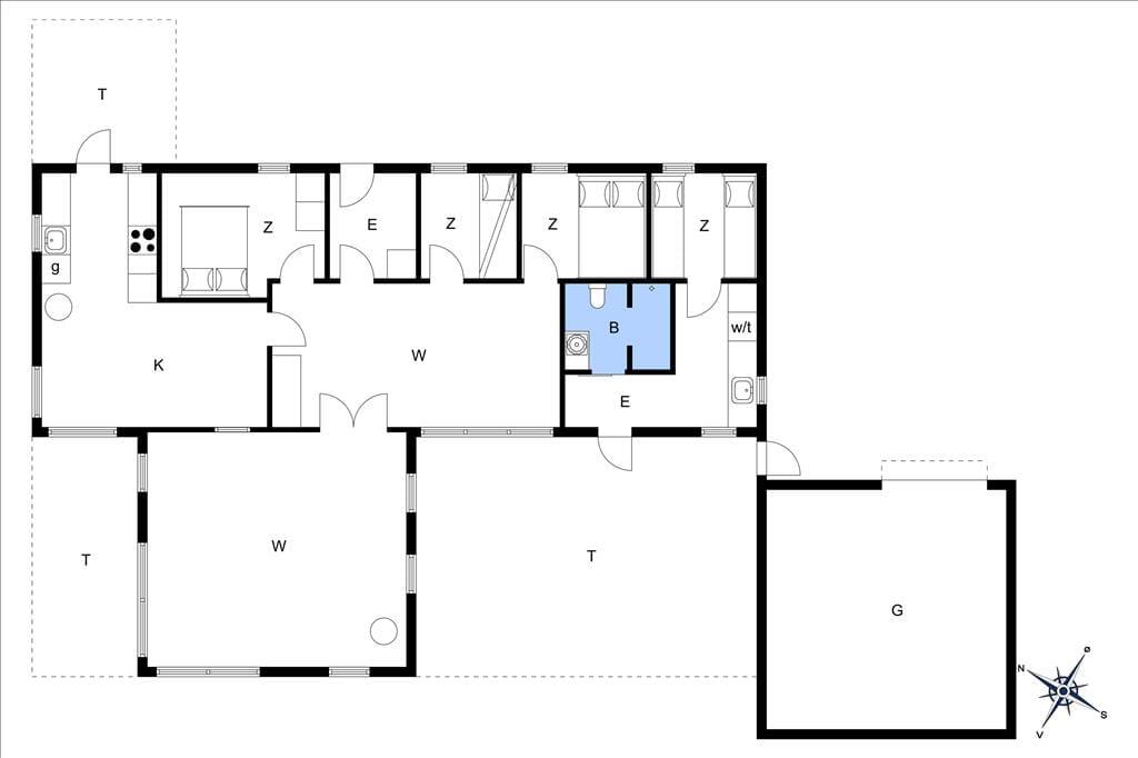Fra entreen træder man ind i den ene af sommerhusets to stuer. Her er spiseplads og en skøn udsigt til terrassen og haven. Det store og hyggelige køkken er veludstyret og ligesom husets største stue, er der også her en fantastisk panoramaudsigt over Vesterhavet. Huset har 4 soveværelser og et badeværelse med en dejlig stor brusekabine.