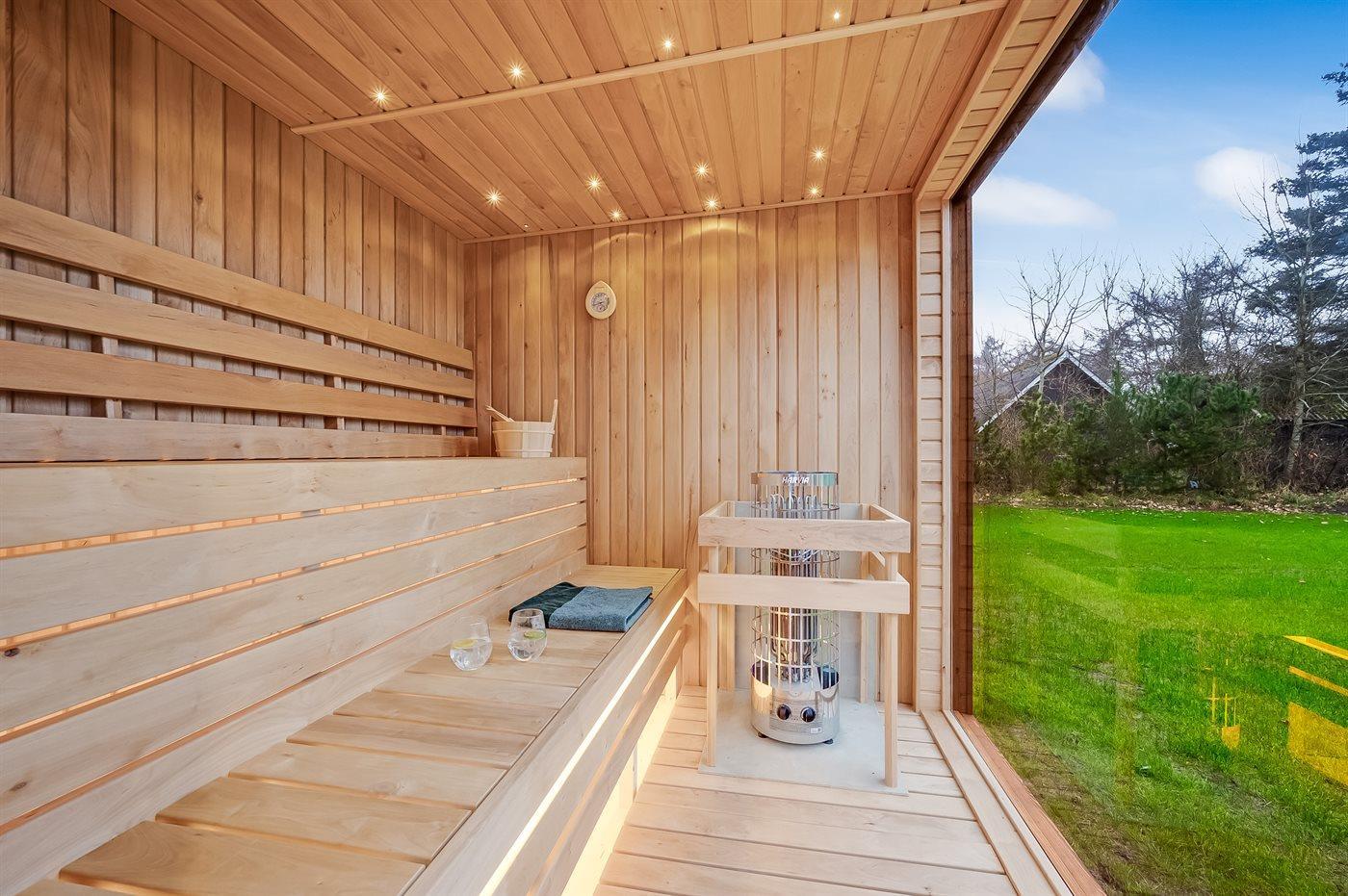 I det udendørs område kan I koble helt af med både vildmarksbad og saunatønde, der inviterer til total afslapning.