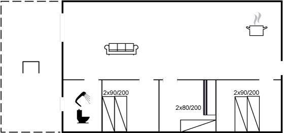 Der er i alt 3 soveværelser. Sovepladserne fordeler sig på: 4 sovepladser i dobbeltsenge. 1 soveplads i enkeltseng.1 soveplads i køjeseng. Derudover er der 1 stk. barneseng.