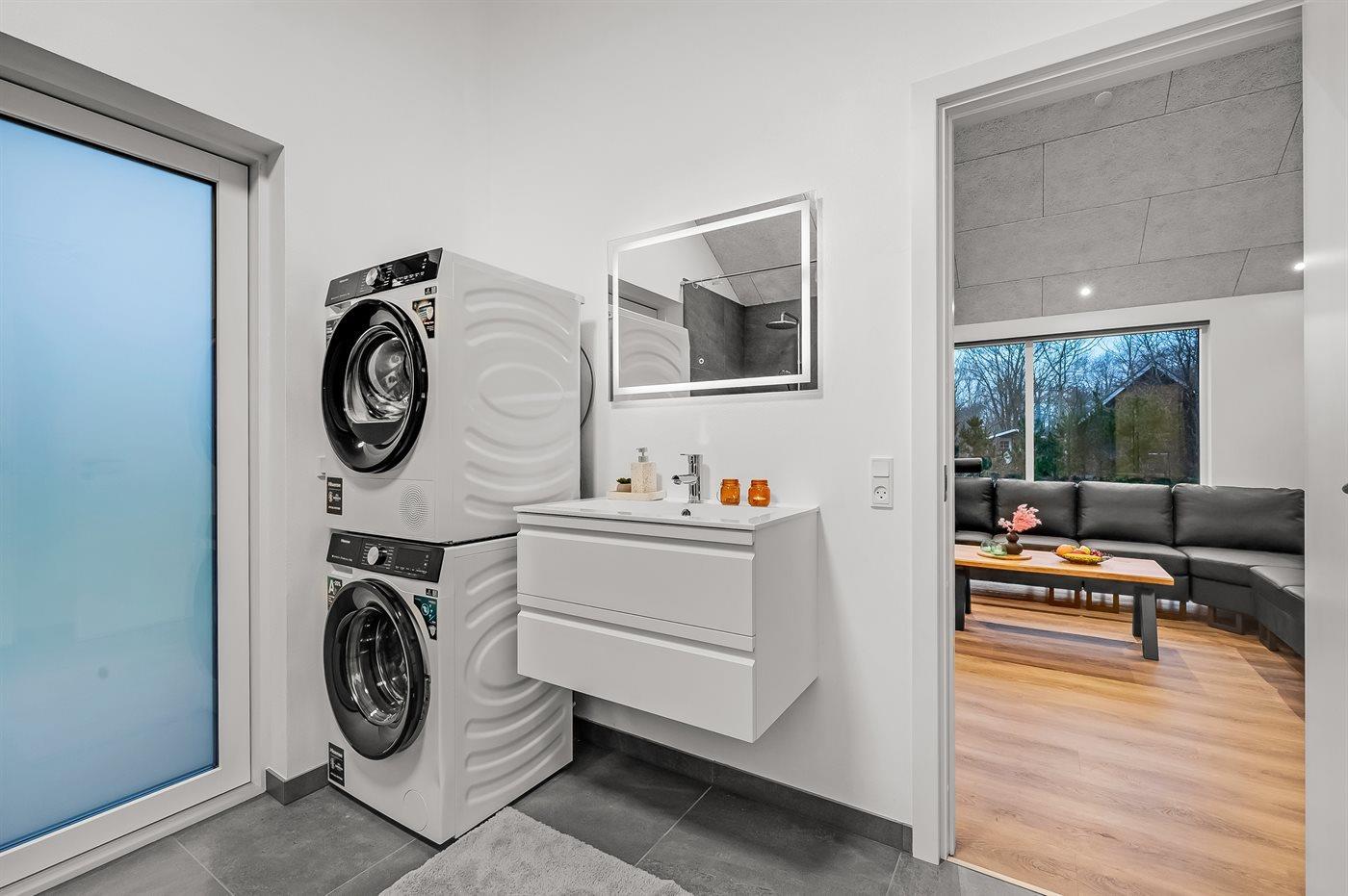 Forkæl jer selv med en afslappende pause fra hverdagen sammen med familie eller venner i dette stilfulde og indbydende hus. Store gulv-til-loft vinduer skaber en lys og hyggelig atmosfære, der fremhæves af elegante møbler og et gennemtænkt indretning.