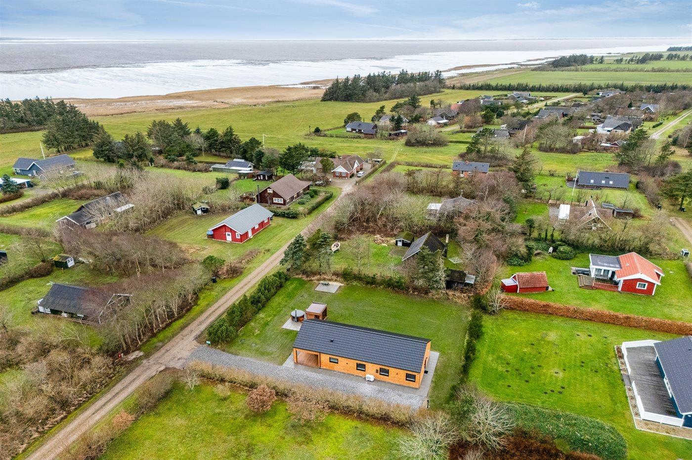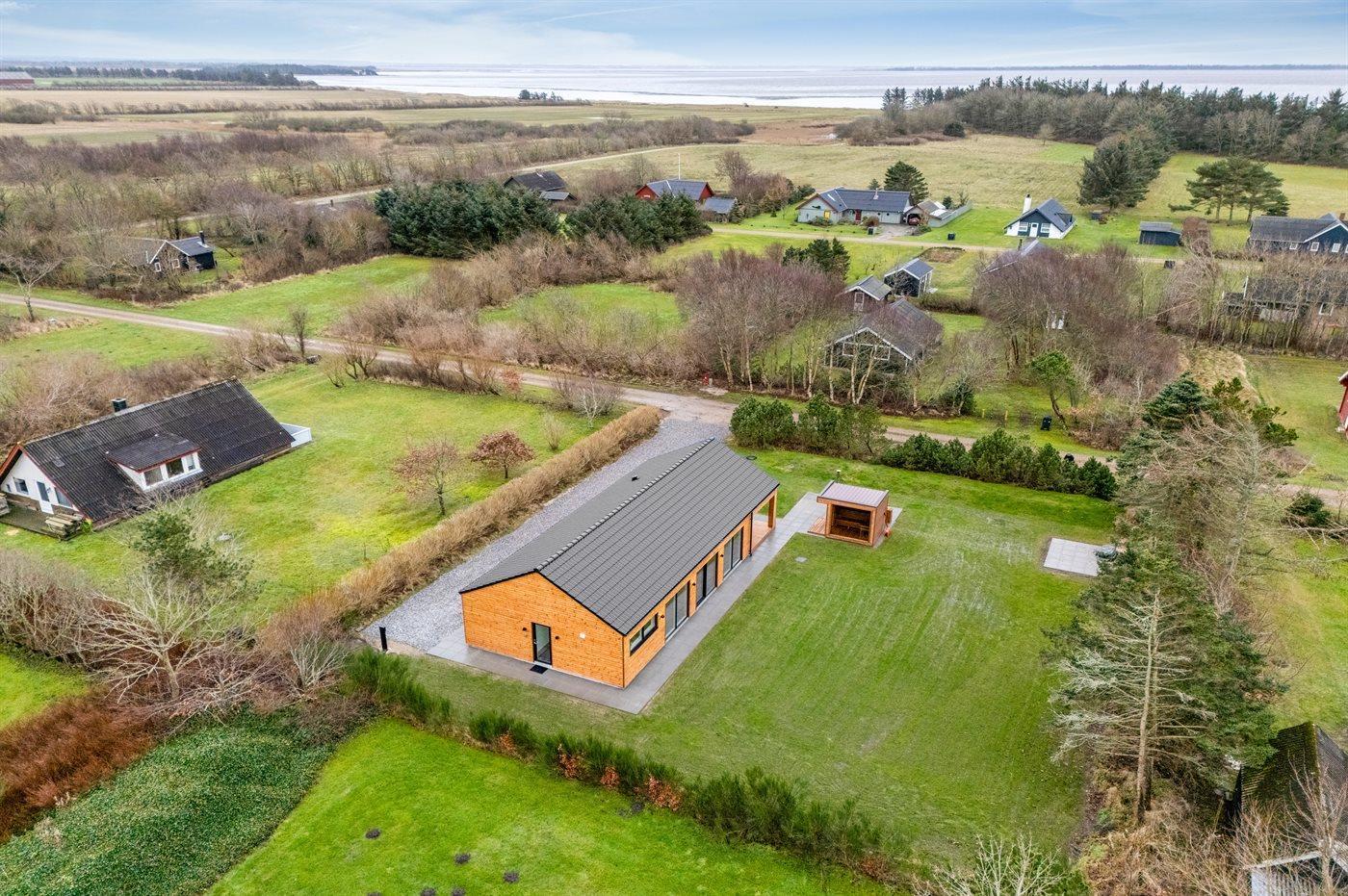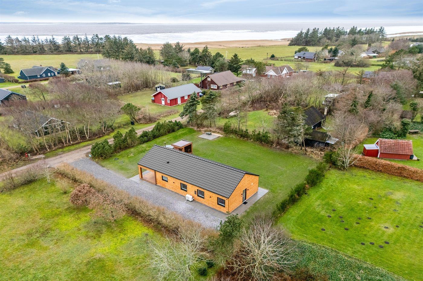 Ferieboligen er beliggende på en 1050 m² stor naturgrund. Der er 400 m til fjorden. Nærmeste forretning er beliggende i en afstand af 10000 m. Til ferieboligen hører åbent terrasseareal. Desuden er der overdækket terrasse. Udendørs sauna. Der er installeret stik til opladning af elbil. Med 11 kW ladeeffekt. Parkering ved ferieboligen.