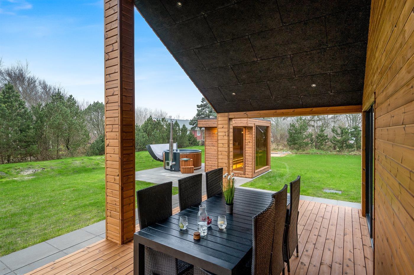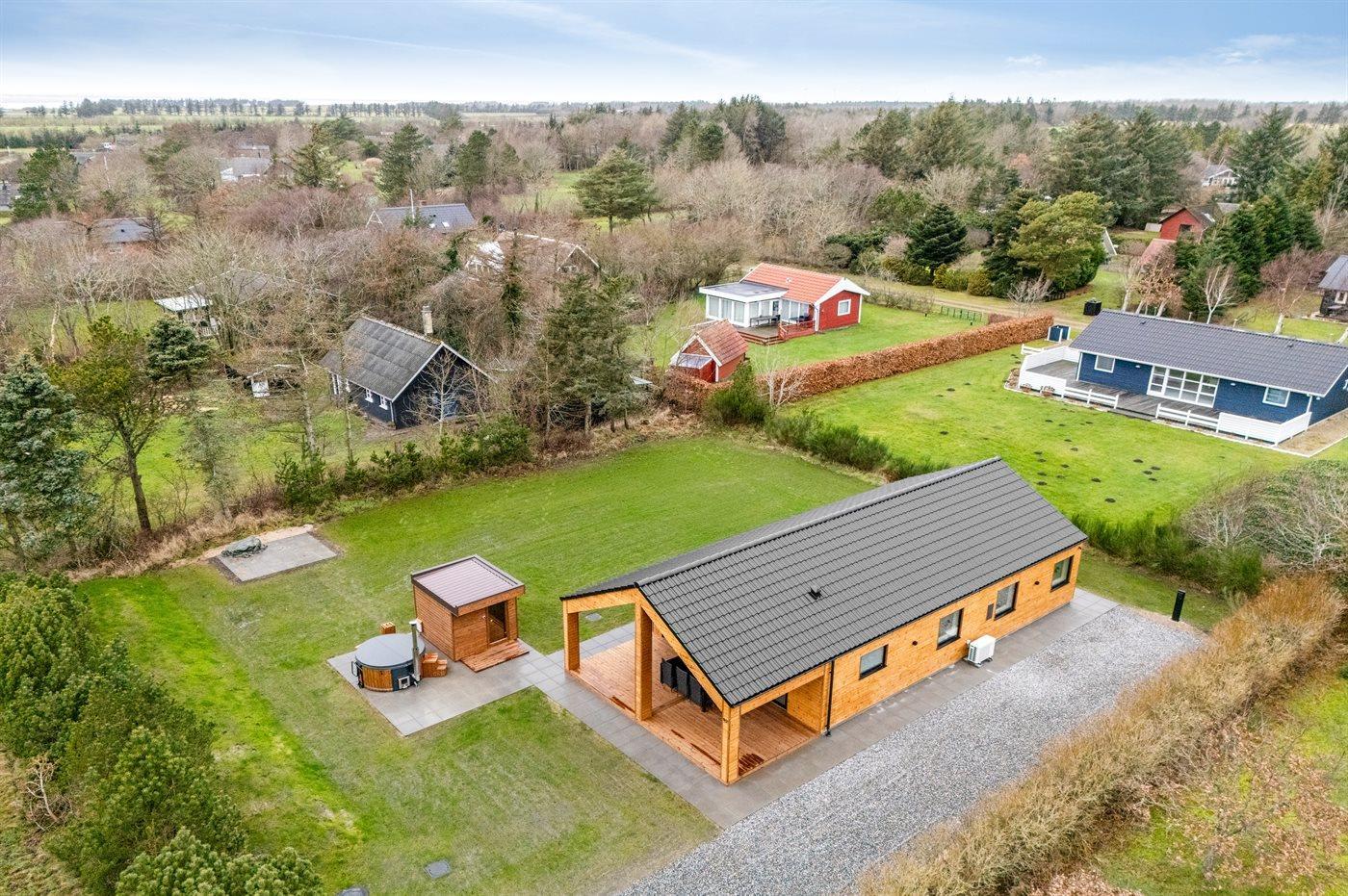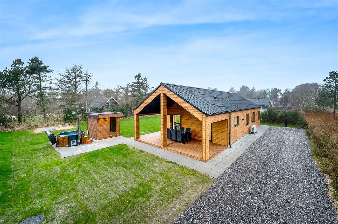 Nyd en fantastisk ferie i et moderne sommerhus beliggende på en lukket grund og udstyret med både vildmarksbad og saunatønde.