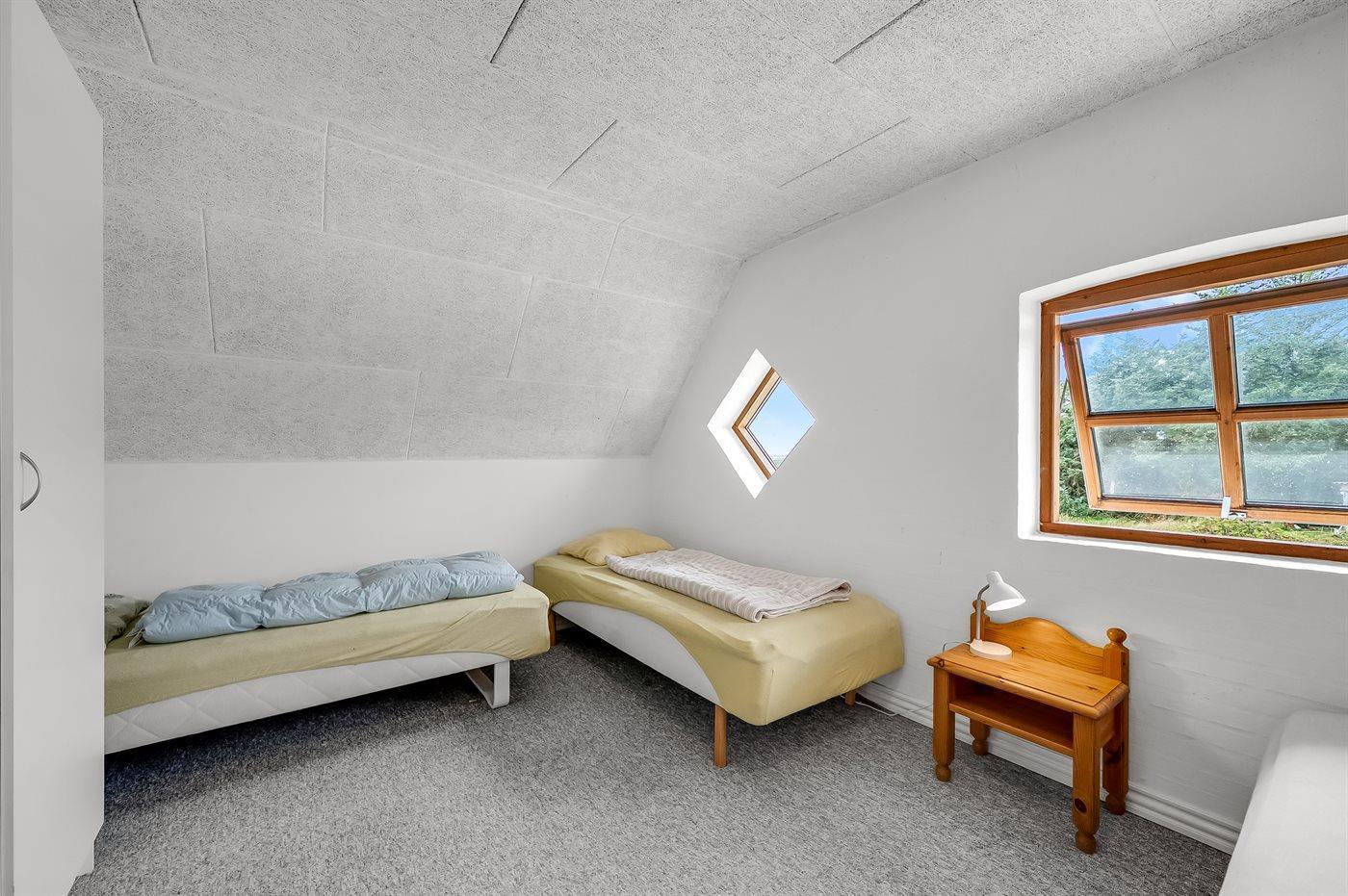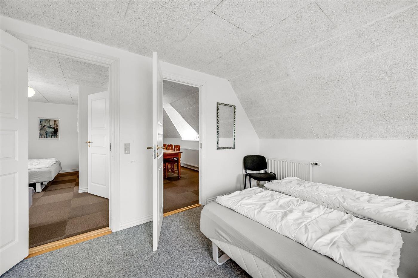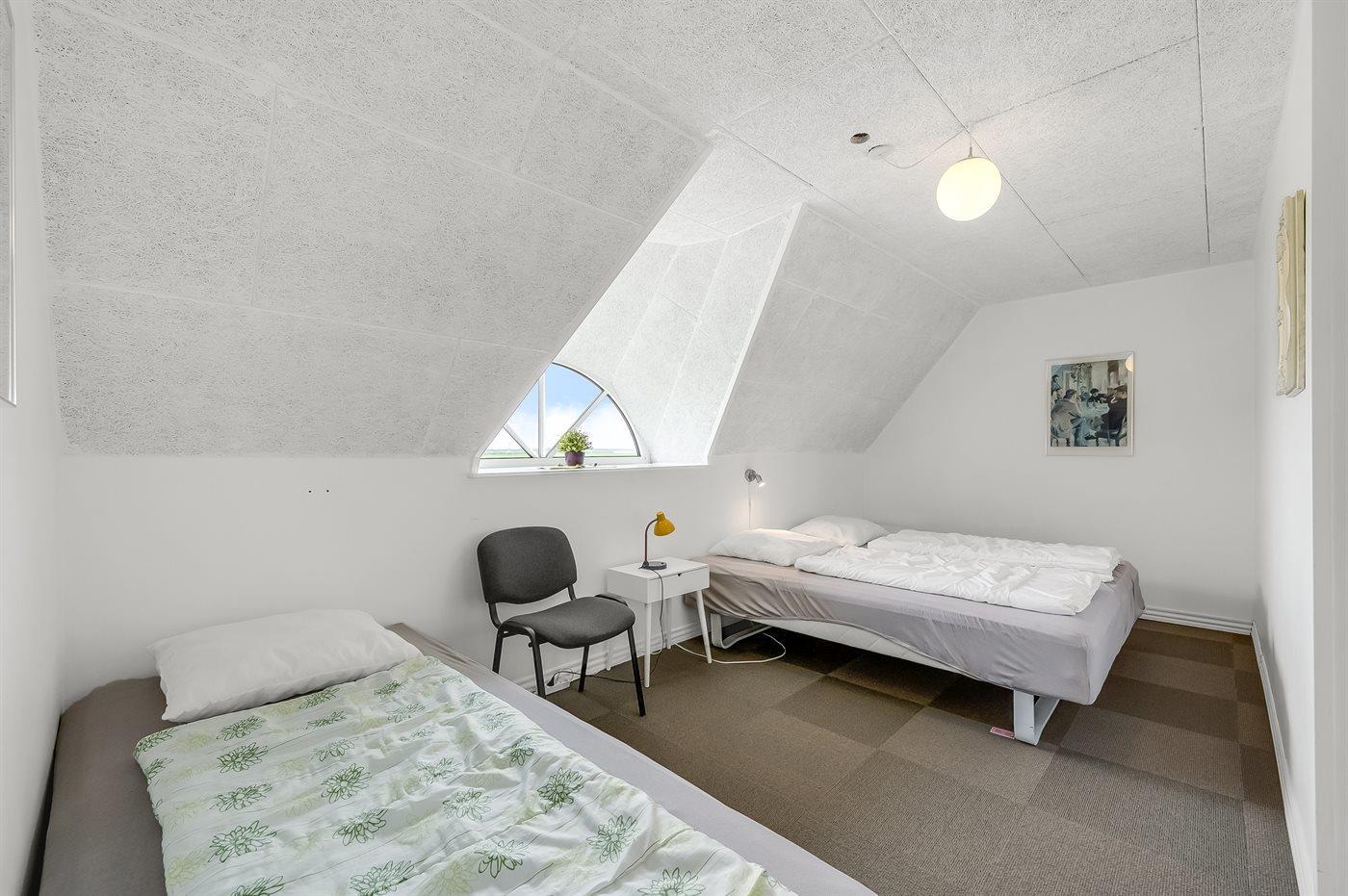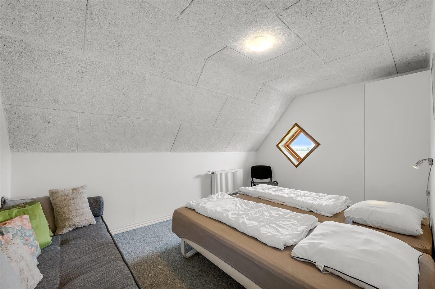 Der er i alt 10 soveværelser. Sovepladserne fordeler sig på: 8 sovepladser i dobbeltsenge. 14 sovepladser i enkeltsenge. Derudover er der 1 stk. barneseng.