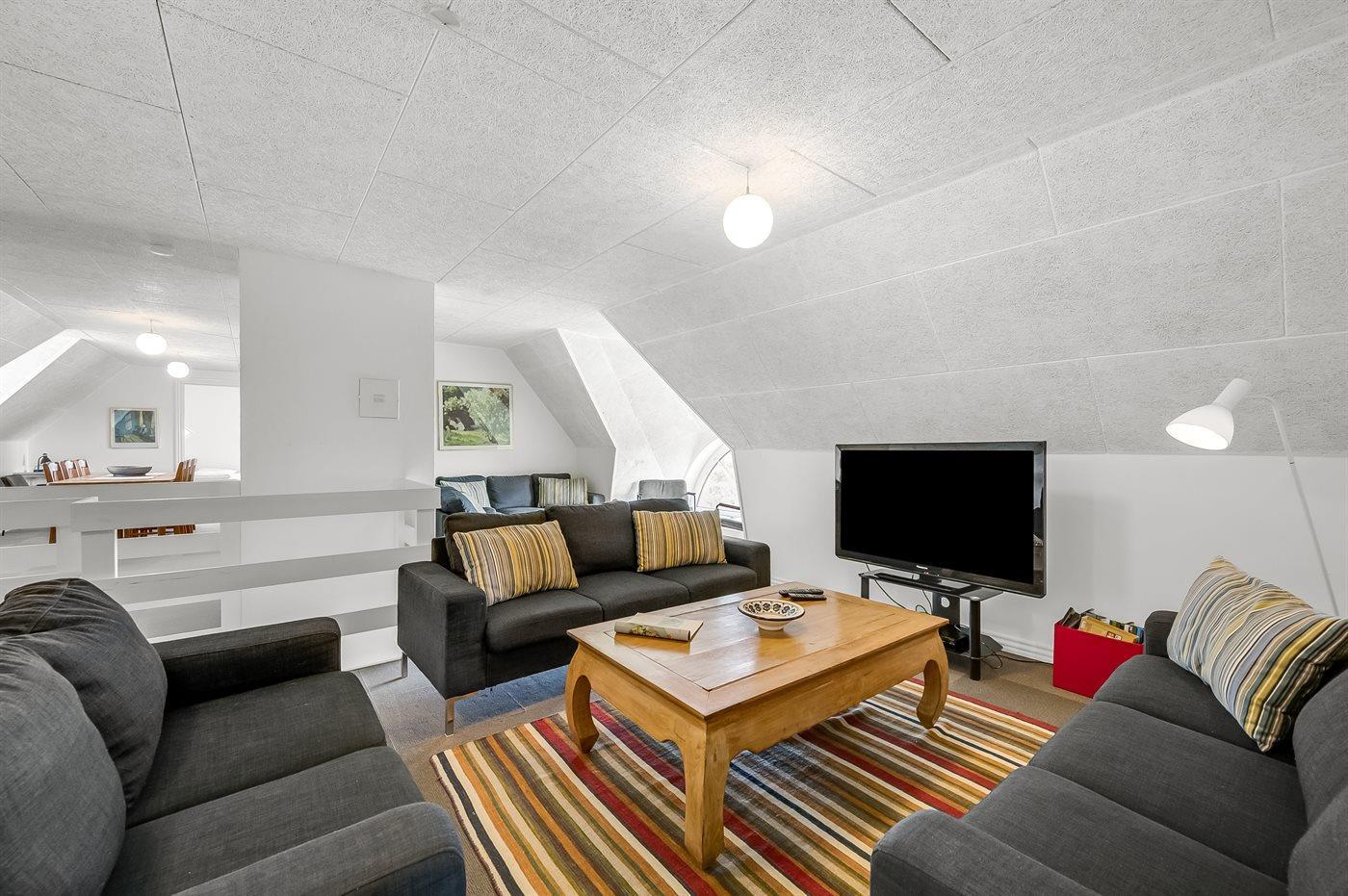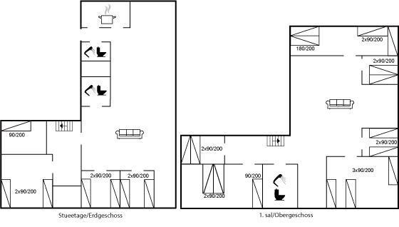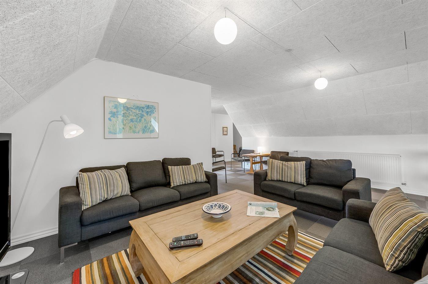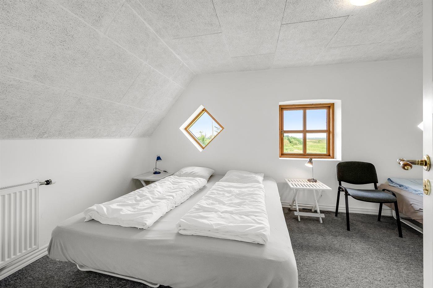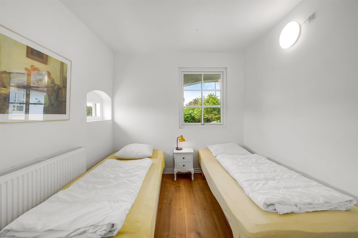 Der er i alt 10 soveværelser. Sovepladserne fordeler sig på: 8 sovepladser i dobbeltsenge. 14 sovepladser i enkeltsenge. Derudover er der 1 stk. barneseng.