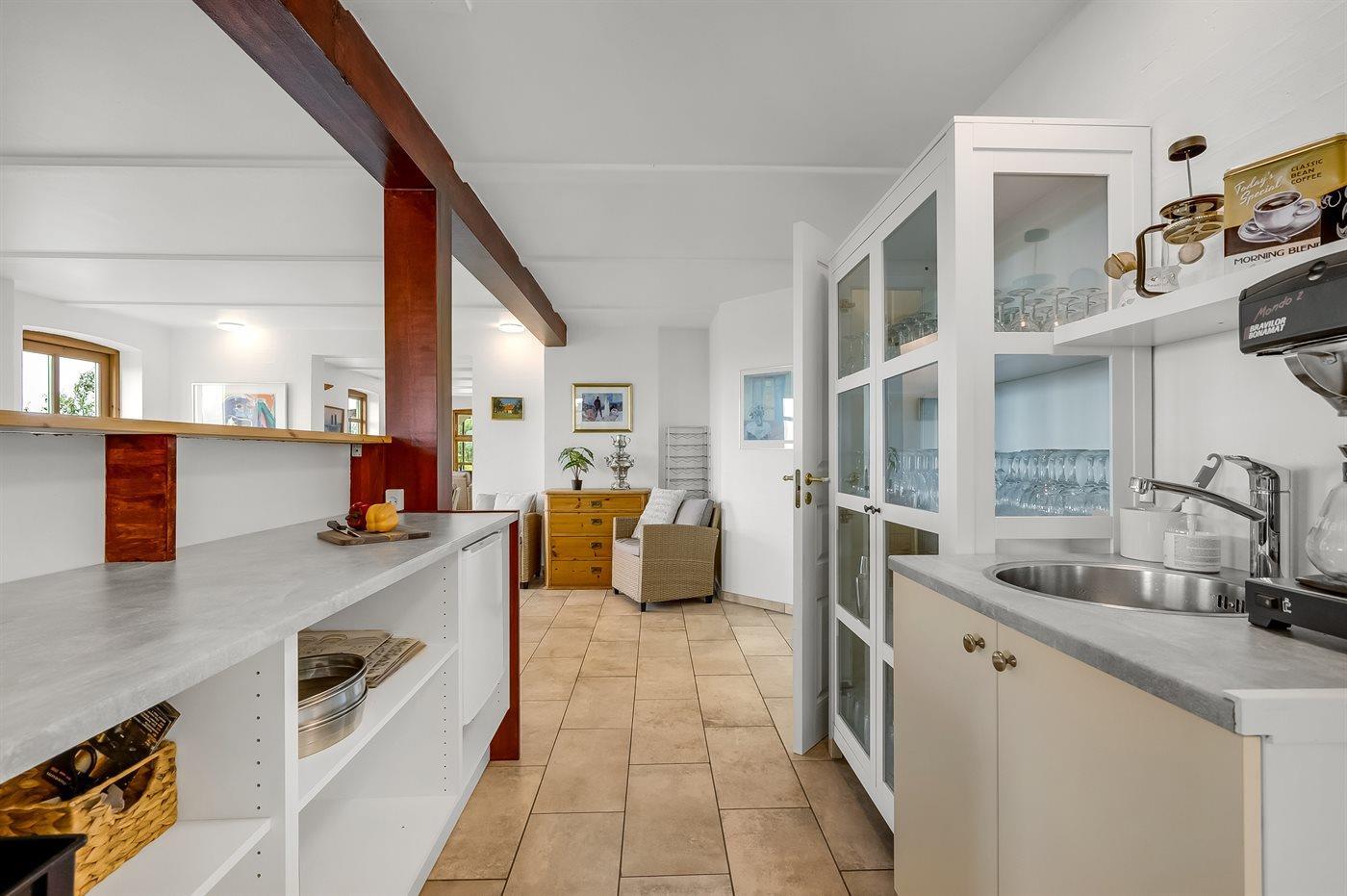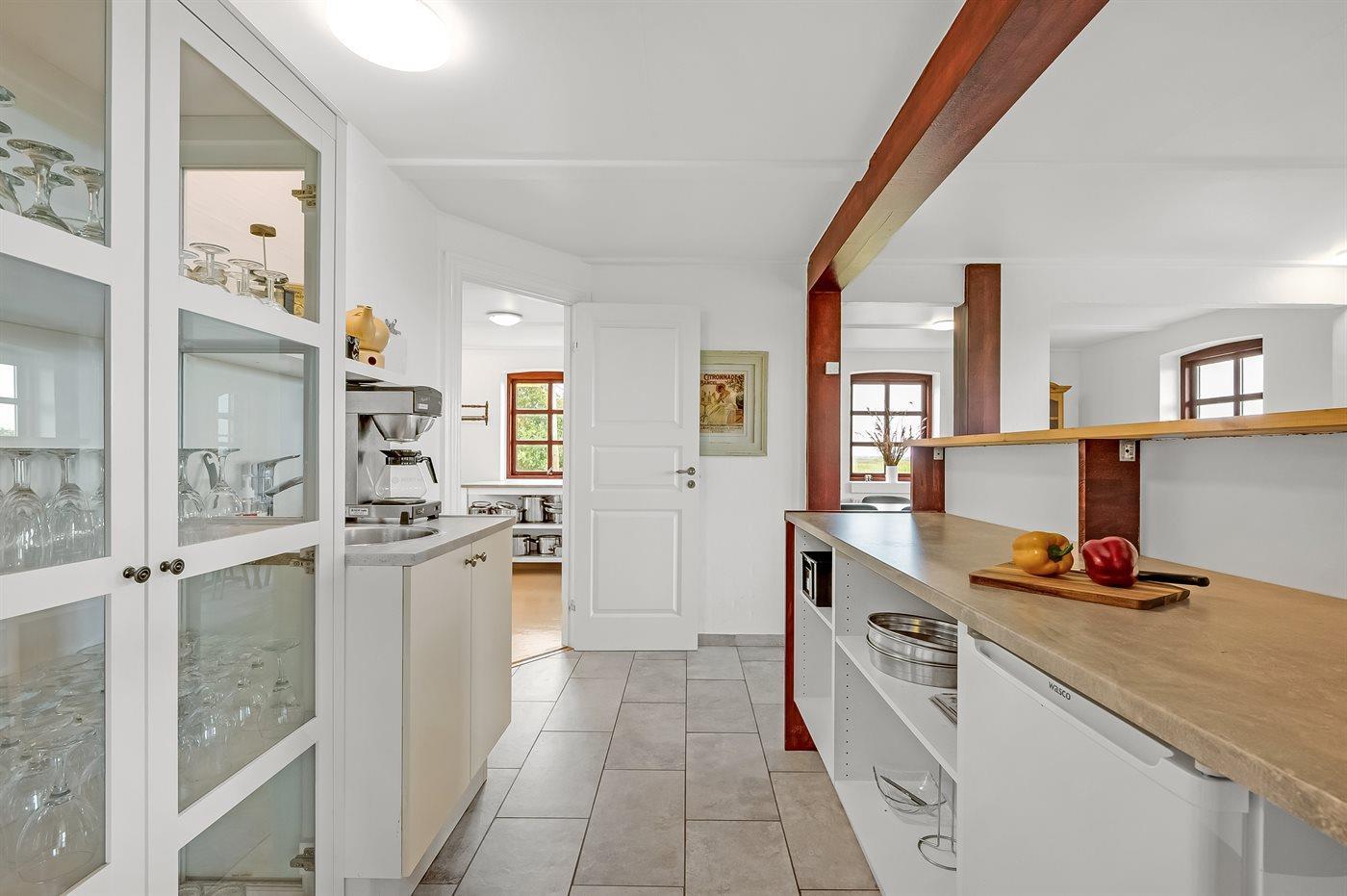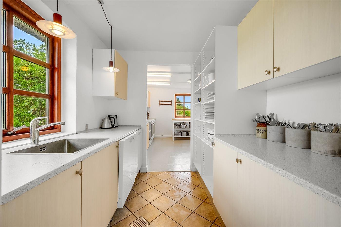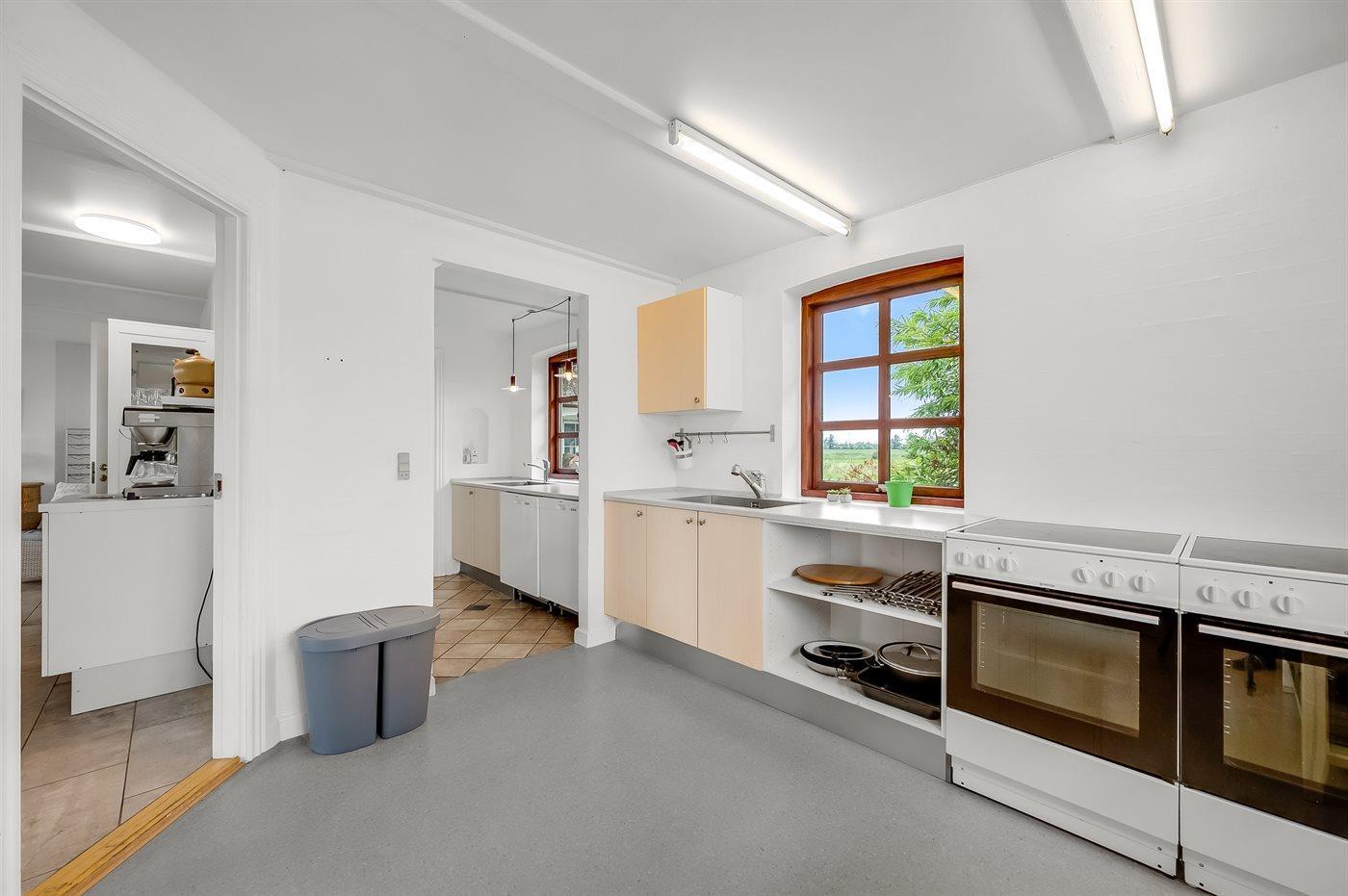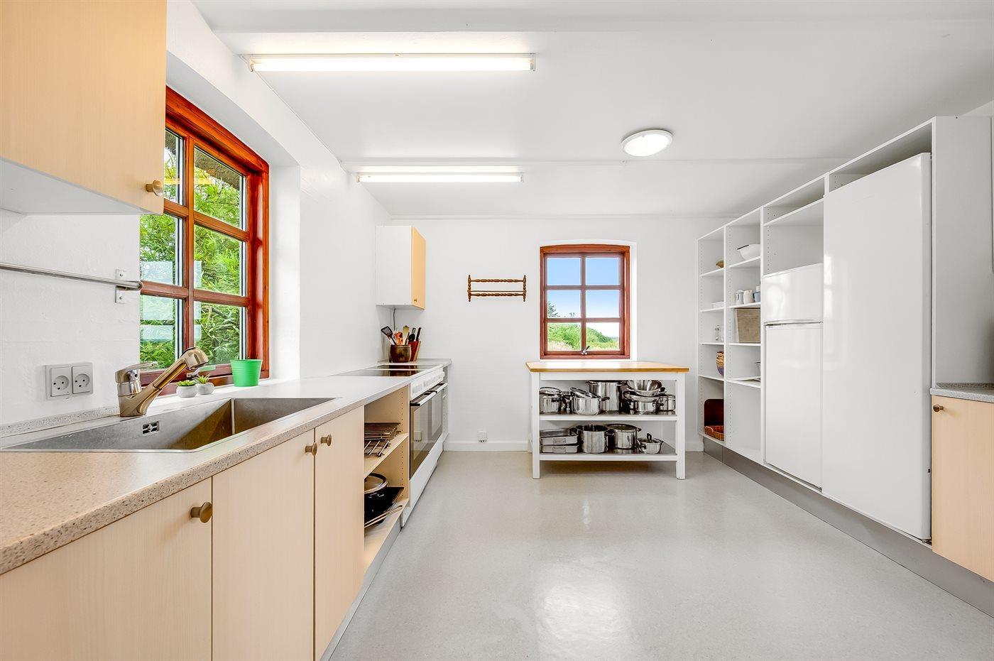 Køkkenet er udstyret med 2 køleskabe. Der er 8 keramiske kogeplader, 2 varmluftovne, mikrobølgeovn samt 2 opvaskemaskiner.