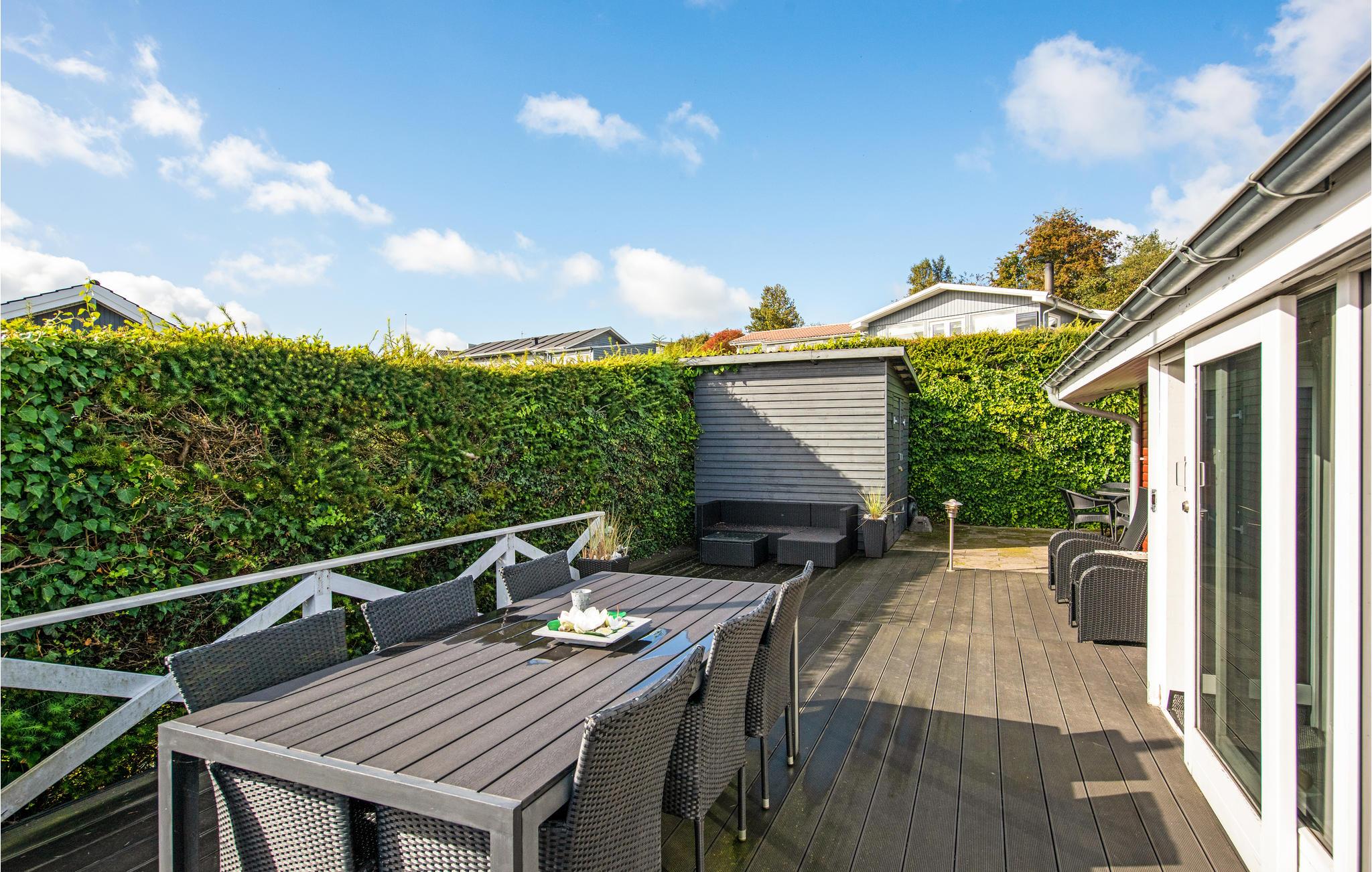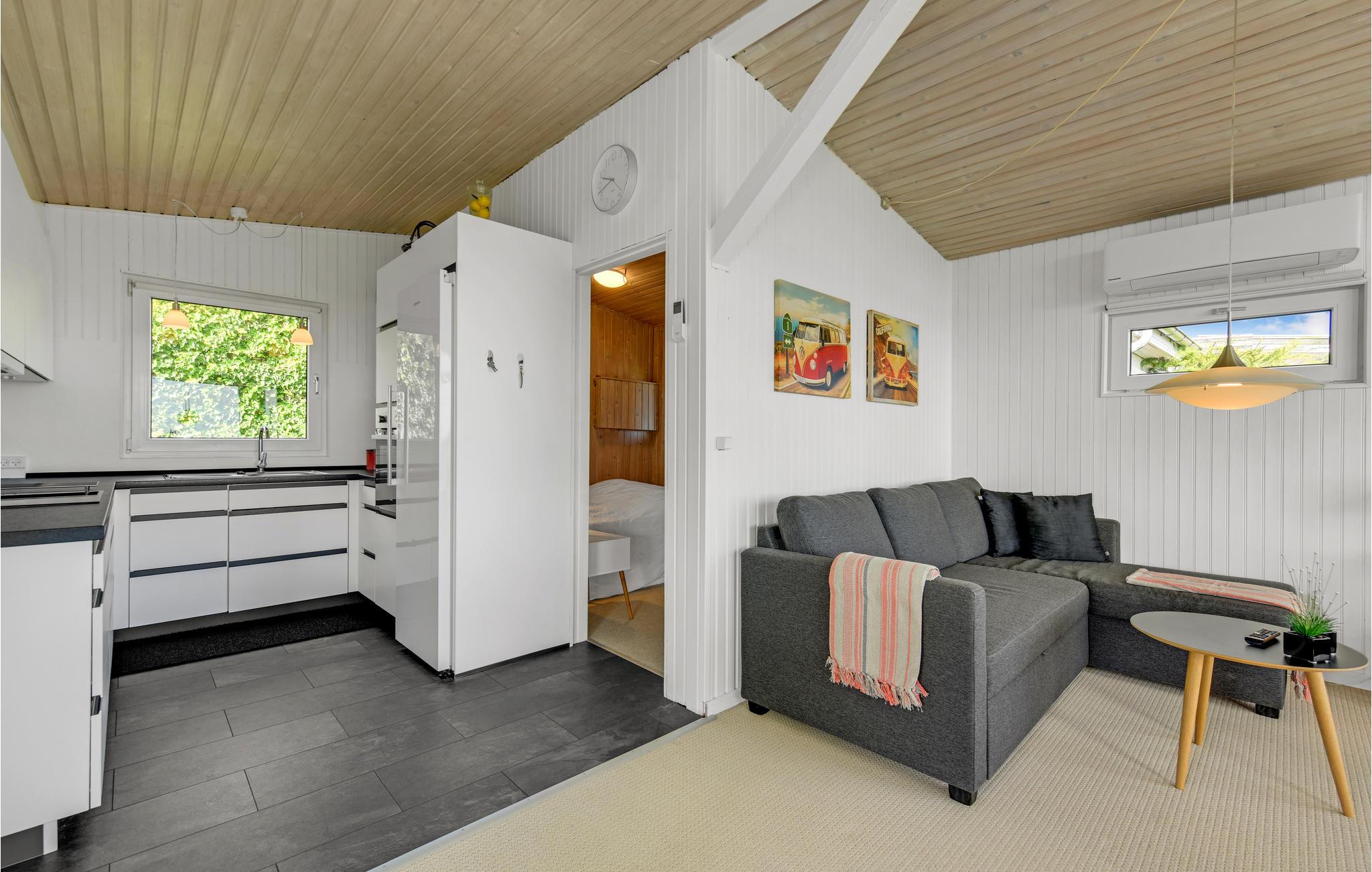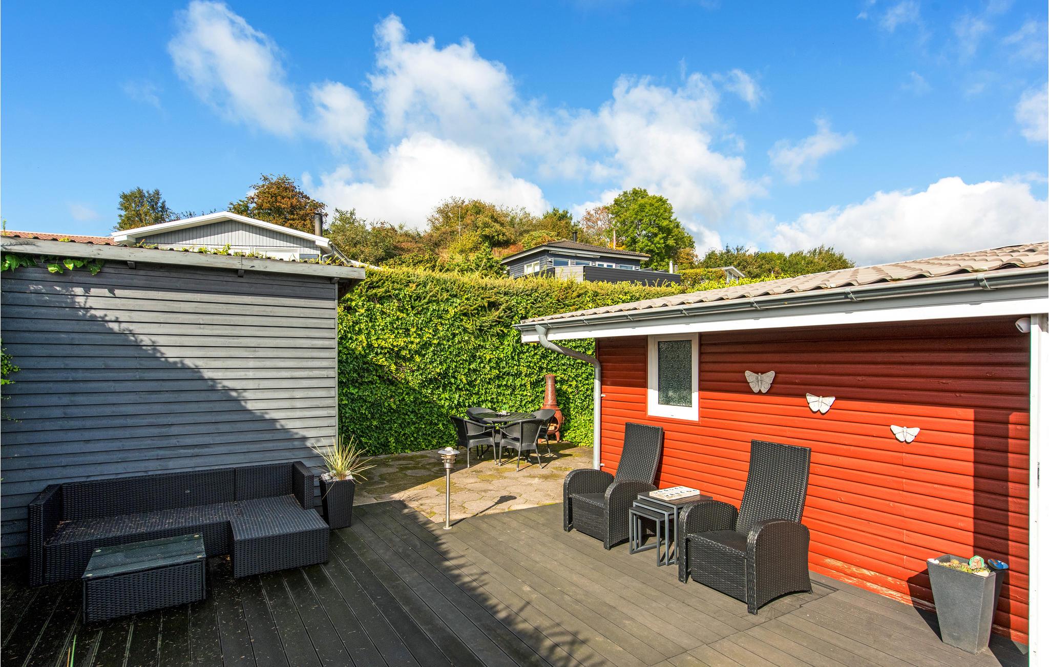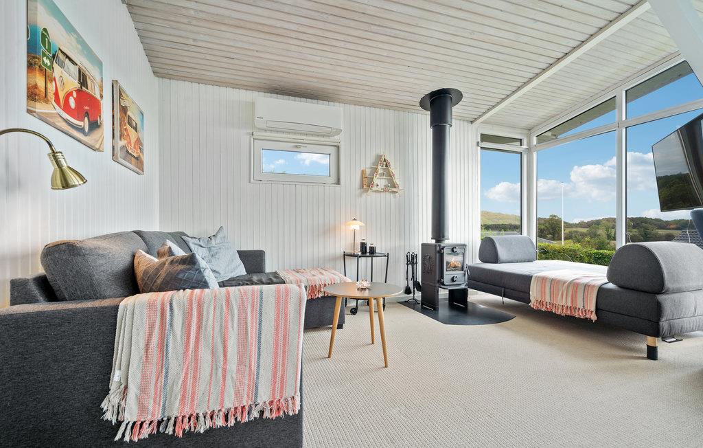 Det kompakte sommerhus giver jer en skøn ramme om en familieferie ved Skarrev Strand. De store vinduespartier sørger for masser af lys og den flotteste udsigt til naturen og fjorden, så her får I en fornem plads til dagens måltider. Der er flere skønne terrassearealer udendørs, hvor I kan nyde en læsepause, dagdrømme eller tage en kop kaffe, mens børnene leger.