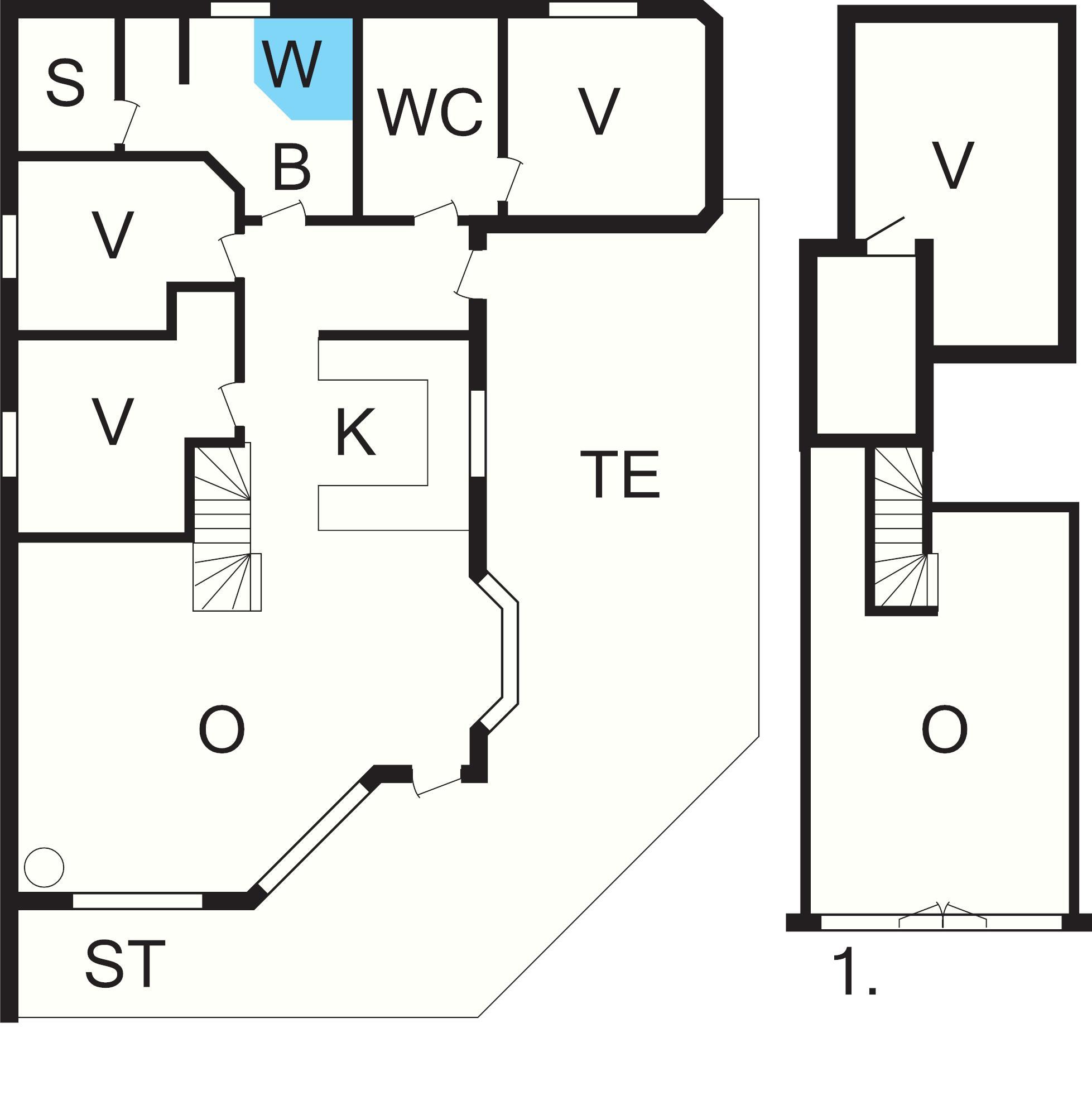 1 Opholdsstue: Brændeovn, stereoradio, tv, parabol