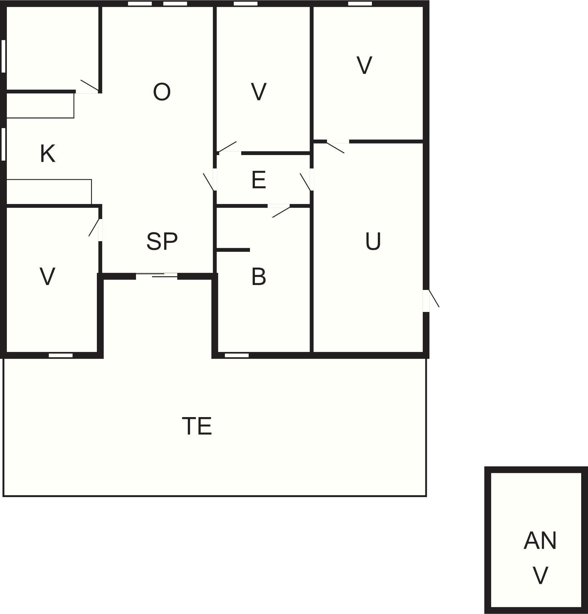 3 Soveværelser: (1DS)+(1DS)+(2S), barneseng