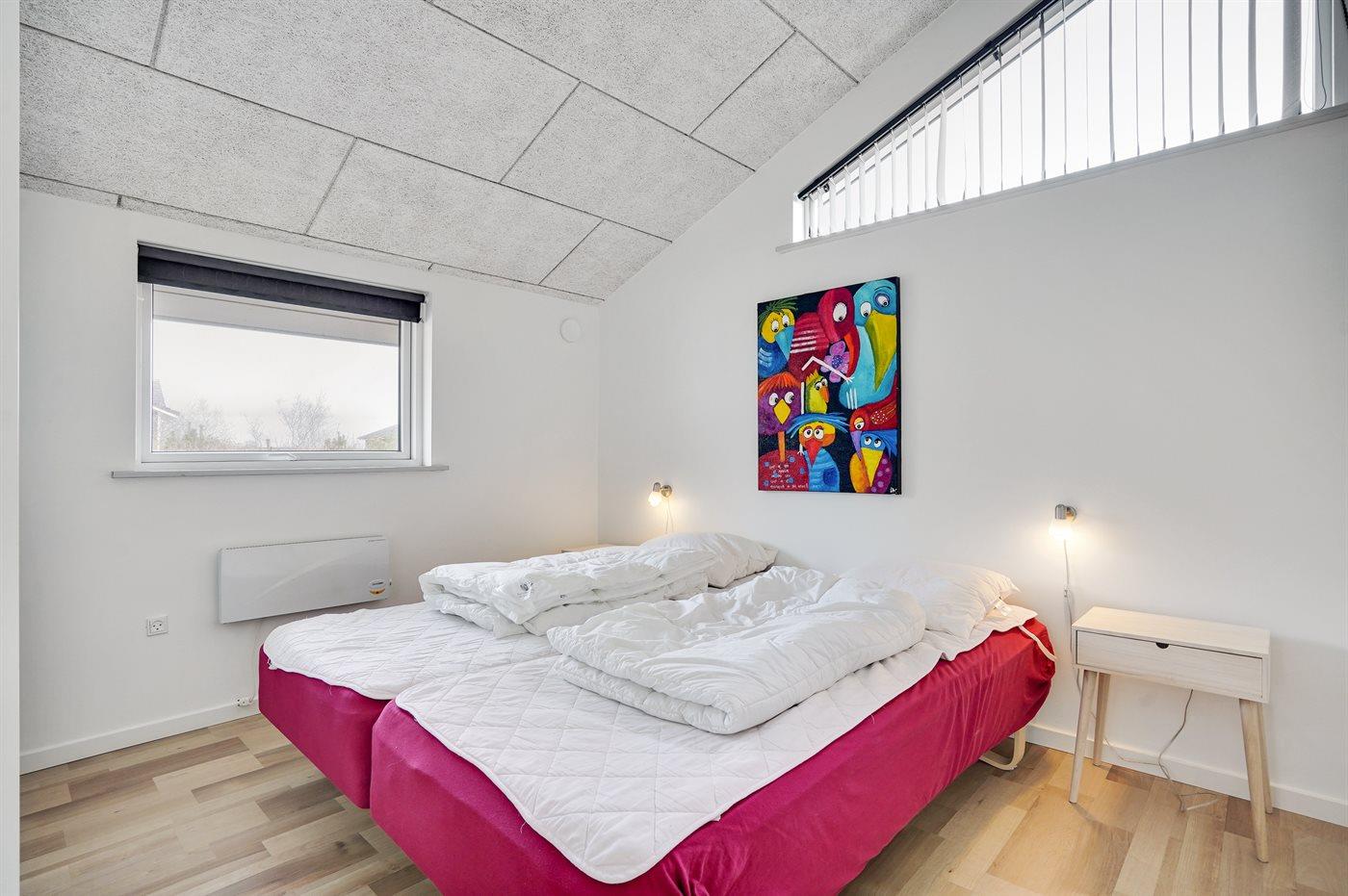 Der er i alt 4 soveværelser. Sovepladserne fordeler sig på: 6 sovepladser i dobbeltsenge. 2 sovepladser i enkeltsenge. Derudover er der 1 stk. barneseng.