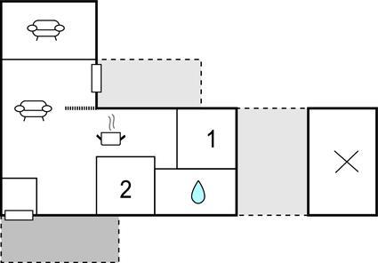 Opholdsstue/køkken - 2 Sovepladser. (Dobbeltseng(e)).