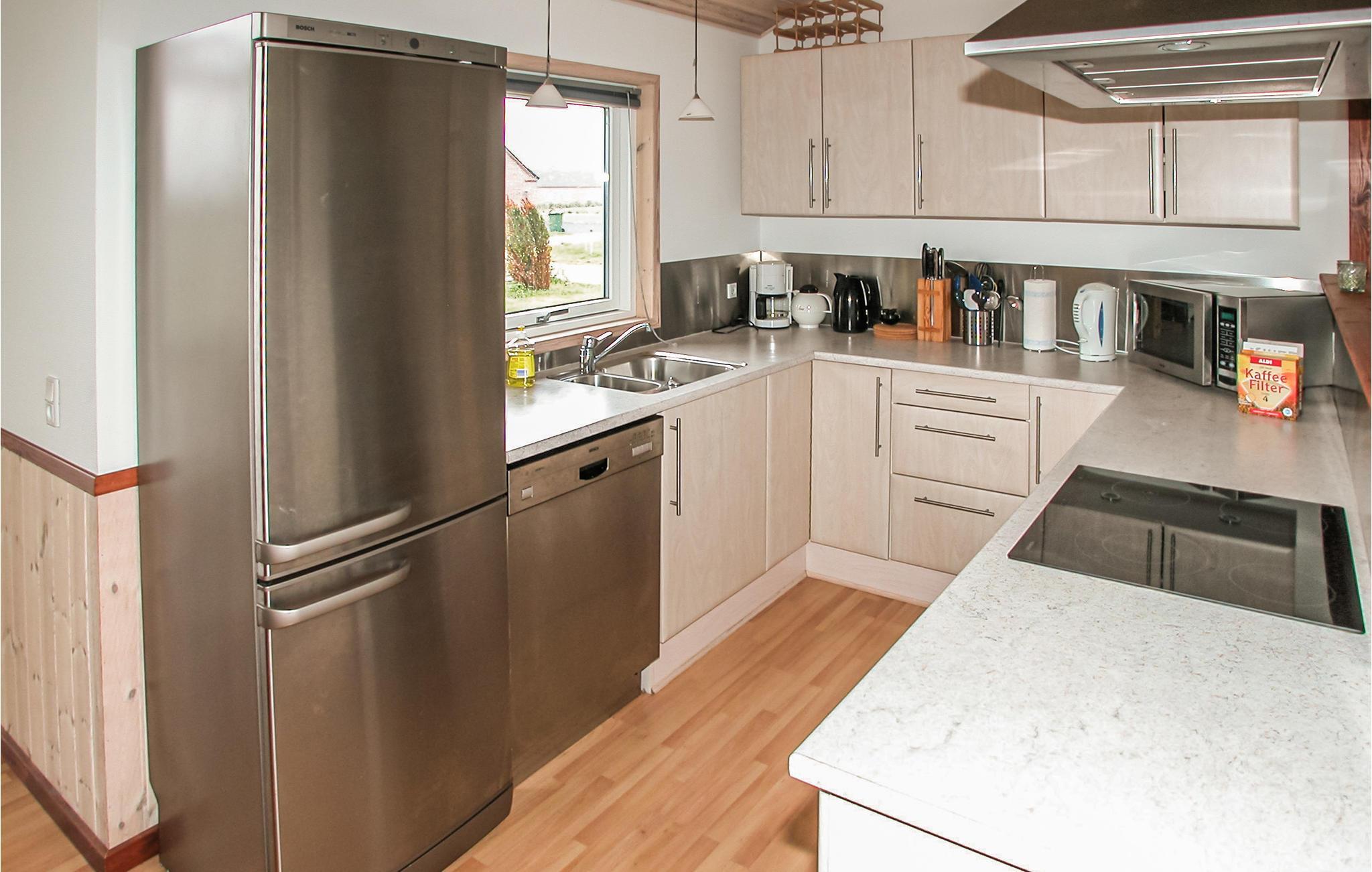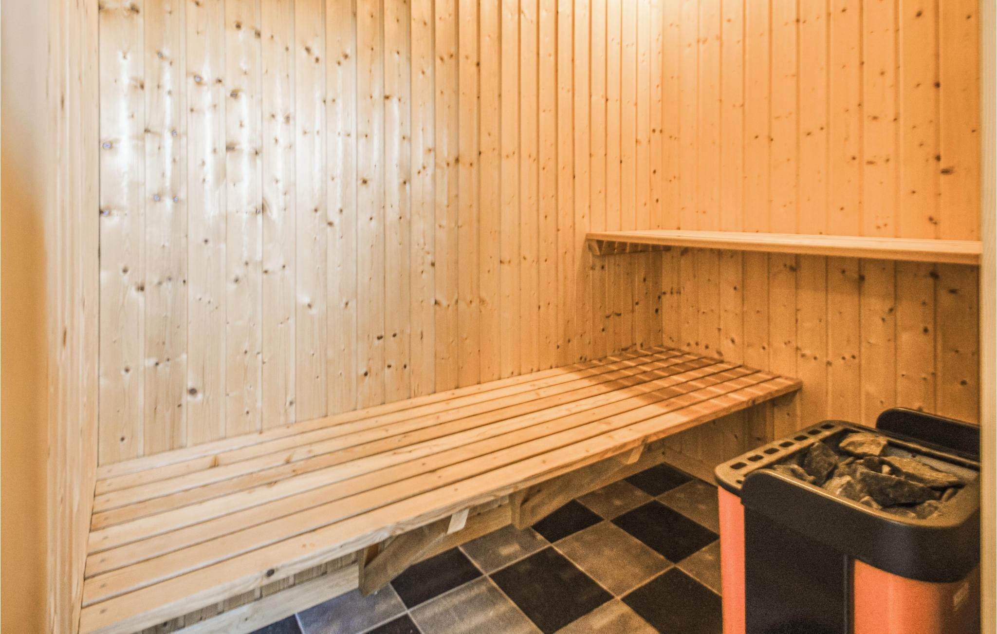 Dette komfortable og rummelige feriehus venter på jer i kort afstand fra stranden. De hyggelige værelser med deres varme trædetaljer tilbyder rigelig plads til en afslappende familieferie. Sæt jer til rette i saunaen og spabadet, og efter en begivenhedsrig dag kan I finde jer selv til rette i opholdsstuen, hvor I kan streame en god serie, lave mad sammen eller blot slappe af ved brændeovnen.