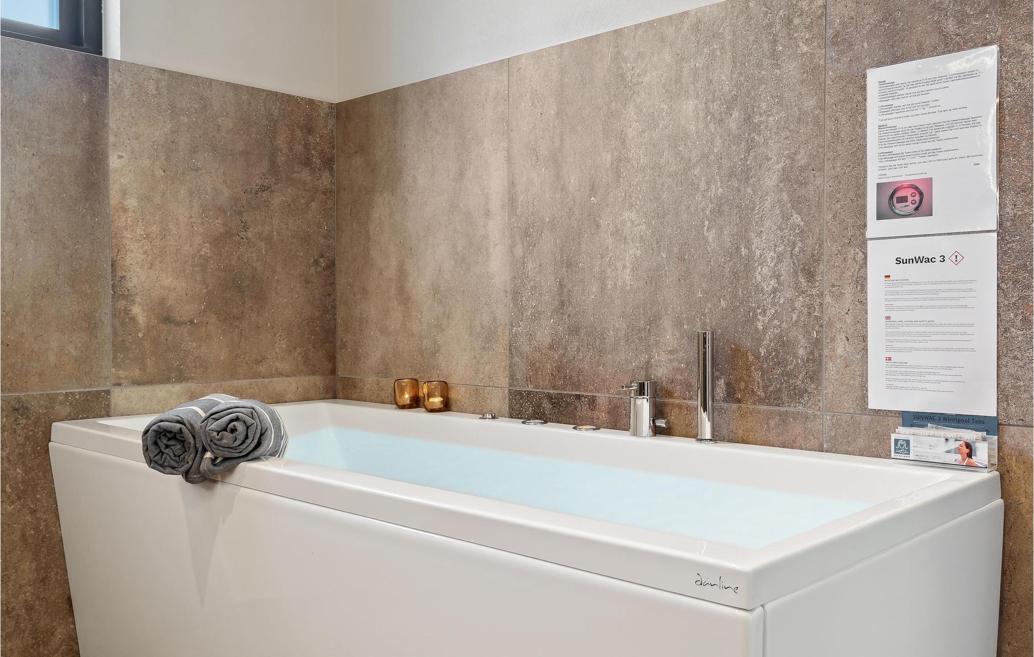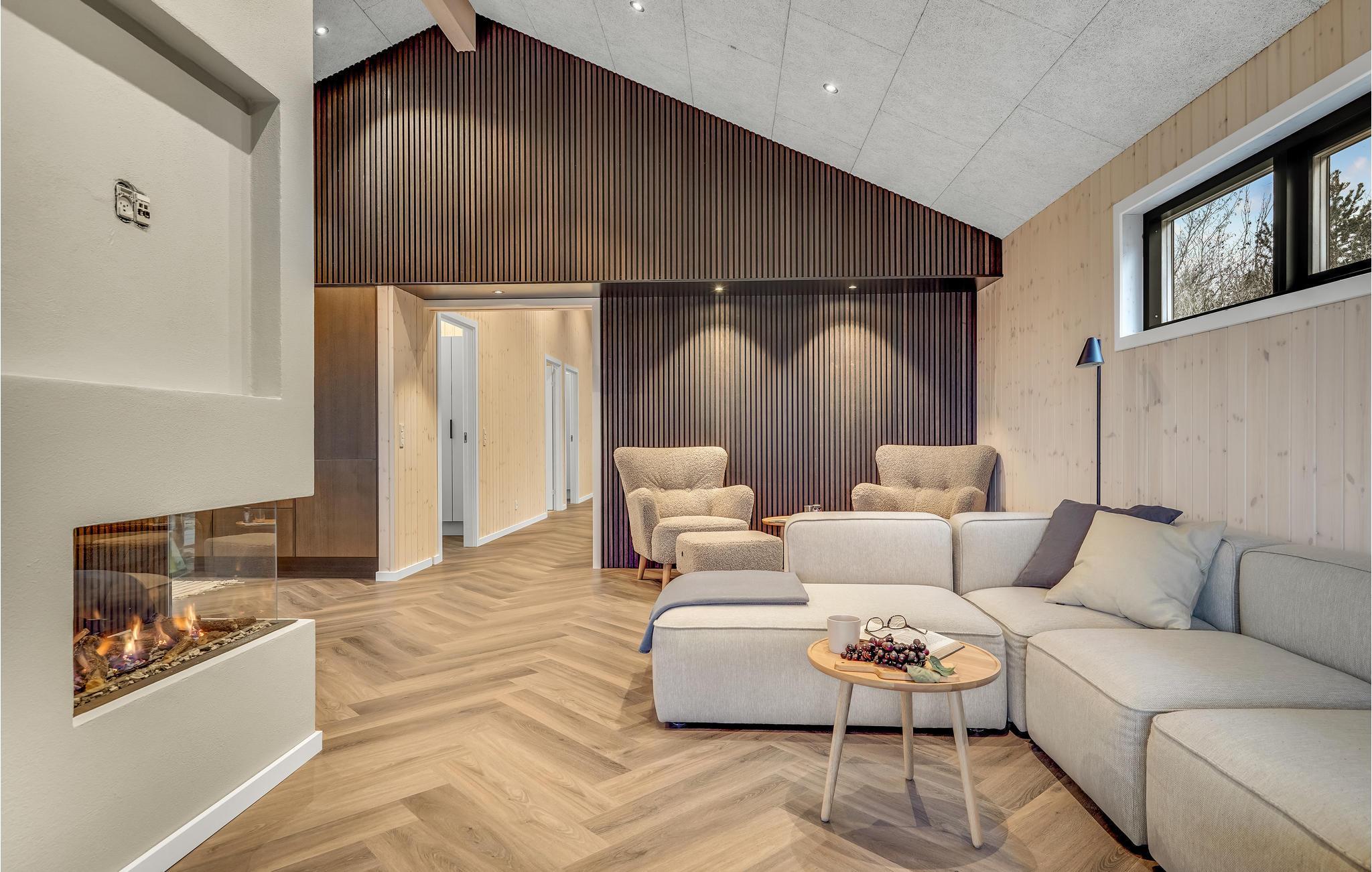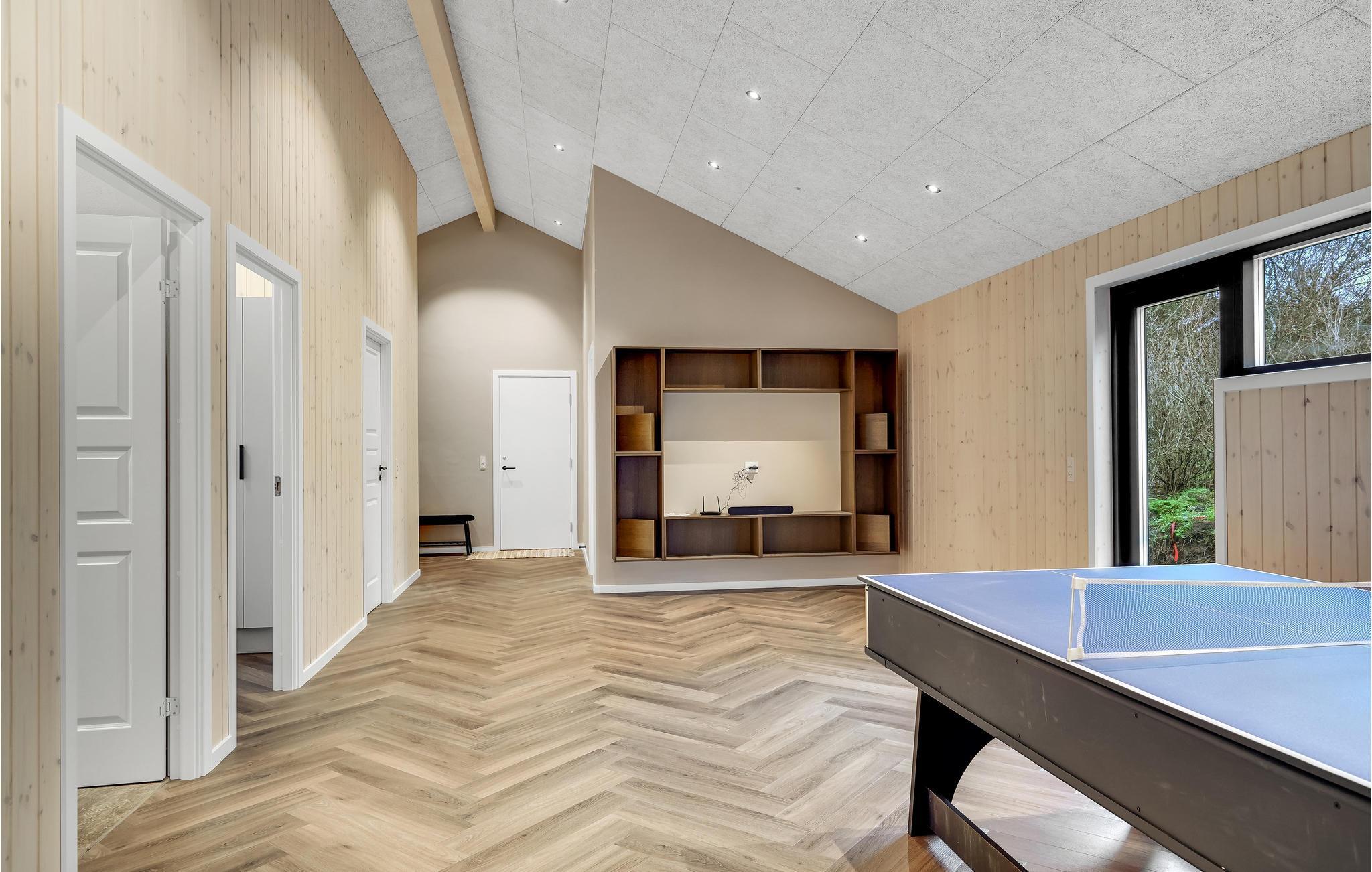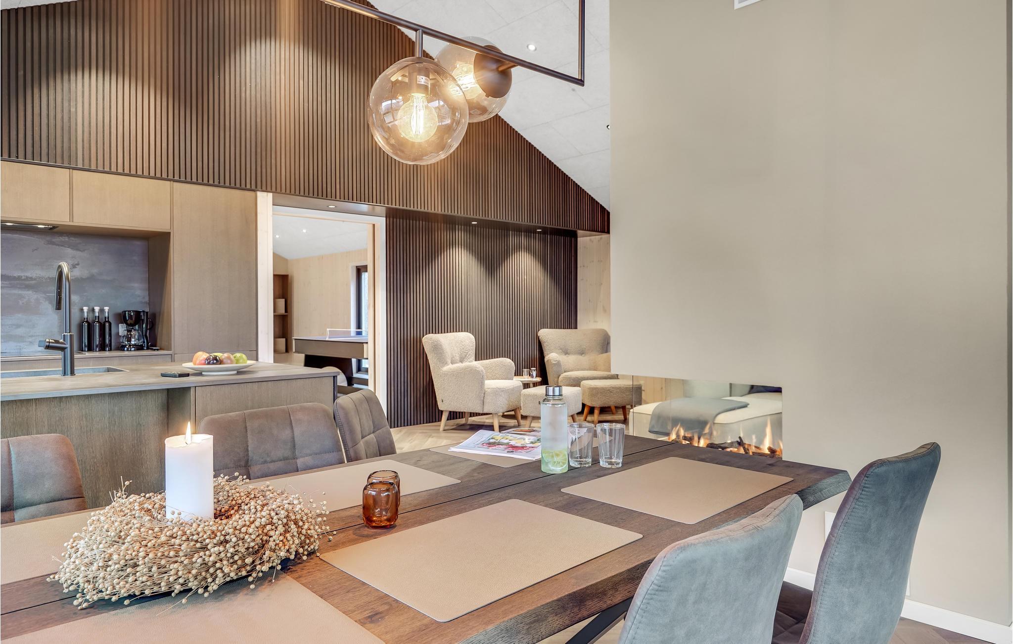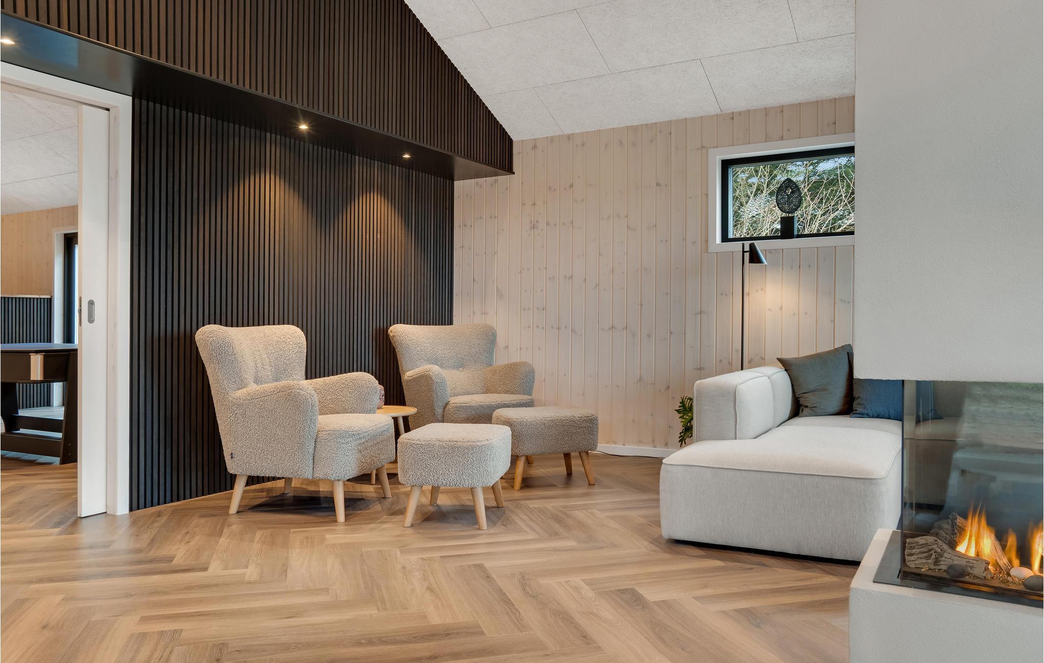 Huset ligger kun en kort lille gåtur fra Ringkøbing Fjord, og der er kælet for hver en detalje i indretningen. Glem alt om den travle hverdag og nyd de helt særlige rammer både ude og inde. Læn jer tilbage med et glas vin i sofaen og nyd udsigten til landskabet gennem det store panoramavindue, som virker meget beroligende. Når I er klar til at spise, er det til samme vidunderlige udsigt, så her kan I give jer god tid til at sidde og snakke længe efter. Vil I skrue ekstra op for forkælelsen oven på en lang dag i naturen, kan I sætte jer til rette i saunaen eller spabadet, hvis I ikke hellere vil blive i stuen og nyde varmen fra brændeovnen.