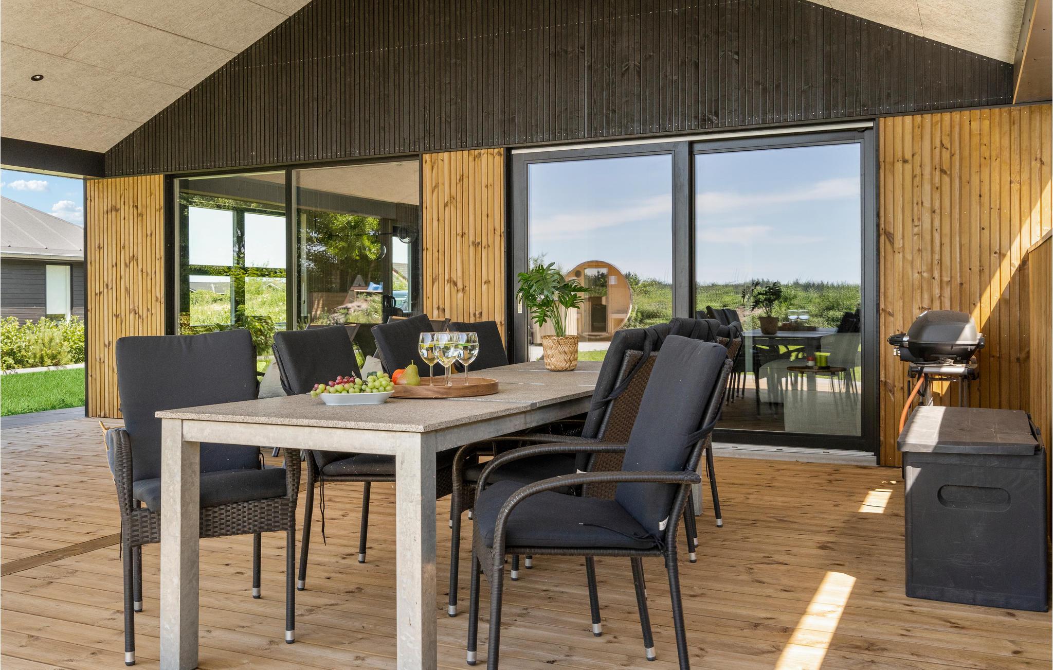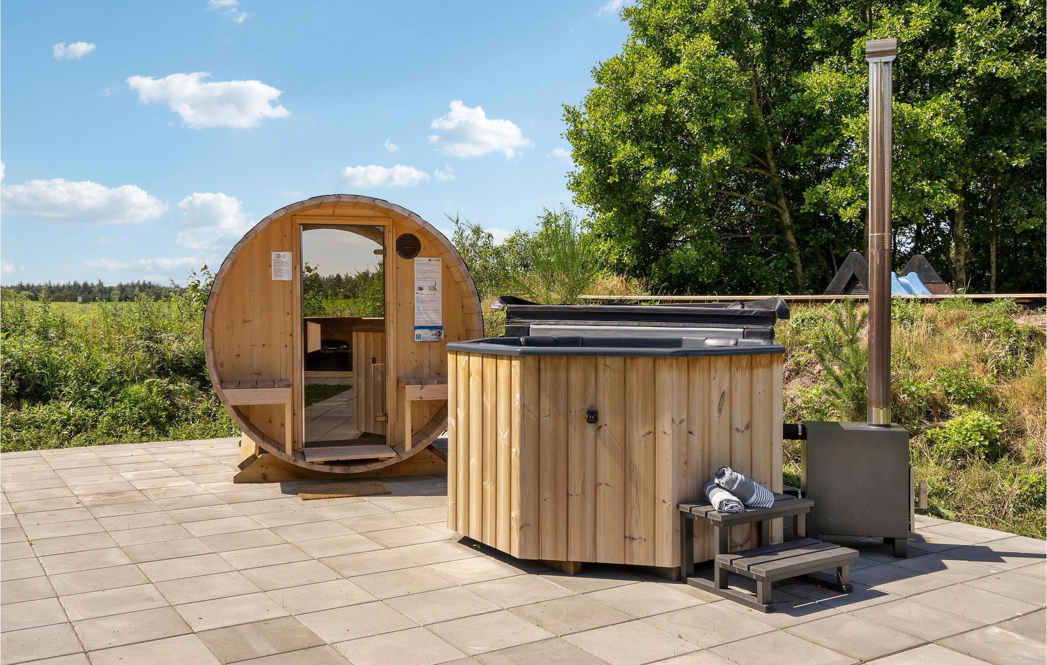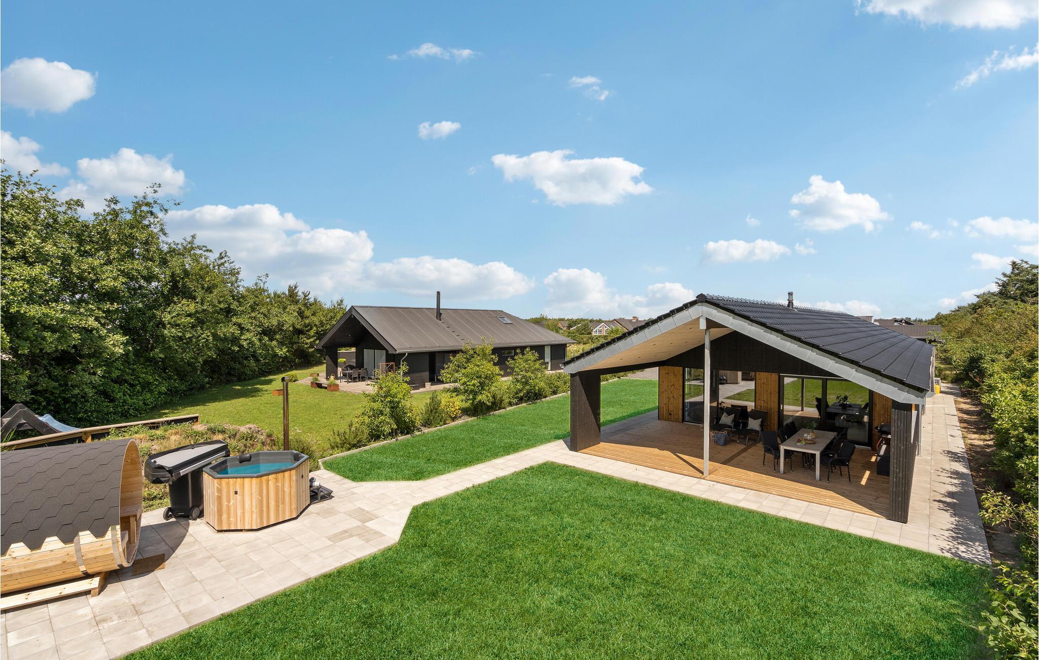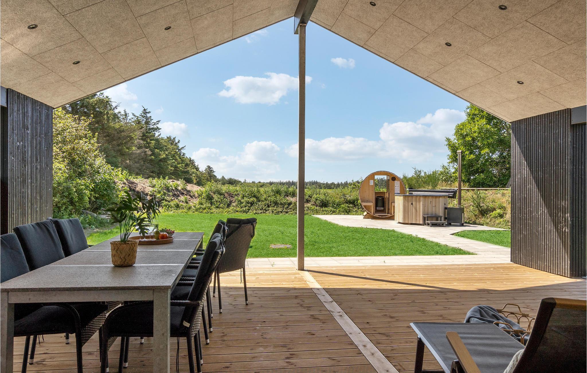 Lækkert feriehus nær Ringkøbing Fjord med sauna, spabad og stor terrasse til afslapning og aktiviteter.