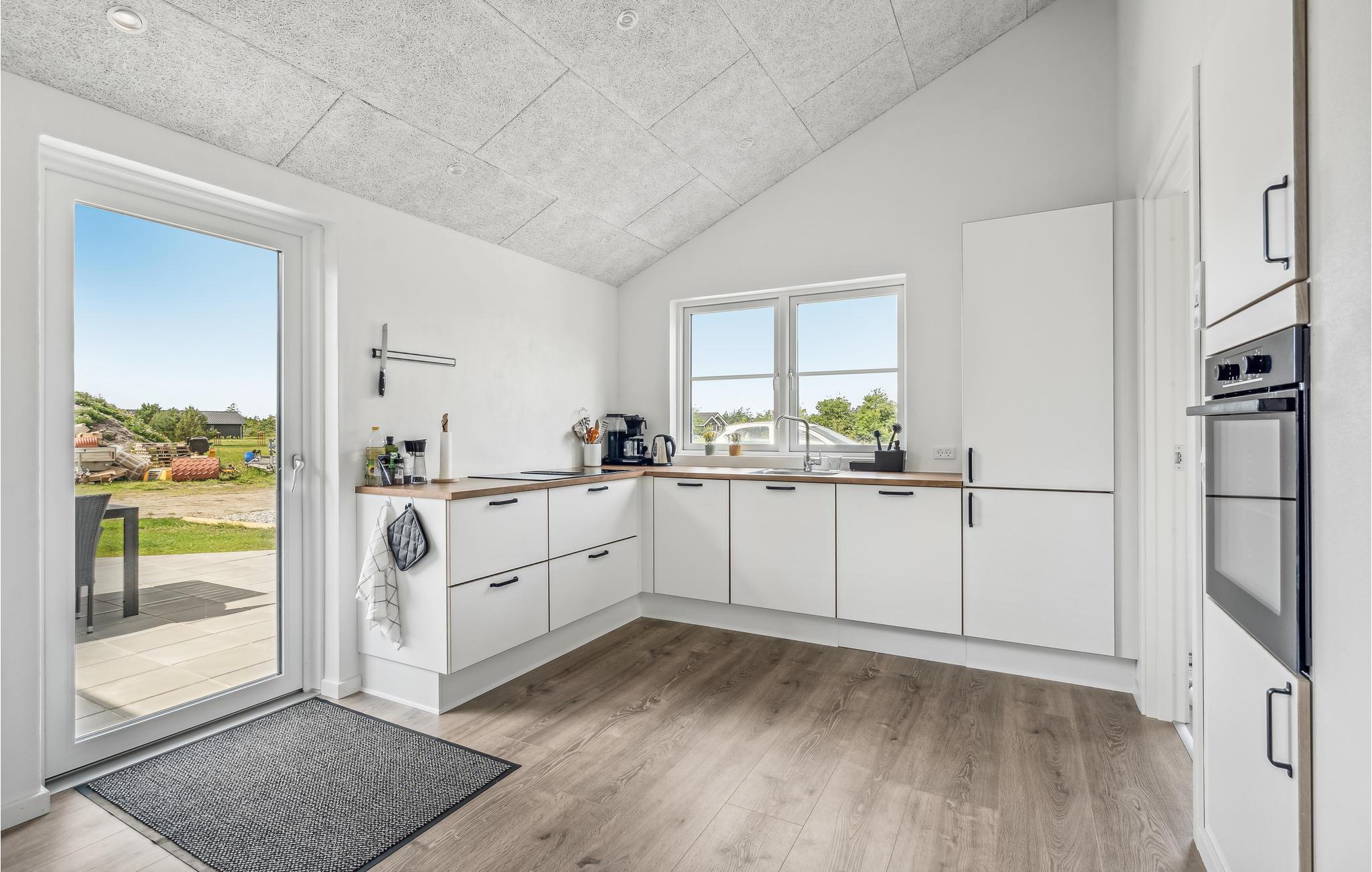 Dette skønne feriehus er helt perfekt til en familieferie ved Ringkøbing Fjord. Her kan I fylde dagene med lange gåture ved vandet og vende hjem til det hyggelige hus, hvor I kan få varmen tilbage i kroppen i saunaen. Den åbne og lyse stue bliver det centrale mødested for familien. Her kan I hygge jer med alt fra madlavning til brætspil eller en god serie. Det er også skønt at sætte sig med en kop kaffe og lade blikket vandre ud over haven.