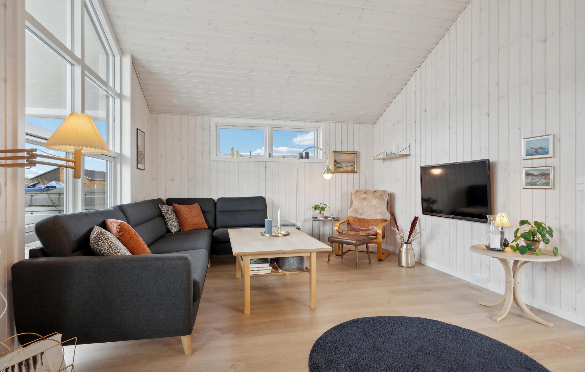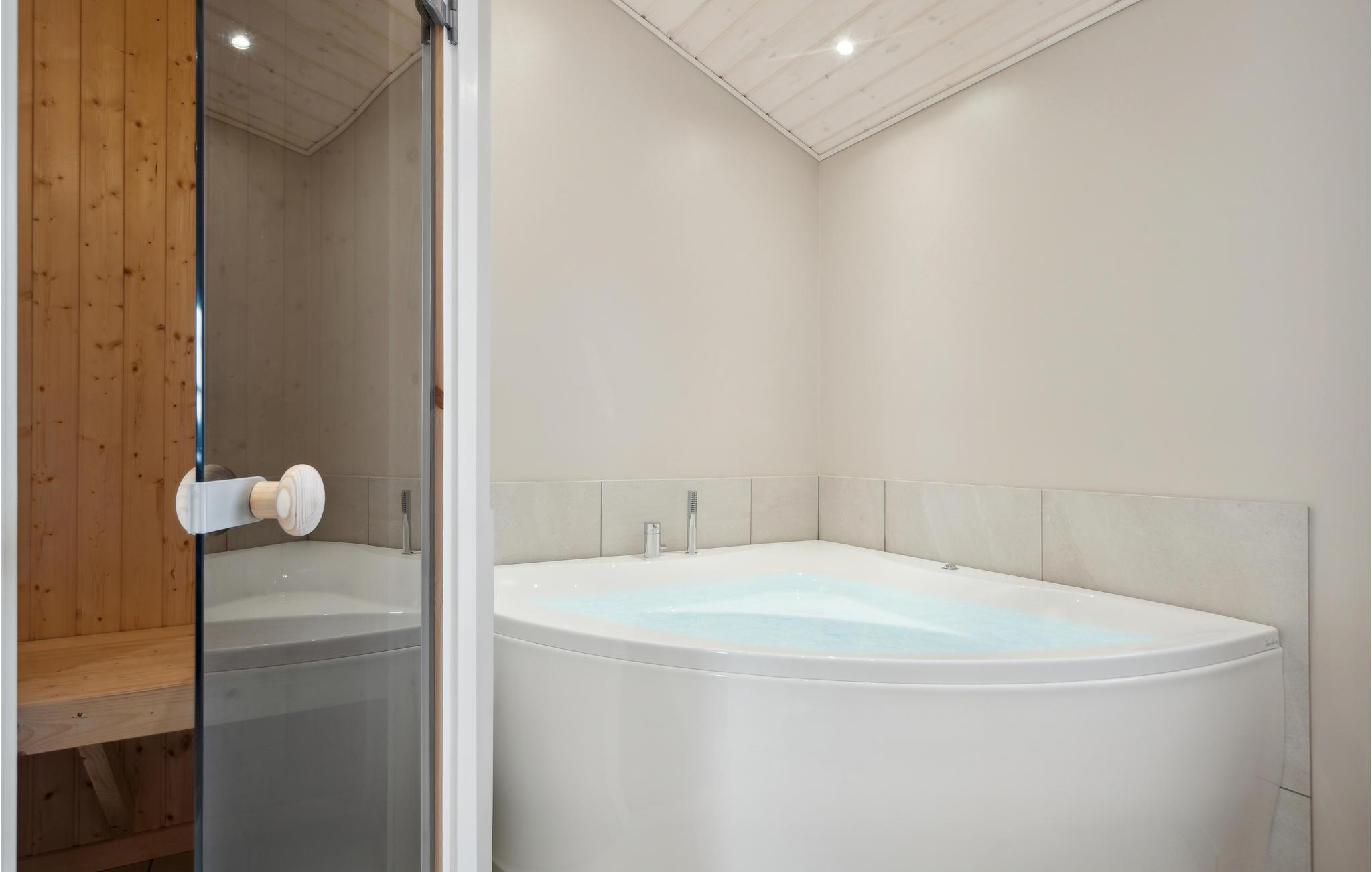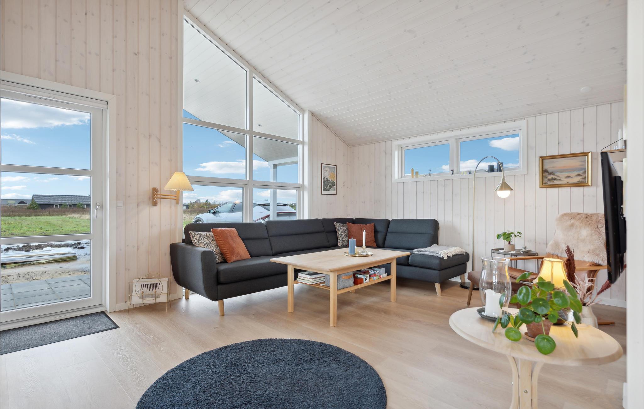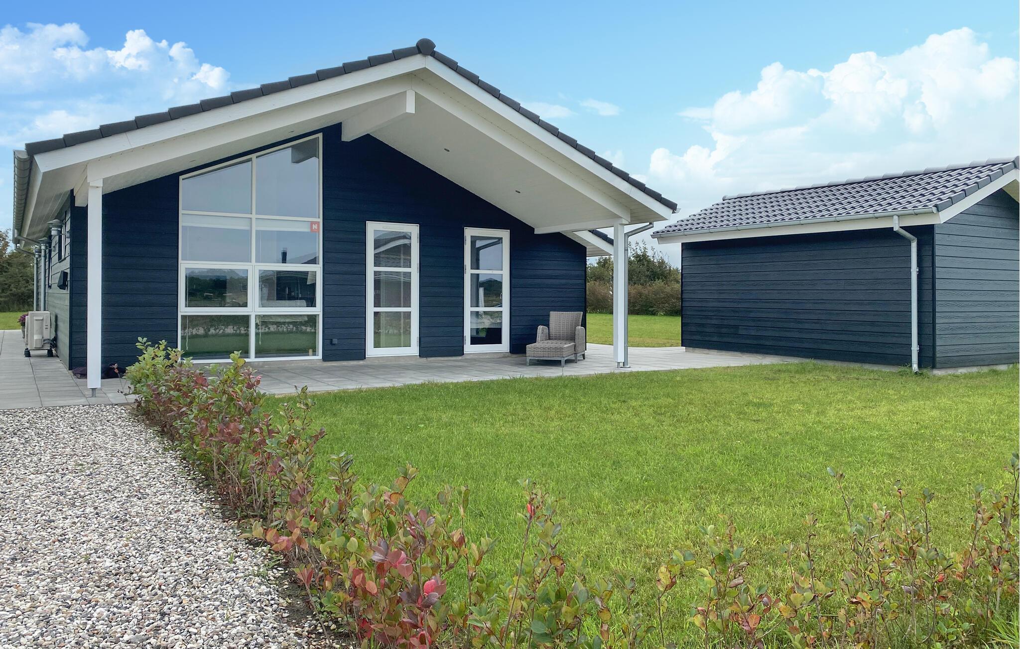 Moderne feriehus nær Skaven Strand med sauna, spabad og stor terrasse til afslapning.