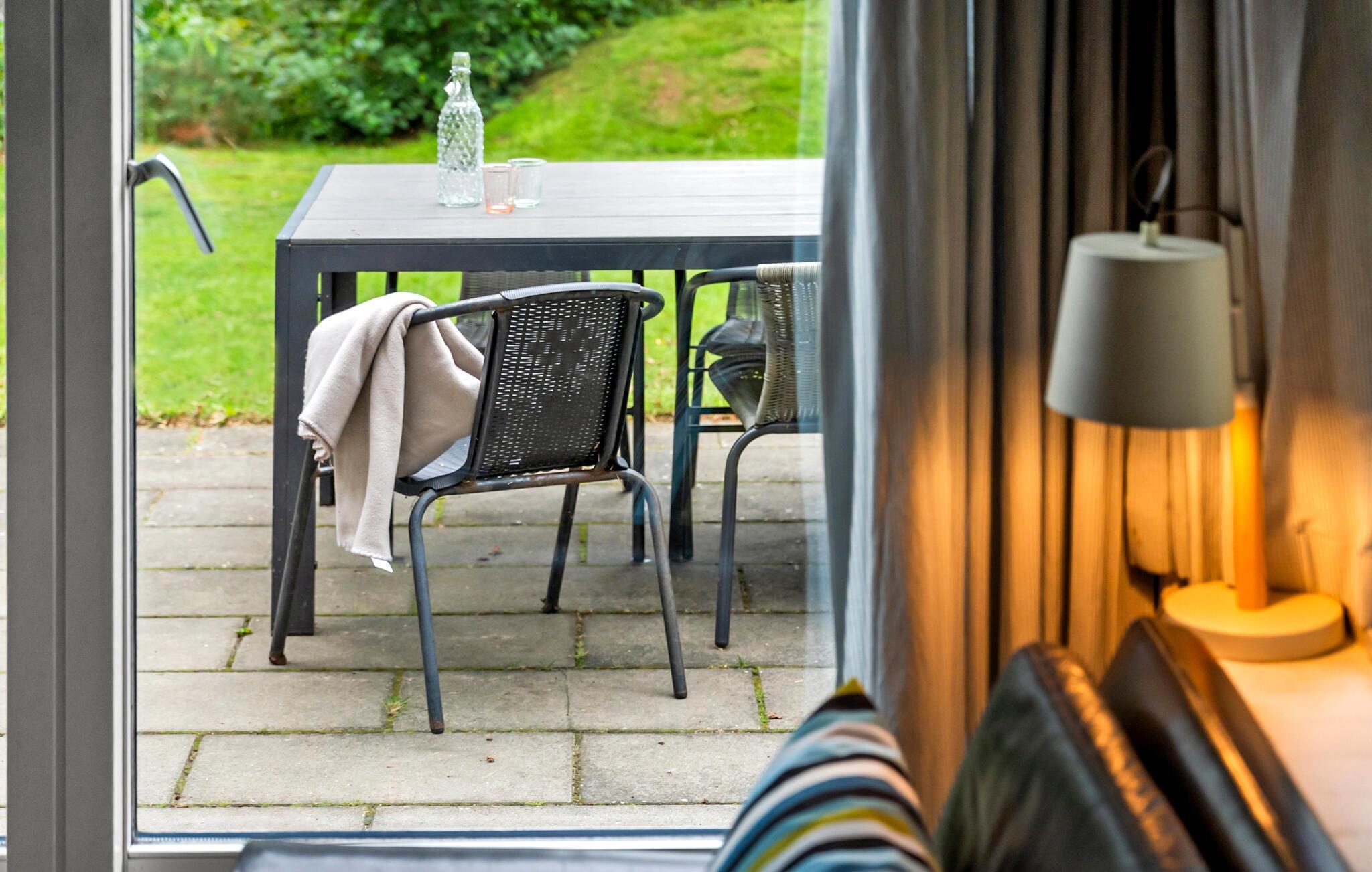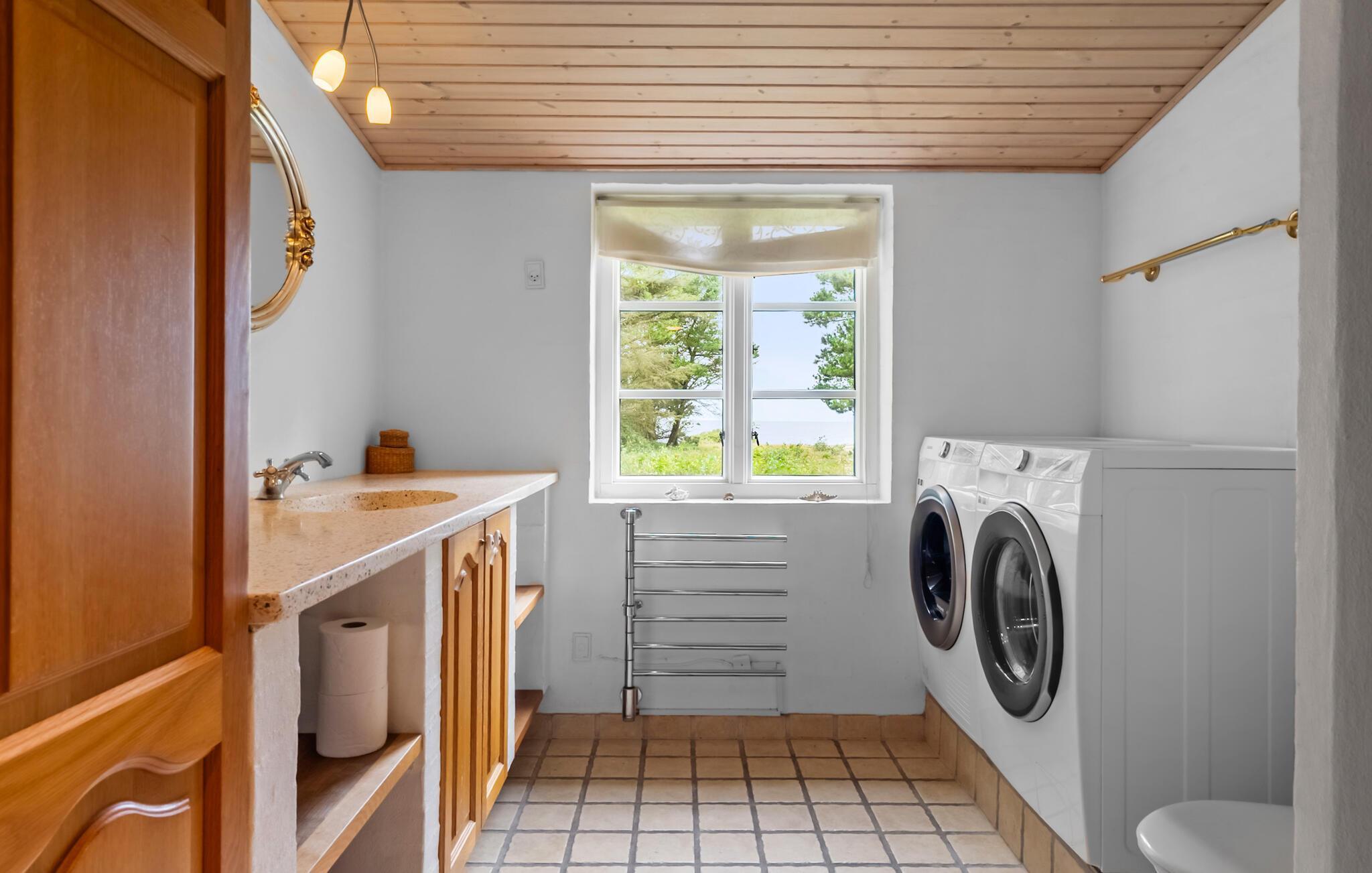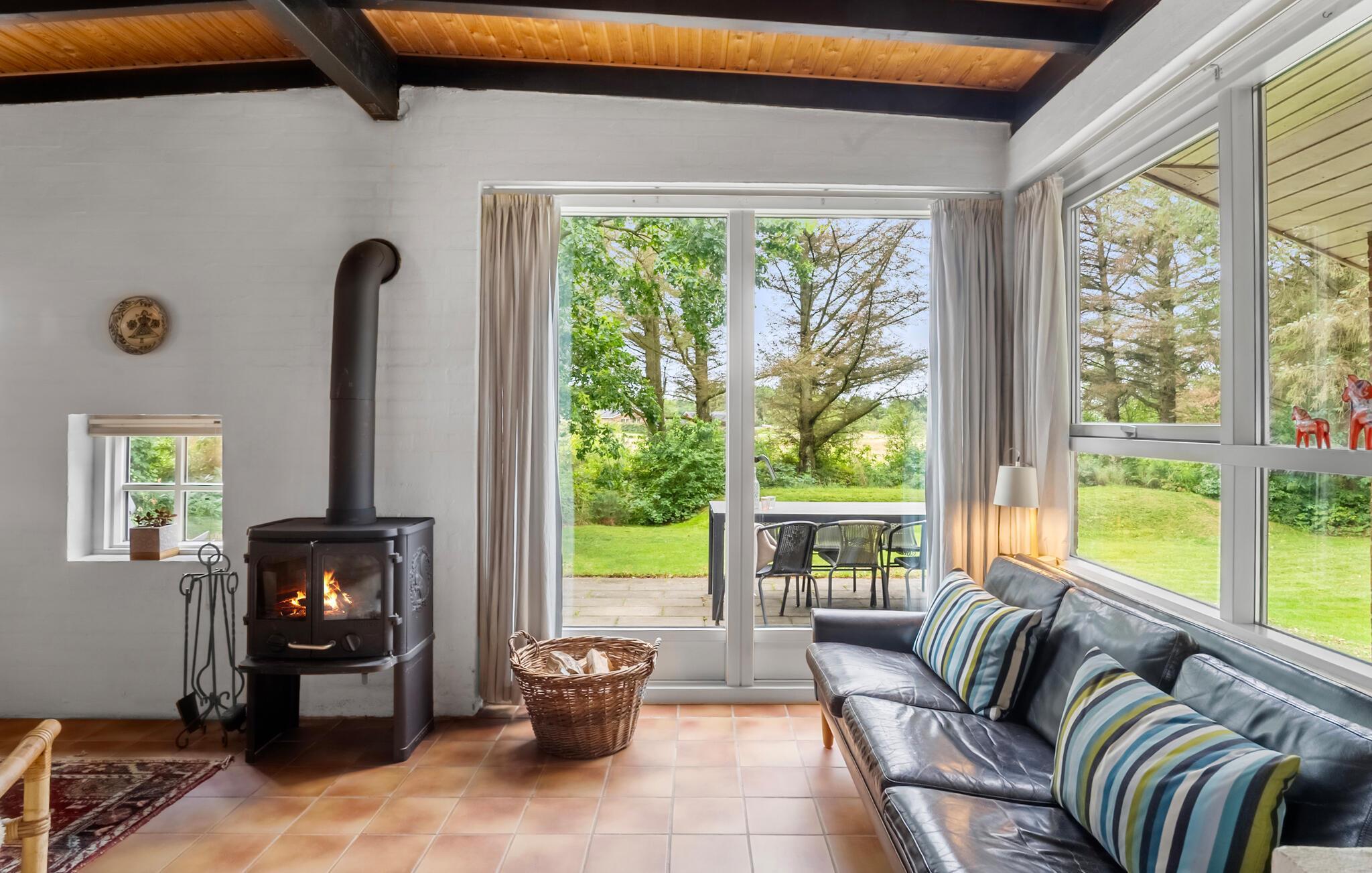 Gå udenfor på terrassen, der er udstyret med havemøbler. Den rummelige græsplæne inviterer til at spille bold, mens shelteret er et dejligt tilflugtssted for både store og små feriegæster. Om aftenen kan hele familien samles omkring det lille bålsted.
