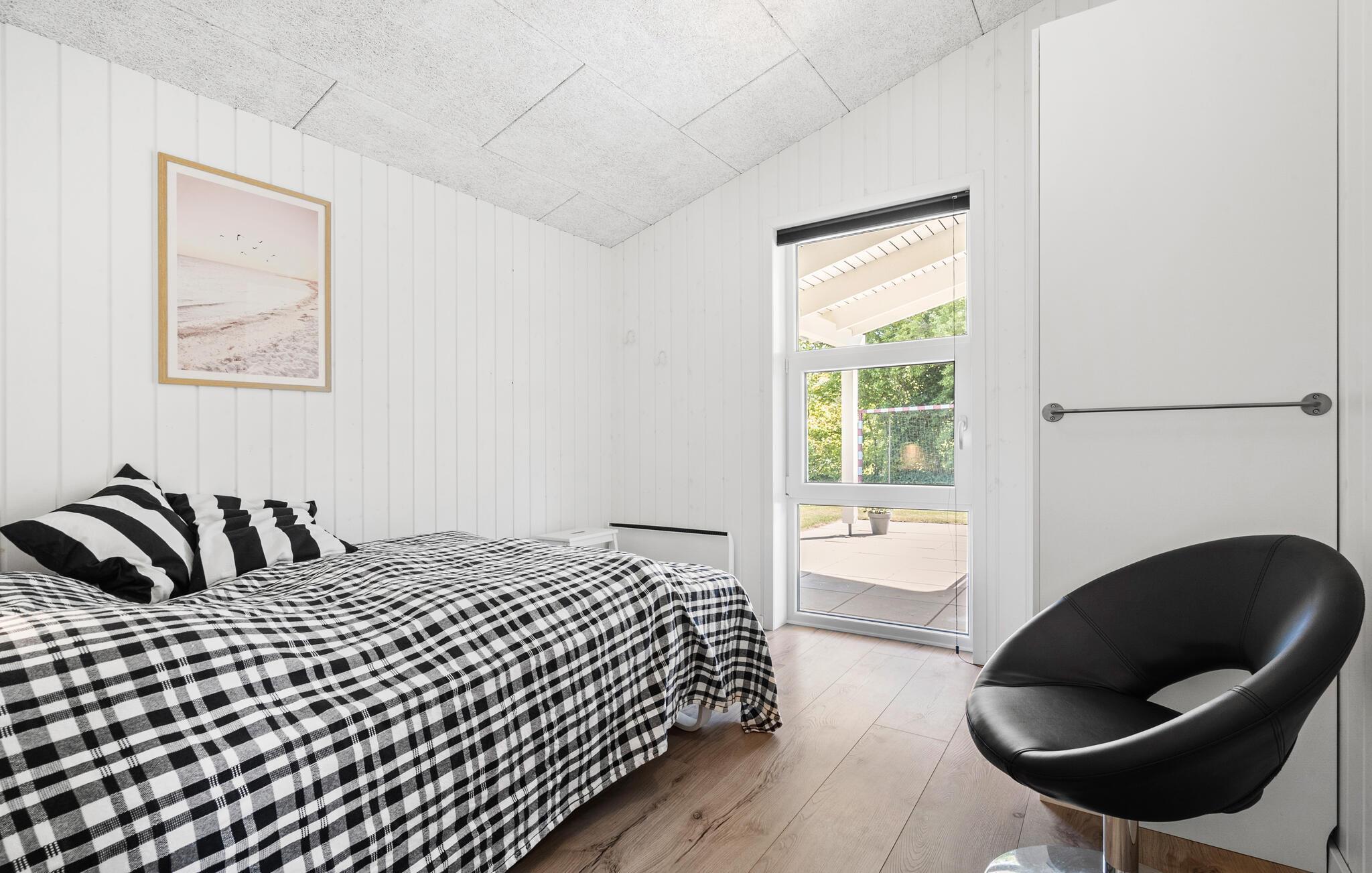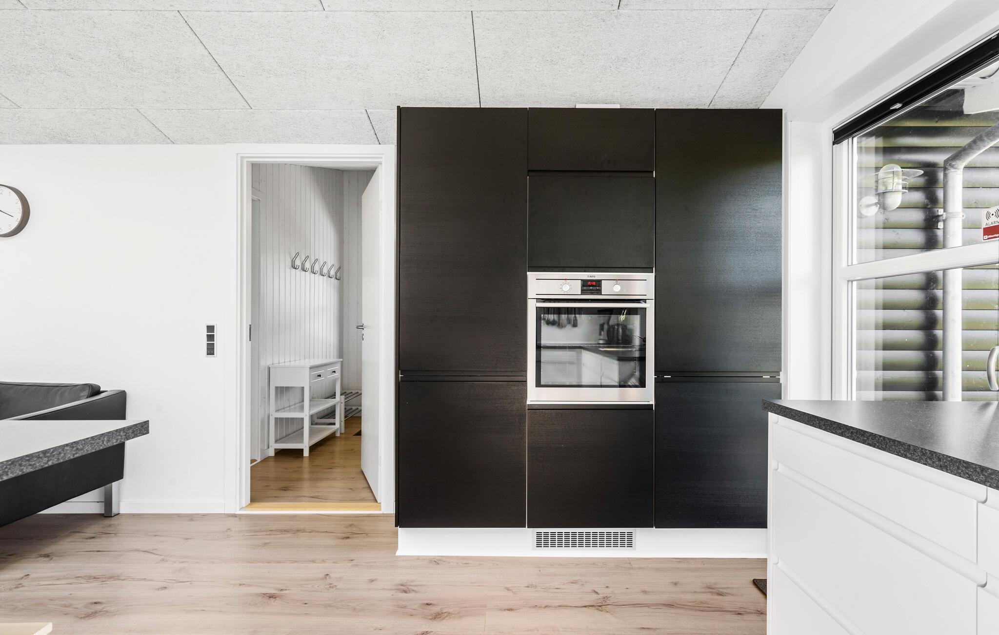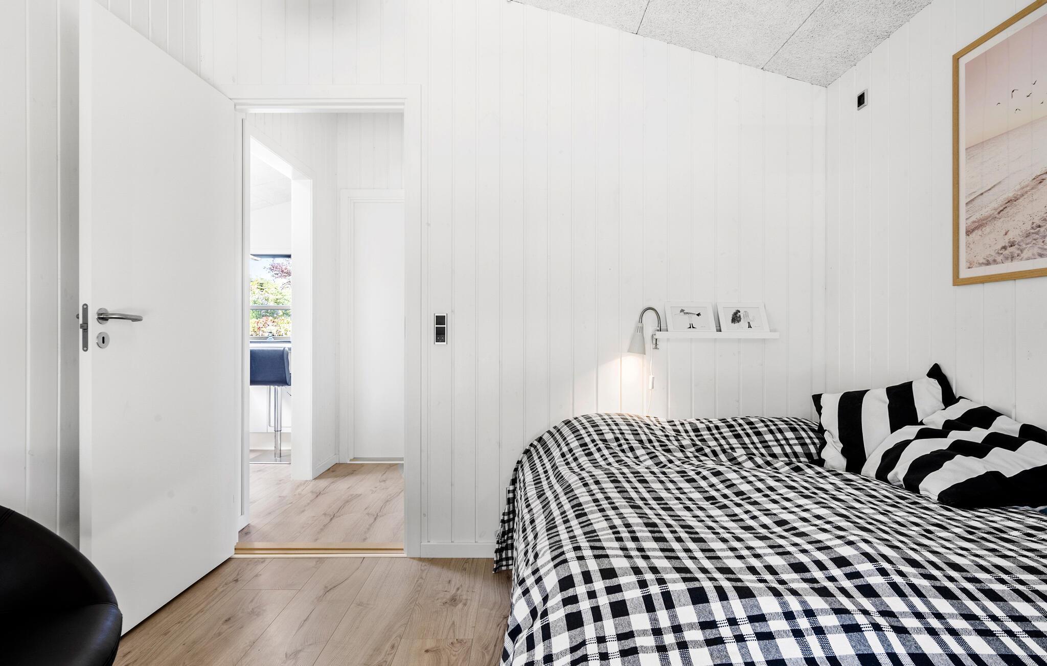 En rolig beliggenhed, stilfuldt interiør og rummelige rammer - her får I de bedste betingelser for nogle afslappende dage med familie eller venner. Tilbered lækre retter sammen i det åbne køkken. Den tilstødende spiseplads i den lyse opholdsstue lægger op til en masse hyggestunder. Nyd udsigten til den dejlige have gennem de store vinduespartier og læn jer tilbage i det komfortable sofahjørne. Efter en lang dag på farten kan I slappe af i spabadet på badeværelset og lade batterierne op til flere oplevelser.