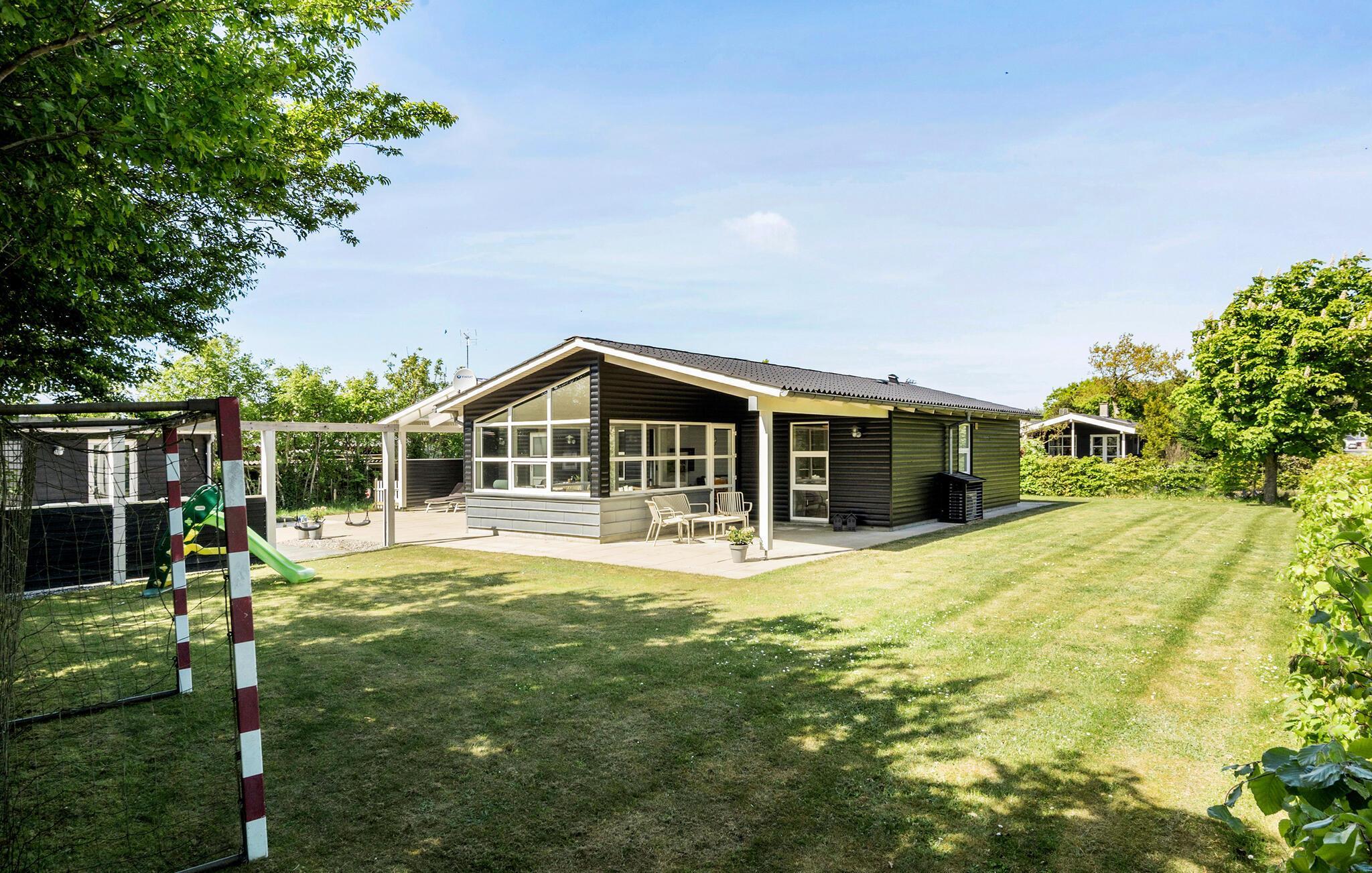 Hold en afslappende ferie i et moderne feriehus med stor have og skøn terrasse.